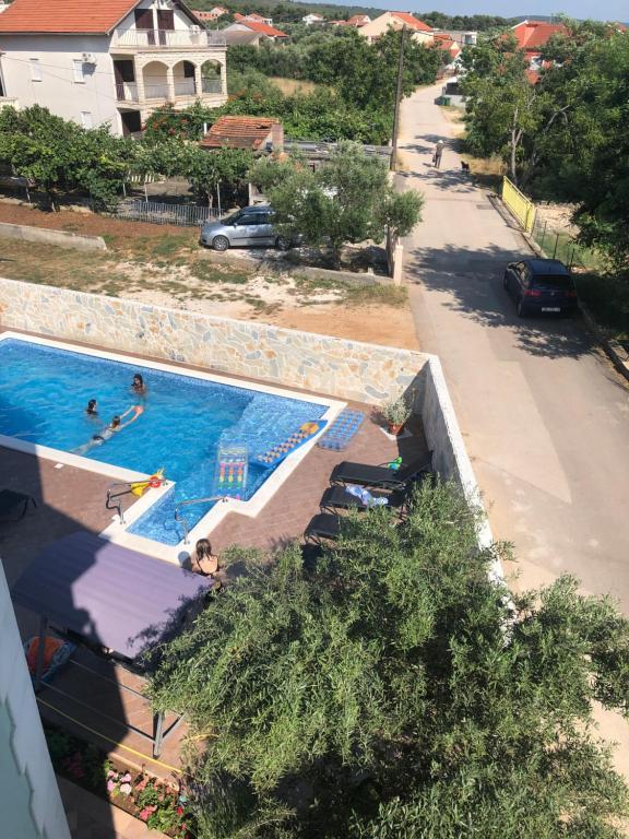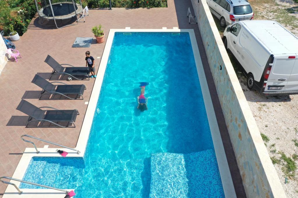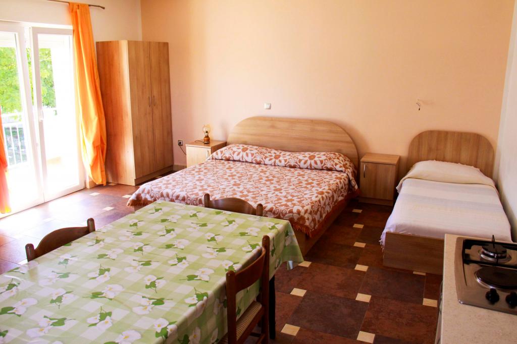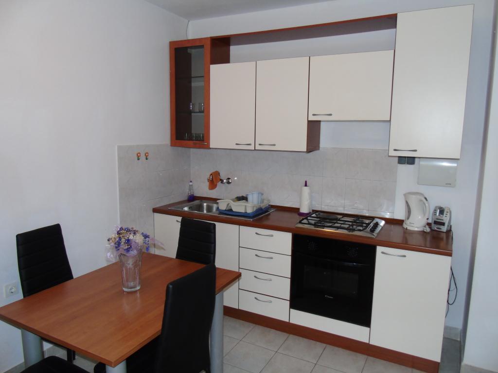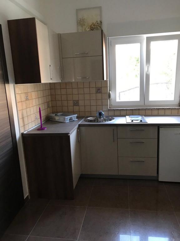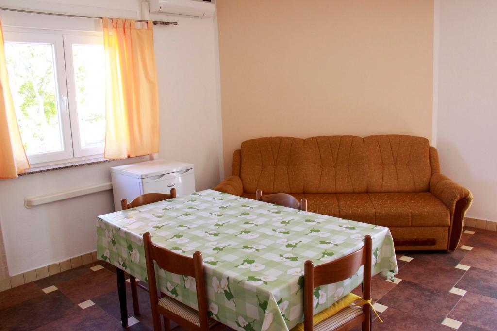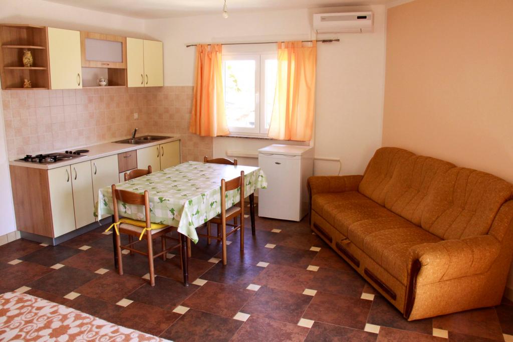 Ich vermiete eine komplett eingerichtete Wohnung, die aus einem Wohnzimmer mit Küche mit allen notwendigen Utensilien, Kochfeld, Esstisch und Sitzgelegenheiten, Kühlschrank besteht. Jedes Apartment verfügt über ein eigenes Bad mit Dusche und befindet sich innerhalb des Apartments. Die Apartments sind mit Klimaanlage und TV ausgestattet. Kostenlose Internetnutzung. Kostenlose Parkplätze vor dem Objekt. Benutzung der Terrasse vor der Wohnung mit Tisch und Sitzgelegenheiten. Möglichkeit eines erschwinglichen Taxitransports von und zur Wohnung (60 kn / Person, mindestens zwei Personen). Der Pool steht vom 01.06.-15.09. zur Verfügung.