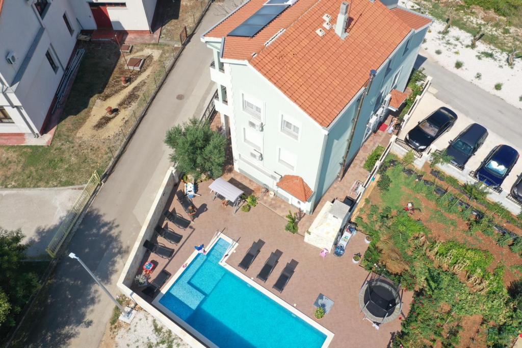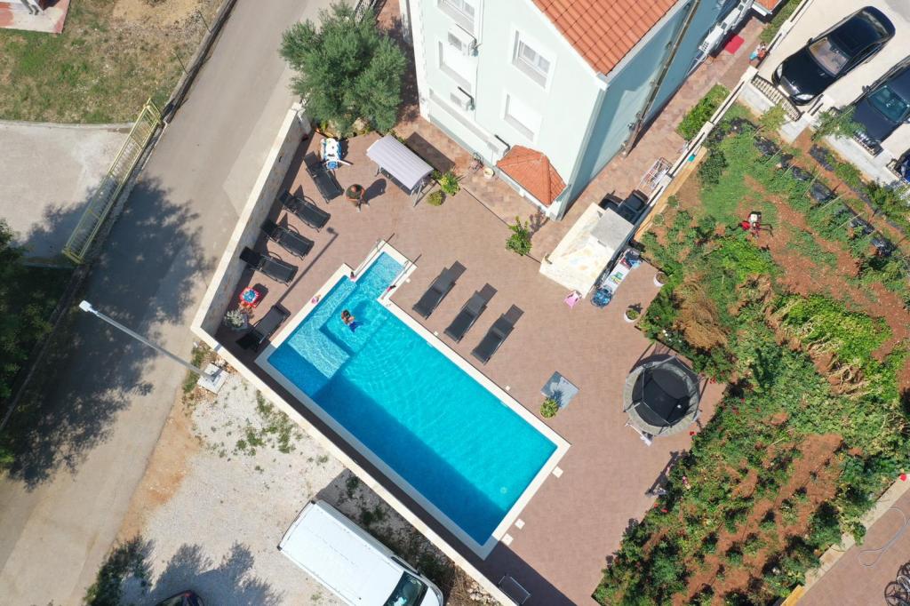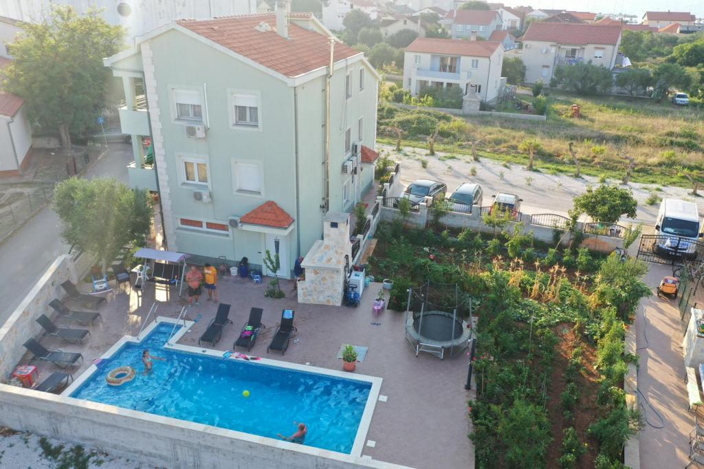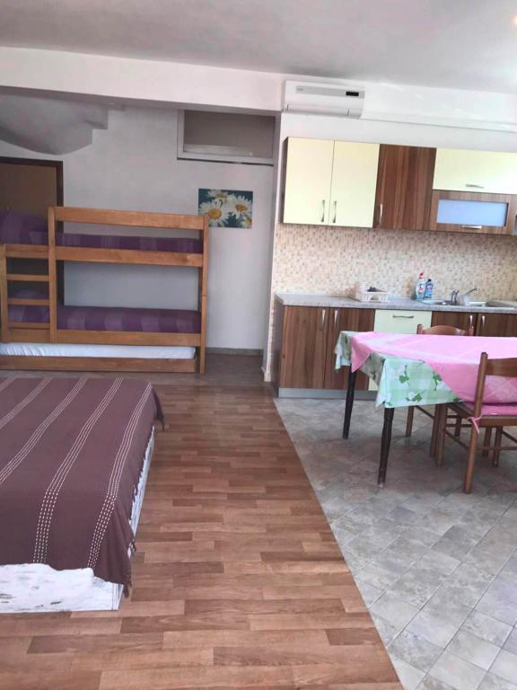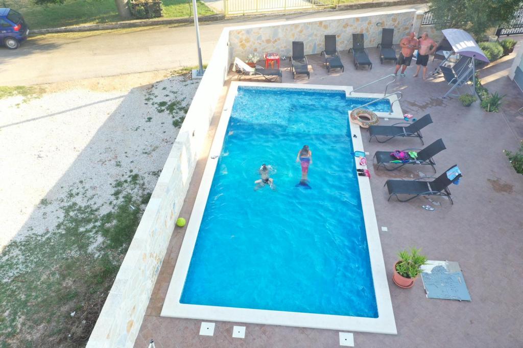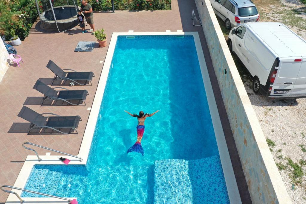 Ich vermiete eine komplett eingerichtete Wohnung, die aus einem Wohnzimmer mit Küche mit allen notwendigen Utensilien, Kochfeld, Esstisch und Sitzgelegenheiten, Kühlschrank besteht. Jedes Apartment verfügt über ein eigenes Bad mit Dusche und befindet sich innerhalb des Apartments. Die Apartments sind mit Klimaanlage und TV ausgestattet. Kostenlose Internetnutzung. Kostenlose Parkplätze vor dem Objekt. Benutzung der Terrasse vor der Wohnung mit Tisch und Sitzgelegenheiten. Möglichkeit eines erschwinglichen Taxitransports von und zur Wohnung (60 kn / Person, mindestens zwei Personen). Der Pool steht vom 01.06.-15.09. zur Verfügung.