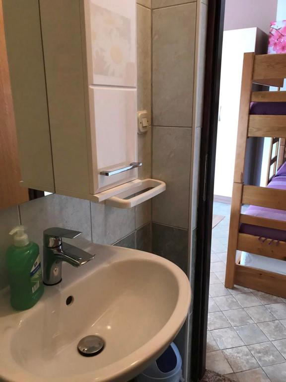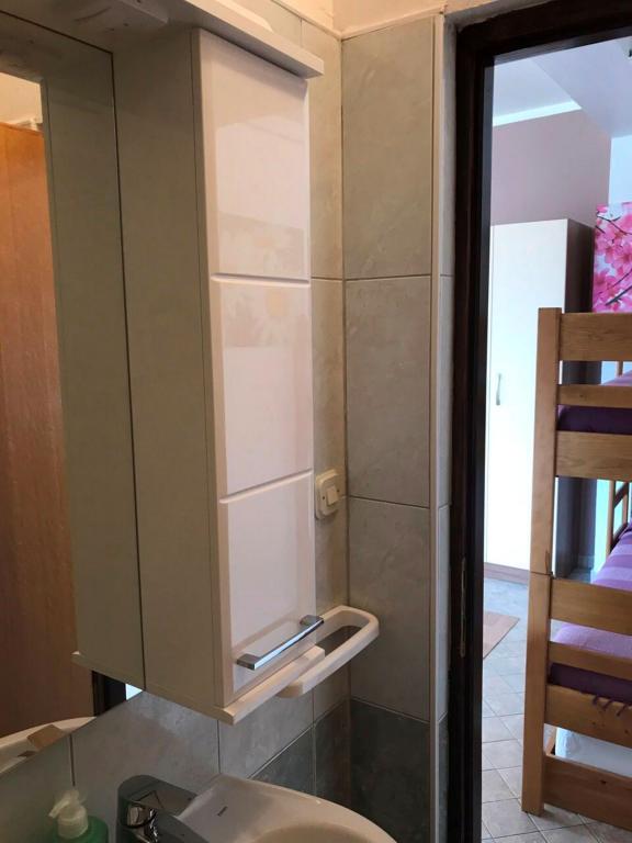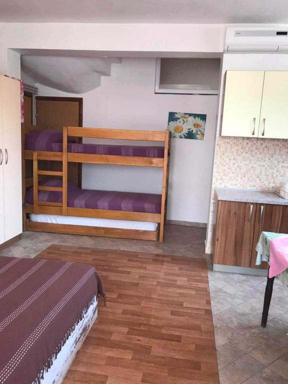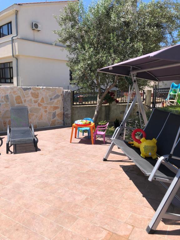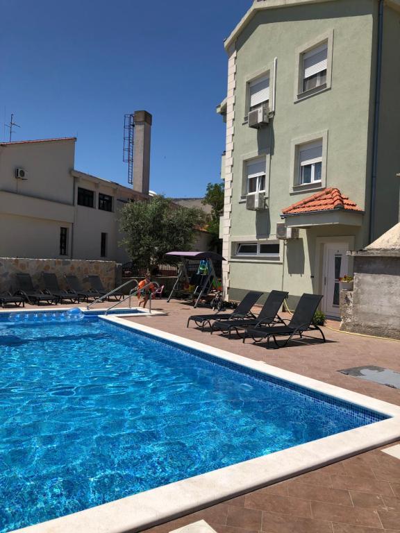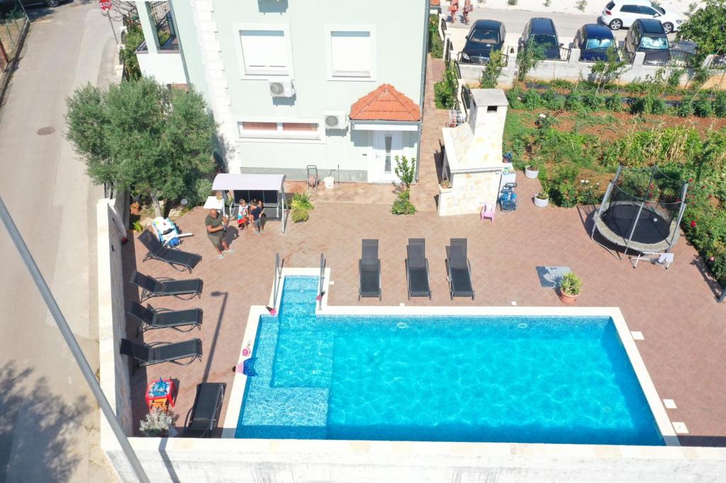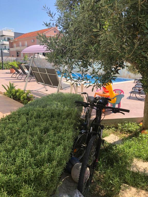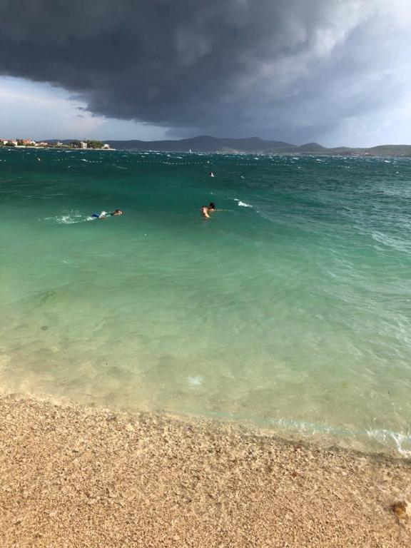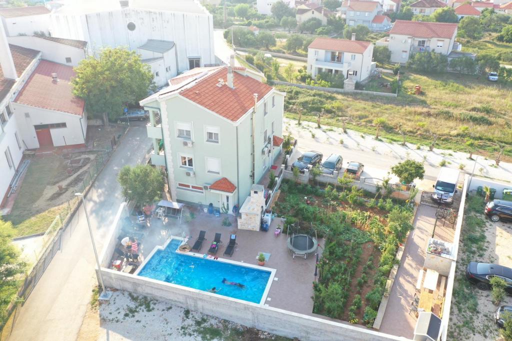 Ich vermiete eine komplett eingerichtete Wohnung, die aus einem Wohnzimmer mit Küche mit allen notwendigen Utensilien, Kochfeld, Esstisch und Sitzgelegenheiten, Kühlschrank besteht. Jedes Apartment verfügt über ein eigenes Bad mit Dusche und befindet sich innerhalb des Apartments. Die Apartments sind mit Klimaanlage und TV ausgestattet. Kostenlose Internetnutzung. Kostenlose Parkplätze vor dem Objekt. Benutzung der Terrasse vor der Wohnung mit Tisch und Sitzgelegenheiten. Möglichkeit eines erschwinglichen Taxitransports von und zur Wohnung (60 kn / Person, mindestens zwei Personen). Der Pool steht vom 01.06.-15.09. zur Verfügung.