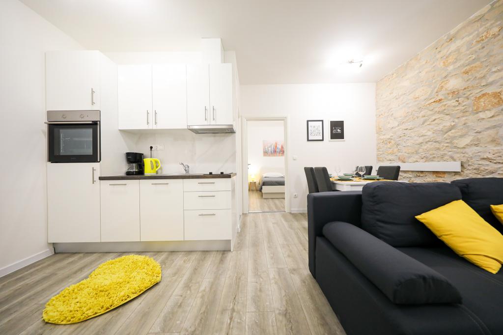 Bibinje Center Apartments 3 sind moderne und voll ausgestattete Apartments im Zentrum von Bibinje. In unmittelbarer Nähe, 20 - 50 Meter entfernt, befinden sich: Geschäfte, Restaurants, Café, Konditorei, Markt, Geldautomaten ... und andere Einrichtungen, die Sie benötigen. Die Unterkunft liegt 15 Gehminuten von einem Kiesstrand entfernt.