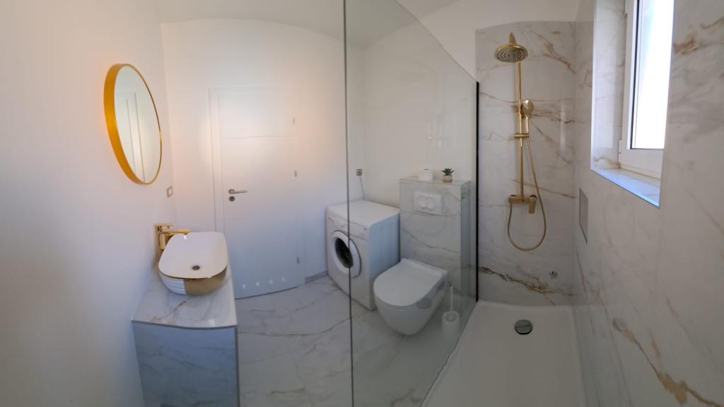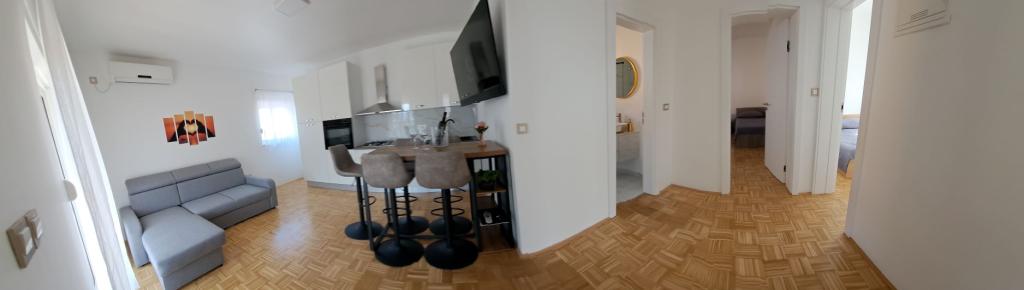 Die Apartments D liegen 100-150 m vom Strand Karabana (3-5 Minuten zu Fuß) und 400 m vom Strand Sulterova vala entfernt. Der Flughafen Zadar ist 12 km entfernt (5 km auf der kürzeren Route). Die Apartments D bieten ihren Gästen kostenlose Parkplätze, kostenloses WLAN, Terrasse/Balkon, Gartenblick, Sitzecke, Flachbild-TV, klimatisierte Unterkünfte, voll ausgestattete Küche mit Kühlschrank, Backofen, Geschirrspüler, Mikrowelle, Herd, Wasserkocher, einen Toaster und ein eigenes Bad mit Dusche. Der gemeinsame Innengrill ist nach vorheriger Absprache verfügbar. Bibinje (über 4.000 Einwohner) liegt 6 km südöstlich der historischen Stadt Zadar (10 Minuten mit dem Auto oder Bus) zwischen der Adria-Touristenstraße und dem Meer und verfügt über eine vier Kilometer lange Küste mit Stränden und Wegen sowie Wanderwegen entlang Ein Spaziergang am Morgen und am Abend ist ein besonderes Erlebnis am Meer. Lokale Restaurants bieten spezielle Gerichte der Region an, es gibt Cafés, kleine Geschäfte, einen Markt, s