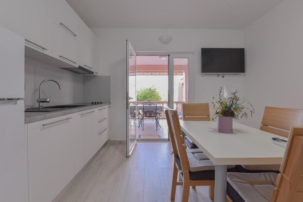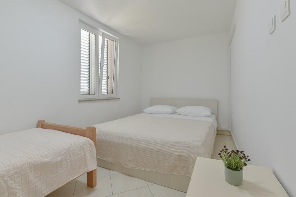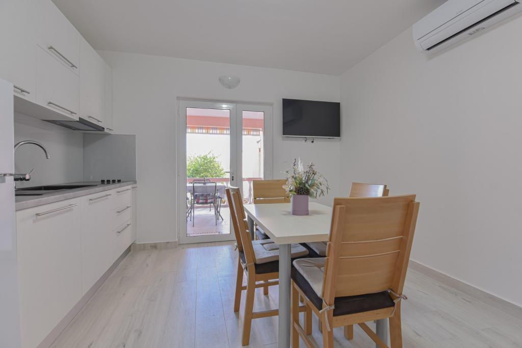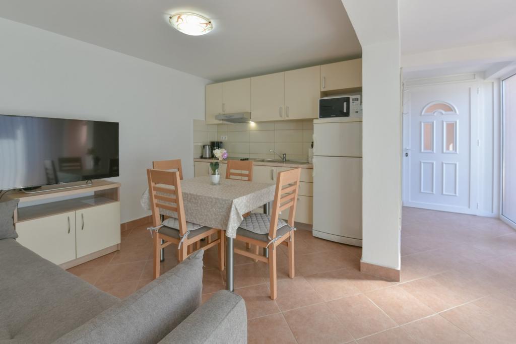 Herzlichen Glückwunsch an die Familie Frleti! Sie haben uns herzlich und freundlich empfangen. Die Wohnung war ordentlich, sauber, ausgestattet mit Geschirr, Bettwäsche, TV, Klimaanlage und WLAN. So wie auf den Bildern, so ist es in Wirklichkeit. Die Wohnung ist geräumig, schön eingerichtet, die Betten sind bequem zum Schlafen. Es verfügt über eine große Terrasse mit Markise, von der Sie den Blick auf den mediterranen Garten der Familie Frlete genießen können. Eine große Anzahl gepflegter Strände mit klarem blauem Meer und wunderschön dekorierten Promenaden entlang des Meeres mit einer großen Anzahl von Restaurants und Bars. Ideal um dem Lärm und Alltag zu entfliehen. Ruhe, Stille mit dem Zirpen der Grillen, dem Schrei der Möwen und dem Rauschen des Meeres. Hedonismus pur!