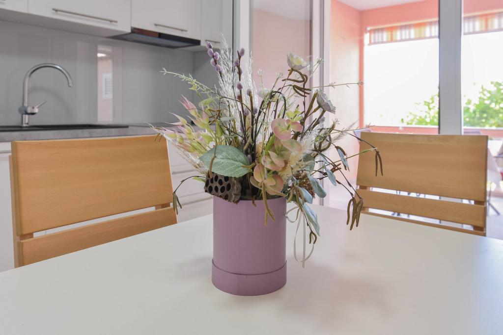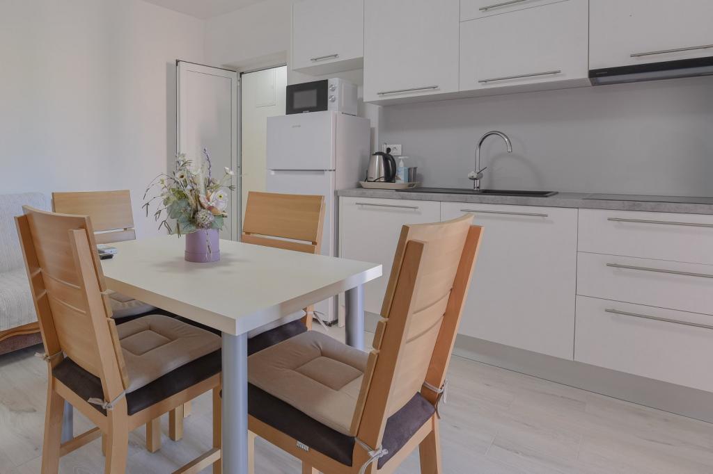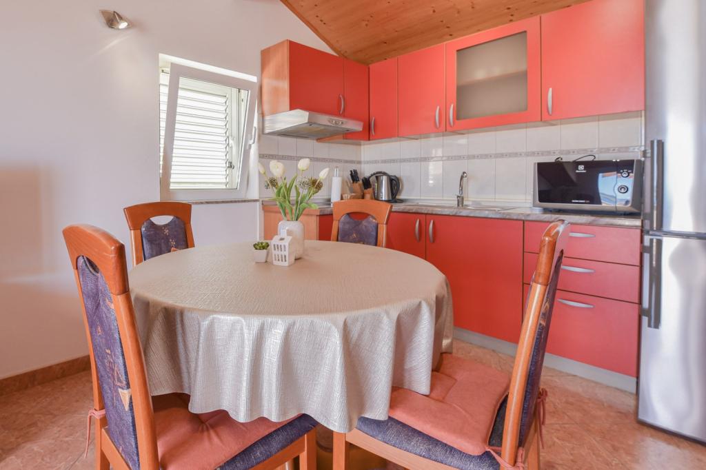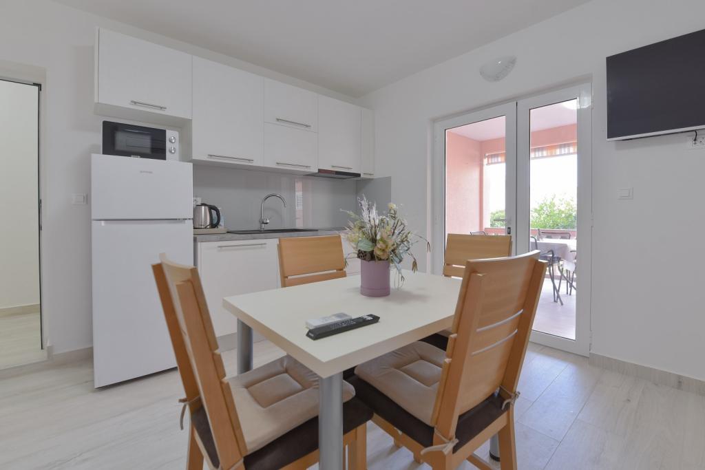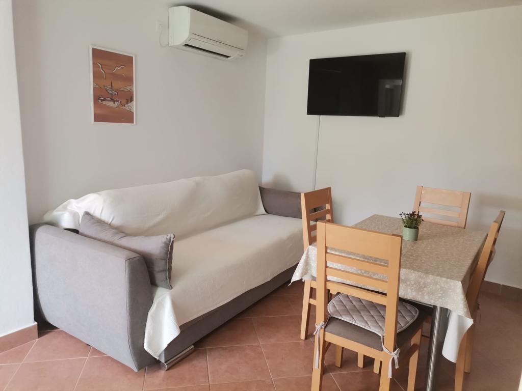 Herzlichen Glückwunsch an die Familie Frleti! Sie haben uns herzlich und freundlich empfangen. Die Wohnung war ordentlich, sauber, ausgestattet mit Geschirr, Bettwäsche, TV, Klimaanlage und WLAN. So wie auf den Bildern, so ist es in Wirklichkeit. Die Wohnung ist geräumig, schön eingerichtet, die Betten sind bequem zum Schlafen. Es verfügt über eine große Terrasse mit Markise, von der Sie den Blick auf den mediterranen Garten der Familie Frlete genießen können. Eine große Anzahl gepflegter Strände mit klarem blauem Meer und wunderschön dekorierten Promenaden entlang des Meeres mit einer großen Anzahl von Restaurants und Bars. Ideal um dem Lärm und Alltag zu entfliehen. Ruhe, Stille mit dem Zirpen der Grillen, dem Schrei der Möwen und dem Rauschen des Meeres. Hedonismus pur!