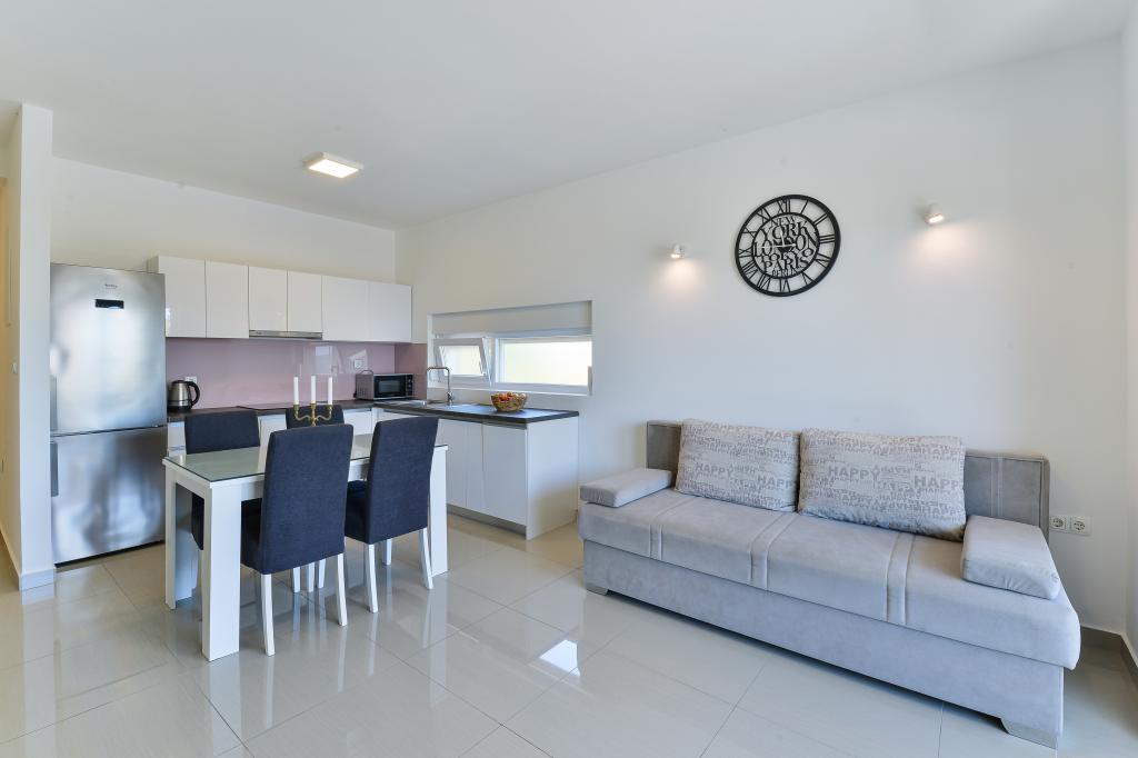 Die Fabian Apartments befinden sich im Touristengebiet „Kraj Punta“ von Bibinje. Die Anlage liegt 20 Meter vom Meer entfernt, von wo aus sich ein wunderschöner Blick auf die Adria und die dalmatinischen Inseln bietet. Die Entfernung zur antiken Stadt Zadar mit mehreren großen Einkaufszentren beträgt 10 Autominuten. Im Umkreis von 30 km befinden sich drei Nationalparks: NP Paklenica, NP Kornati und NP Krka. Es werden auch Ausflüge in die Nationalparks mit Abfahrt von Bibinje oder Zadar organisiert. Alle Wohneinheiten sind klimatisiert und verfügen über ein eigenes Bad, eine Terrasse, einen 140 cm großen Smart-TV mit Satellitenempfang, einen 110 cm großen Fernseher im Zimmer und eine voll ausgestattete Küche mit Geschirrspüler. Das nächste Restaurant und Geschäft sind 150 m von der Anlage entfernt. Eine Café-Bar und eine Cocktailbar erreichen Sie nach 50 m. Der Strand ist 20 m von der Anlage entfernt. Dort können Gäste Jetskis mieten, Windsurfen oder Beachvolleyball spielen. Die Anlage bietet kostenloses WLAN und kostenlose Parkplätze. Für einen angenehmen Sommerurlaub mit Sonnenstrahlen und dem Duft des Meeres, Apartments Fabian