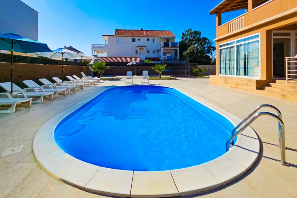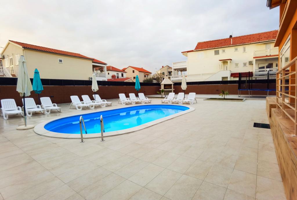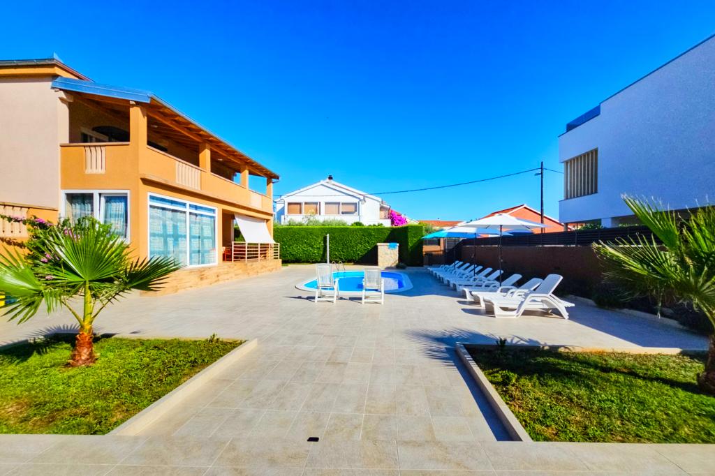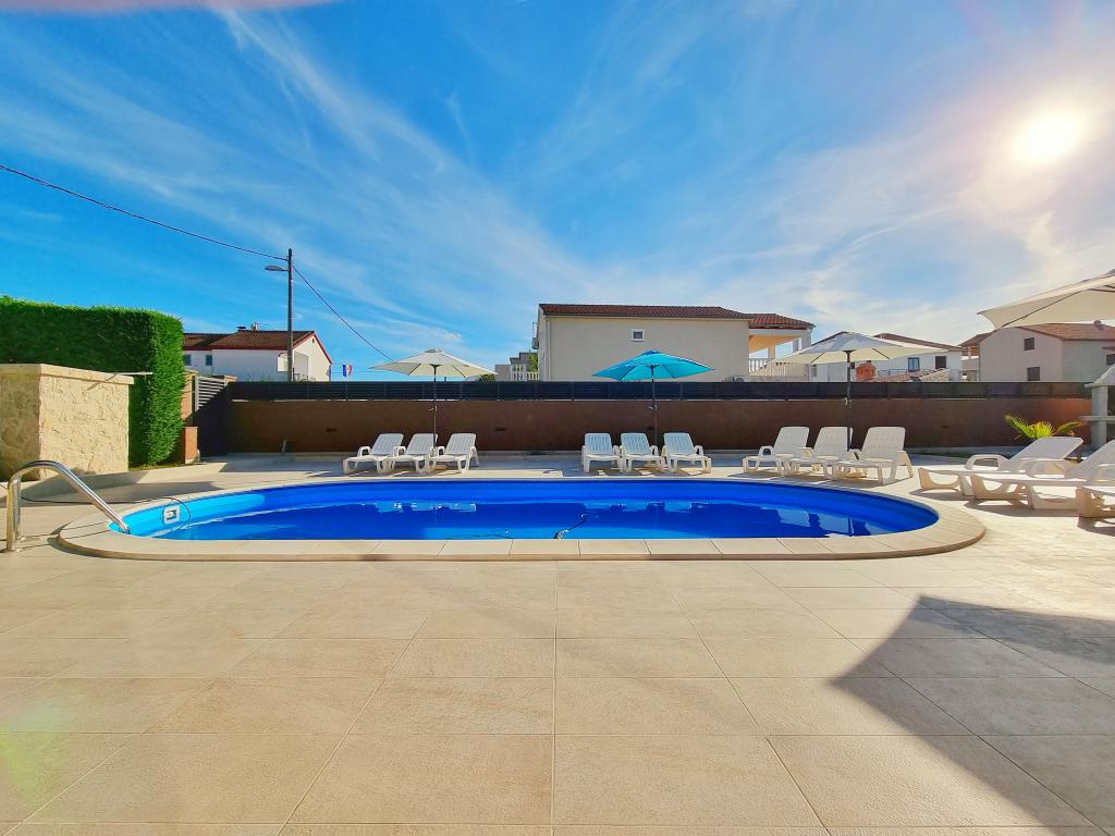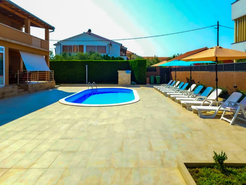 Dieses Haus liegt in Bibinje, in der Nähe von Zadar, und ist ideal für einen Urlaub! Nur 5 Gehminuten trennen Sie von den Stränden und dem alten Dorf mit Restaurants und Cafés, während die Bäckerei, Geschäfte und lokalen Obst- und Weinproduzenten 2 Minuten entfernt sind. Das Haus ist zur Wahrung der Privatsphäre eingezäunt (2 m hoch) und verfügt über zwei Wohnungen mit jeweils 90 m², mit 2 Schlafzimmern, Küche, Wohnzimmer, 2 Bädern und großen Terrassen. Im Hof gibt es einen großen Parkplatz, einen Swimmingpool (8x4 m) und einen Grill zur gemeinsamen Nutzung. Besuchen Sie das nahegelegene Zadar, die Meeresorgel und Nationalparks für unvergessliche Ausflüge! Das Schwimmbad ist vom 15.05.2025 bis 15.10.2025 in Betrieb.