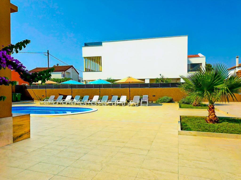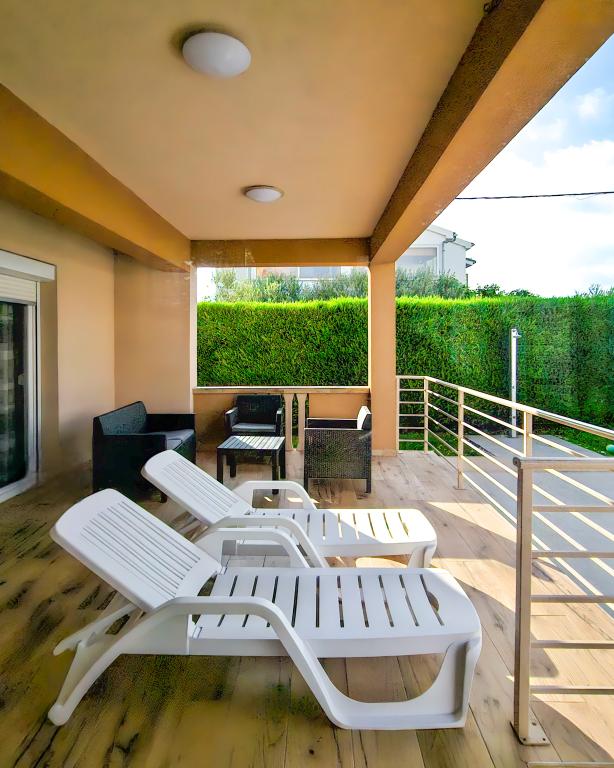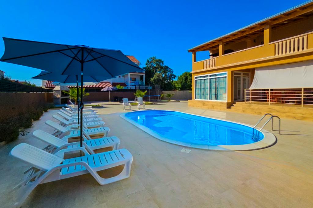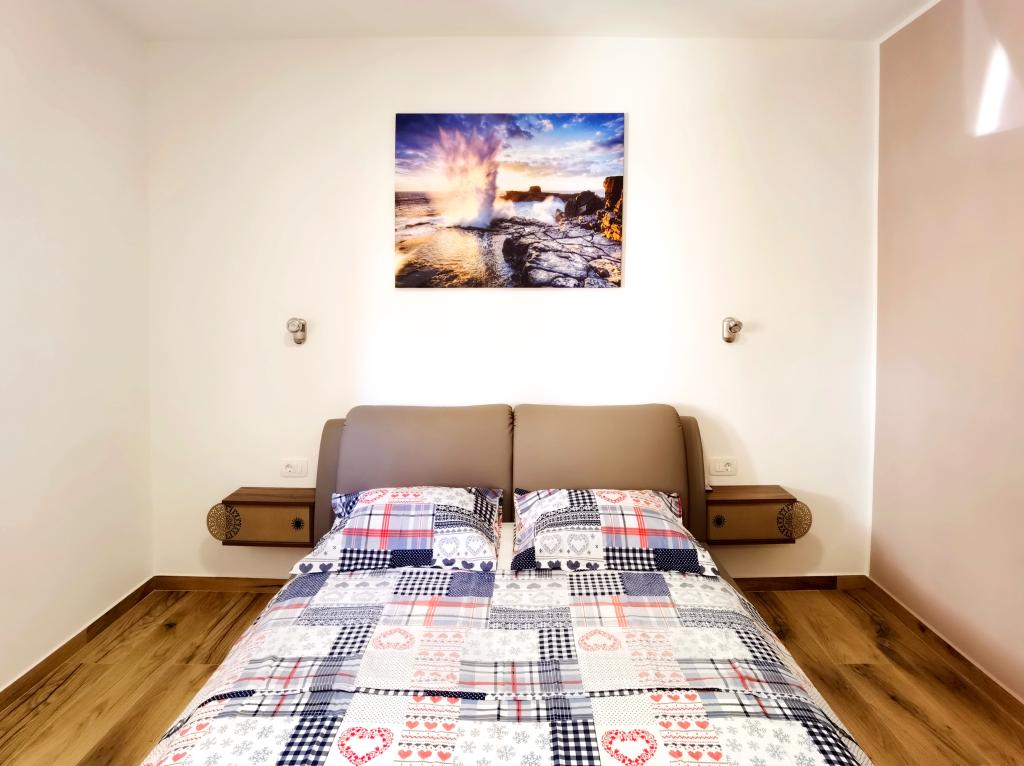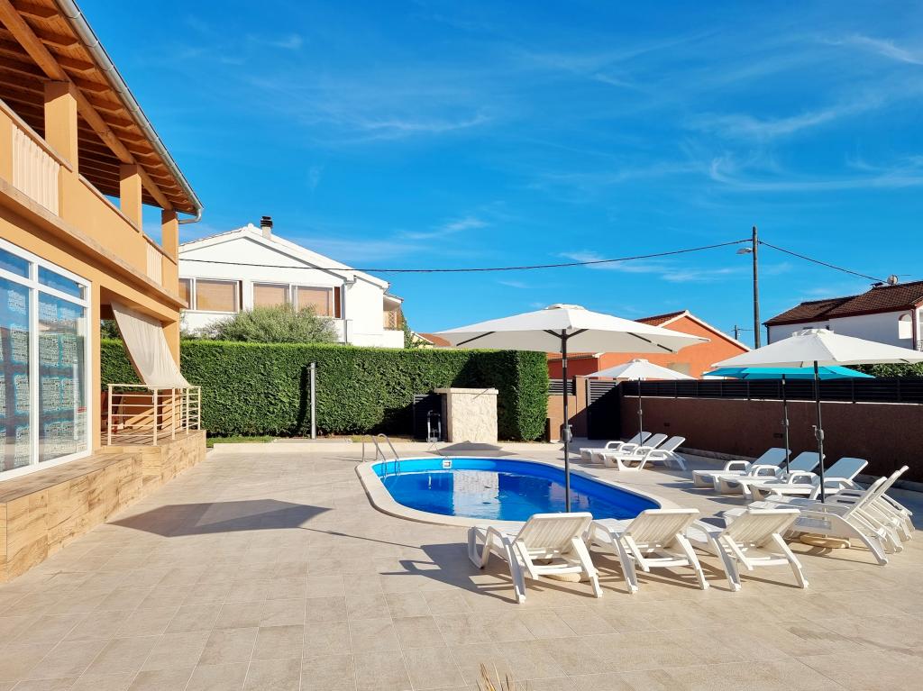 Dieses Haus liegt in Bibinje, in der Nähe von Zadar, und ist ideal für einen Urlaub! Nur 5 Gehminuten trennen Sie von den Stränden und dem alten Dorf mit Restaurants und Cafés, während die Bäckerei, Geschäfte und lokalen Obst- und Weinproduzenten 2 Minuten entfernt sind. Das Haus ist zur Wahrung der Privatsphäre eingezäunt (2 m hoch) und verfügt über zwei Wohnungen mit jeweils 90 m², mit 2 Schlafzimmern, Küche, Wohnzimmer, 2 Bädern und großen Terrassen. Im Hof gibt es einen großen Parkplatz, einen Swimmingpool (8x4 m) und einen Grill zur gemeinsamen Nutzung. Besuchen Sie das nahegelegene Zadar, die Meeresorgel und Nationalparks für unvergessliche Ausflüge! Das Schwimmbad ist vom 15.05.2025 bis 15.10.2025 in Betrieb.