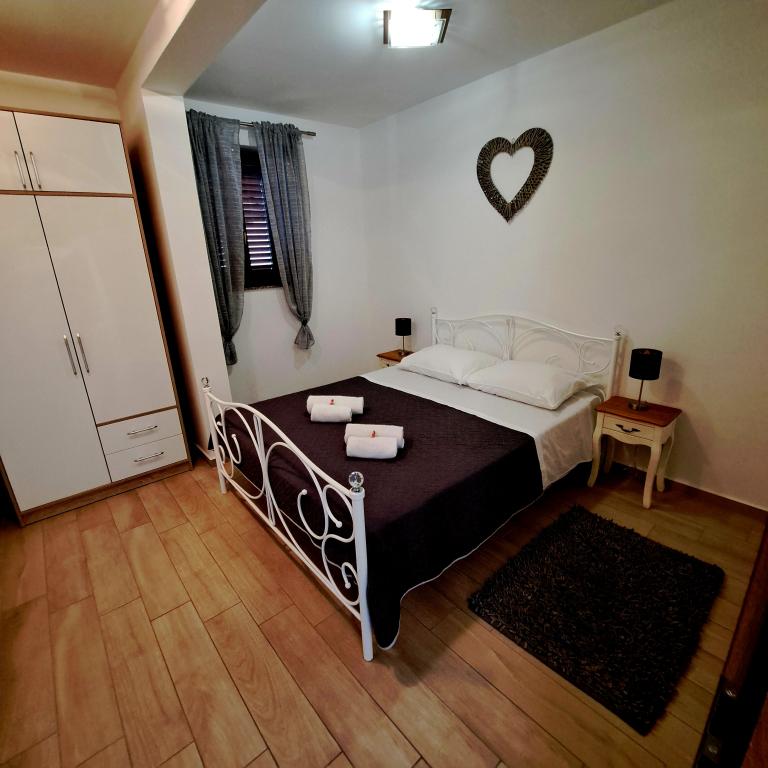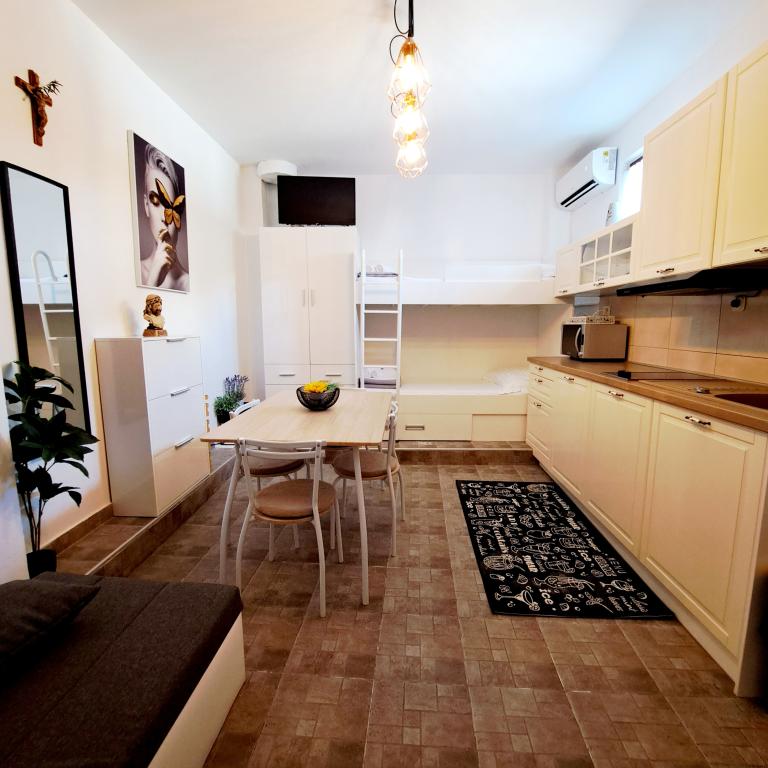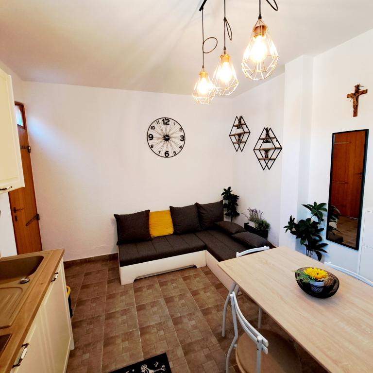 Die Apartments Staro selo befinden sich im Erdgeschoss eines Einfamilienhauses. Sie bestehen aus zwei Schlafzimmern, Bad, Küche und Wohnzimmer. Jede Wohnung verfügt über eine Terrasse zum Entspannen. Die Apartments verfügen über einen Außengrill, eine Taverne zum geselligen Beisammensein, einen gesicherten, videoüberwachten Parkplatz, eine Außendusche, Sonnenliegen, kostenfreies WLAN und einen privaten Kinderspielplatz für verschiedene Aktivitäten (Fußball, Basketball, Darts, Tischtennis, Badminton usw.). Schuhe und Bretter für das Meer mieten sie. Die Apartments liegen ganz in der Nähe des Meeres, von Restaurants, Geschäften und des Zentrums. Bibinje liegt 5 km von der historischen Stadt Zadar entfernt. In der Nähe befinden sich die Nationalparks Krka, Kornati, Paklenica, Plitvicer Seen und Naturparks. Kommen Sie und genießen Sie unseren Ort mit einem wunderschönen und einzigartigen Sonnenuntergang.