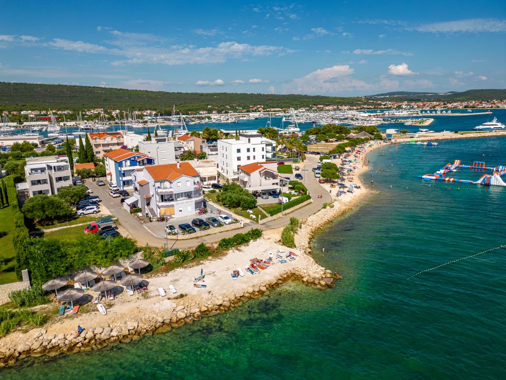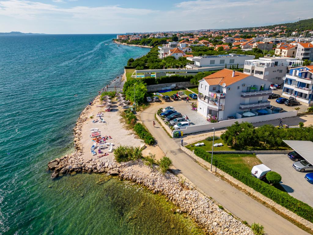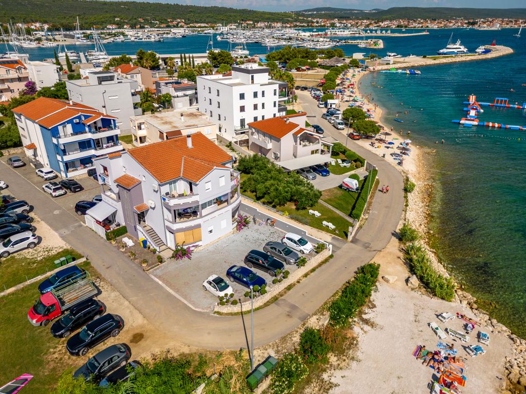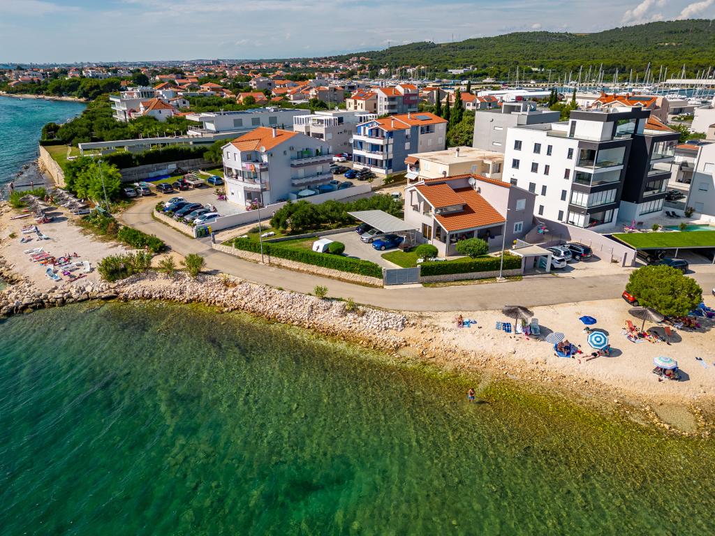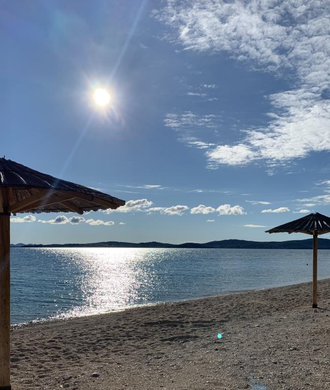 Die Apartments Suzy befinden sich im Touristengebiet „Kraj Punta“ von Bibinje. Die Anlage liegt in der ersten Reihe zum Meer und bietet einen wunderschönen Blick auf die Adria und die dalmatinischen Inseln. Die Entfernung zur antiken Stadt Zadar mit mehreren großen Einkaufszentren beträgt 10 Autominuten. Im Umkreis von 30 km befinden sich drei Nationalparks: NP Paklenica, NP Kornati und NP Krka. Es werden auch Ausflüge in die Nationalparks mit Abfahrt von Bibinje oder Zadar organisiert. Alle Wohneinheiten sind klimatisiert und verfügen über ein eigenes Bad, eine Terrasse, Sat-TV und eine voll ausgestattete Küche. Das nächste Restaurant und Geschäft sind 150 m von der Anlage entfernt. Eine Café-Bar und eine Cocktailbar erreichen Sie nach 50 m. Der Strand ist 10 m von der Anlage entfernt. Dort können Gäste Jetskis mieten, Windsurfen oder Beachvolleyball spielen. Die Anlage bietet kostenloses WLAN, kostenlose Parkplätze und private Liegestühle. Für einen angenehmen Sommerurlaub mit Sonnenstrahlen und dem Duft des Meeres, Apartments Suzy
