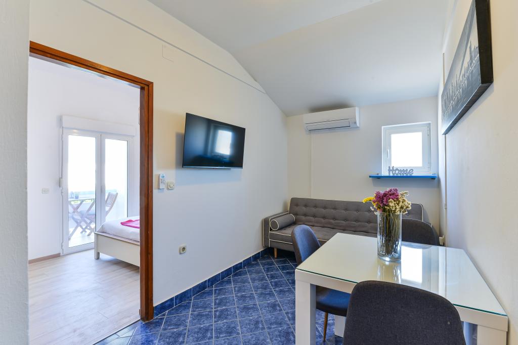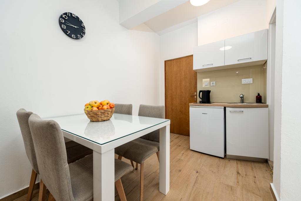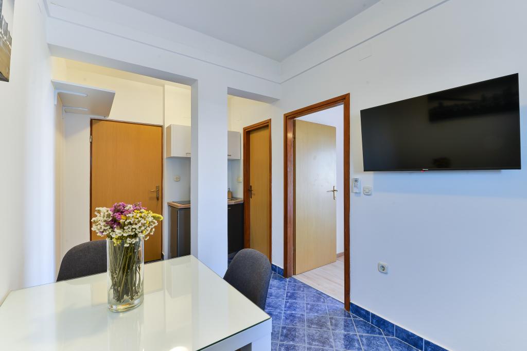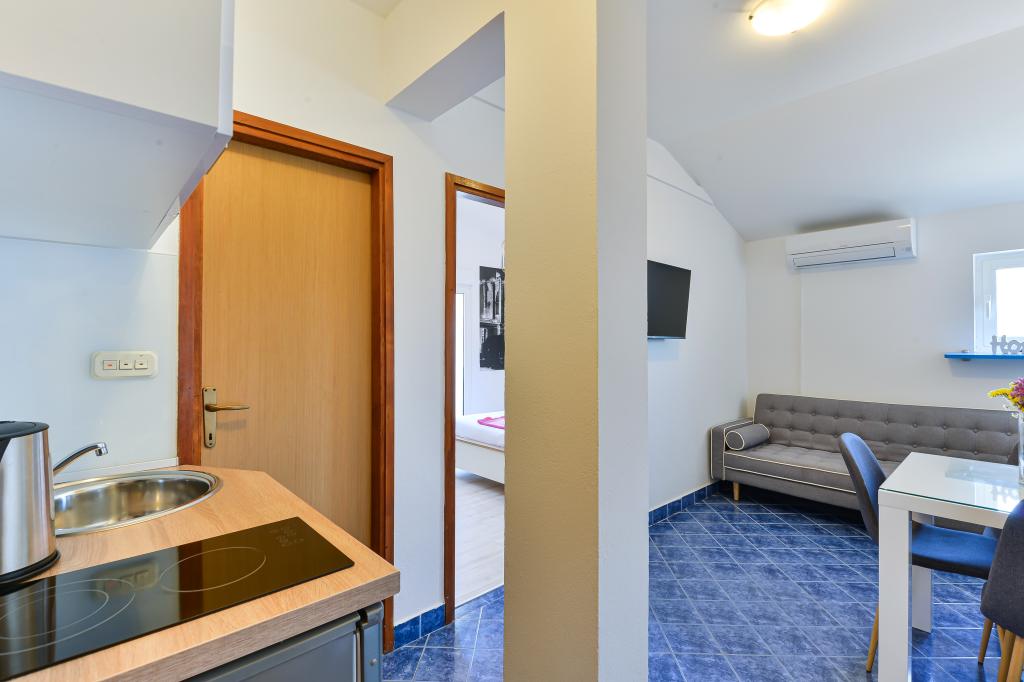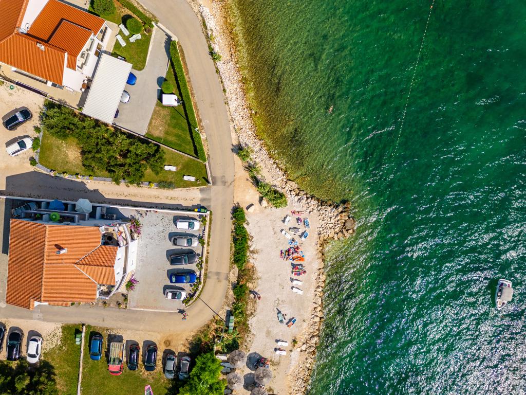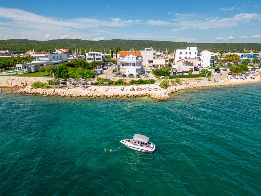 Die Apartments Suzy befinden sich im Touristengebiet „Kraj Punta“ von Bibinje. Die Anlage liegt in der ersten Reihe zum Meer und bietet einen wunderschönen Blick auf die Adria und die dalmatinischen Inseln. Die Entfernung zur antiken Stadt Zadar mit mehreren großen Einkaufszentren beträgt 10 Autominuten. Im Umkreis von 30 km befinden sich drei Nationalparks: NP Paklenica, NP Kornati und NP Krka. Es werden auch Ausflüge in die Nationalparks mit Abfahrt von Bibinje oder Zadar organisiert. Alle Wohneinheiten sind klimatisiert und verfügen über ein eigenes Bad, eine Terrasse, Sat-TV und eine voll ausgestattete Küche. Das nächste Restaurant und Geschäft sind 150 m von der Anlage entfernt. Eine Café-Bar und eine Cocktailbar erreichen Sie nach 50 m. Der Strand ist 10 m von der Anlage entfernt. Dort können Gäste Jetskis mieten, Windsurfen oder Beachvolleyball spielen. Die Anlage bietet kostenloses WLAN, kostenlose Parkplätze und private Liegestühle. Für einen angenehmen Sommerurlaub mit Sonnenstrahlen und dem Duft des Meeres, Apartments Suzy