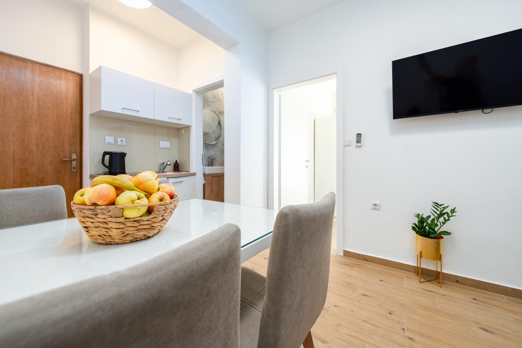 Die Apartments liegen direkt am Meer und Strand. Sie sind sehr sauber und duftend. Die Besitzer sind sehr nett und hilfsbereit und den Gästen stehen Sonnenliegen und zwei Fahrräder zur Verfügung. Ein Supermarkt ist 1.300 Meter entfernt (6 Minuten mit dem Fahrrad). Eine Bäckerei ist etwa 200 Meter entfernt und das Zentrum von Bibinje mit seiner lebhaften Atmosphäre und zahlreichen Pubs ist etwa 2 Kilometer entfernt. Zadar ist 12 Kilometer entfernt. Bolt und Uber sind in der Nähe verfügbar, sodass verschiedene Ziele leicht zu erreichen sind. Der Flughafen ist etwa 10 Kilometer entfernt. Wir haben 10 wundervolle Nächte im Apartment Suzy verbracht. Neben dem Apartment befindet sich ein wunderschöner Strand mit einer Hüpfburg für Kinder, einem Verleih von Wassersportgeräten, einem Burgerstand, einer Konditorei und einem Strandbistro mit Getränken.