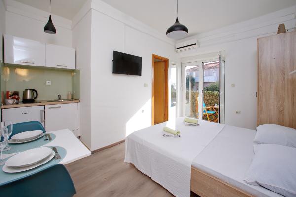Studio mit allem, was Sie für einen wunderschönen Urlaub brauchen. Schöner Strand vor der Wohnung und sehr nette Frau Suzy. Alle Empfehlungen für einen ruhigen Urlaub.