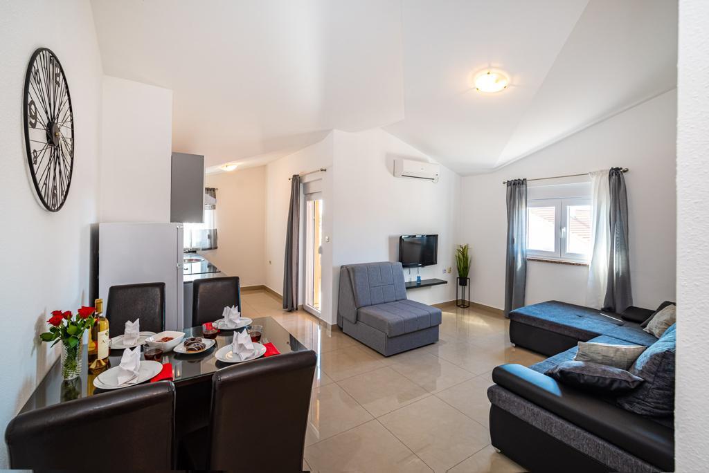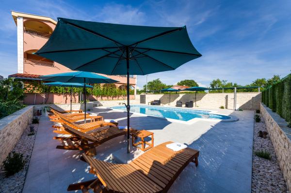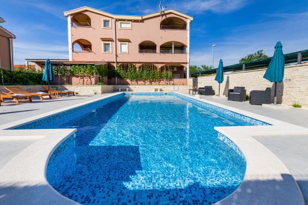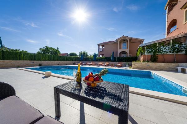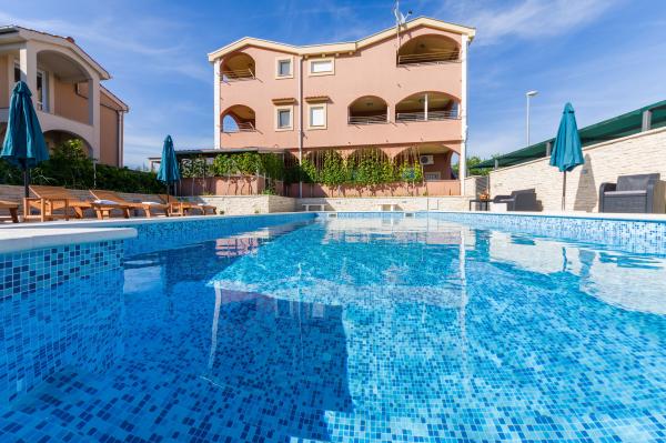 Ich vermiete 5 Apartments mit einem Schlafzimmer und einem Swimmingpool. Die Apartments befinden sich in einem ruhigen Teil von Biograd. Jedes Apartment verfügt über eine voll ausgestattete Küche (mit Geschirr), ein Zimmer mit einem Doppelbett (Bettwäsche), ein Wohnzimmer mit einem großen Schlafsofa (für zwei Personen), ein Babybett und ein Einzelbett. (TV, Satellit), Toilette, Balkon, Grill, Parkplatz, Klimaanlage. Der Pool (10 × 5 m) verfügt über Gegenstromschwimmen, Hydromassage und Eisbeleuchtung. Die Anlage wird videoüberwacht. Die Apartments sind ausschließlich für den Urlaub gedacht, da sie sich in einem Familienhaus befinden und nicht zum Spaß und Feiern geeignet sind. Jede Wohnung bietet Platz für 4-5 Personen. Die Stadt ist aufgrund des vielfältigen Unterhaltungsangebots ideal für Kinder, Jung und Alt.