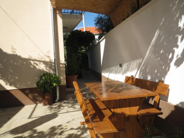 Die Wohnungen befinden sich im Erdgeschoss des Gebäudes. Die größere Wohnung hat einen Parkplatz im Hof, die kleinere Wohnung hat eine große Terrasse, kostenlose Parkplätze außerhalb des Hofes. Das Haus ist 50 m vom Meer entfernt, nahe dem Zentrum in einem ruhigen Teil der Stadt, in der Nähe des Yachthafens, 150 m vom Strand entfernt, alles ist in der Nähe von Restaurants, Geschäften, Apotheken, kurz gesagt, wenn Sie ankommen, parken und nicht das Auto bis zum Ende des Urlaubs nutzen.