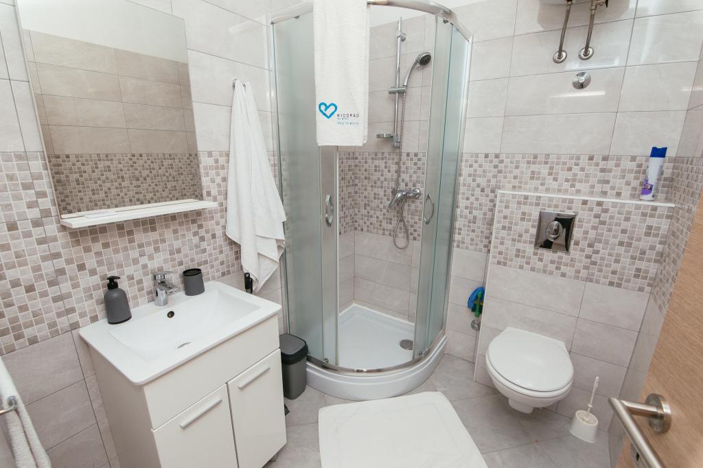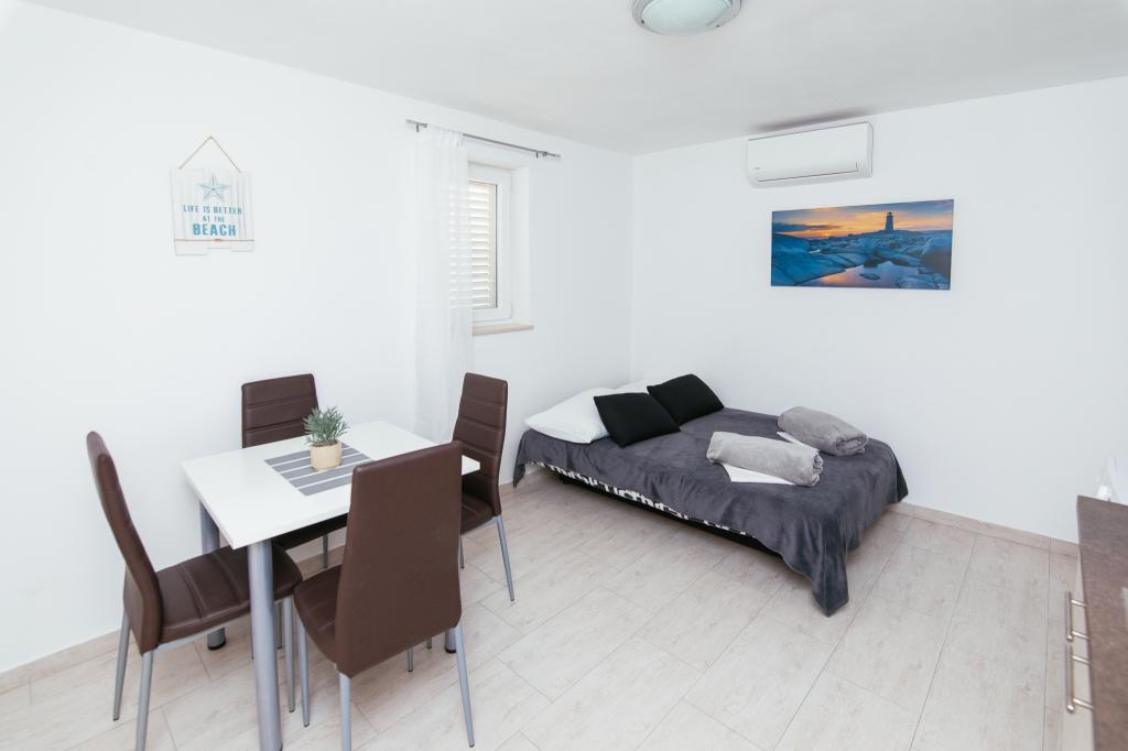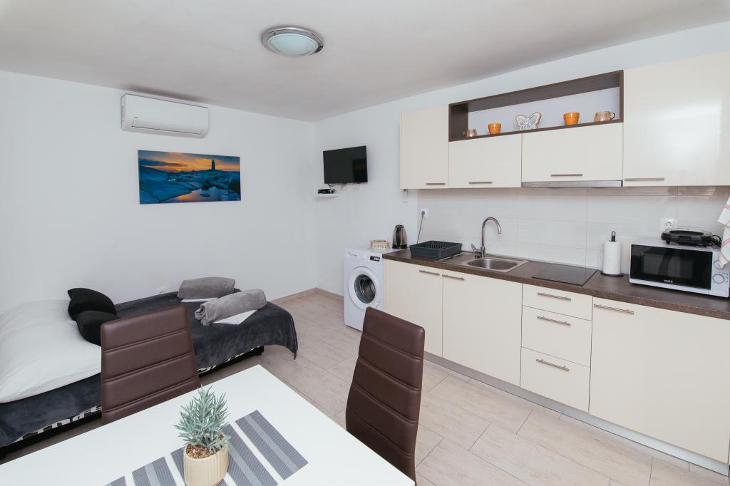 Die Apartments AE befinden sich in Biograd na moru, Splitska ulica 37a. Sie liegen 700 m vom Strand Dražice entfernt (maximal 7 Gehminuten), das Stadtzentrum erreichen Sie nach 500 m. Ein Geschäft befindet sich 20 m von der Wohnung entfernt. Die Apartments verfügen über ein Schlafzimmer, ein Schlafsofa, eine Küche, ein Badezimmer, einen Essbereich und eine große Gemeinschaftsterrasse. Kostenlose Parkplätze, Klimaanlage, WLAN, Waschmaschine und Grillmöglichkeiten stehen zur Verfügung.