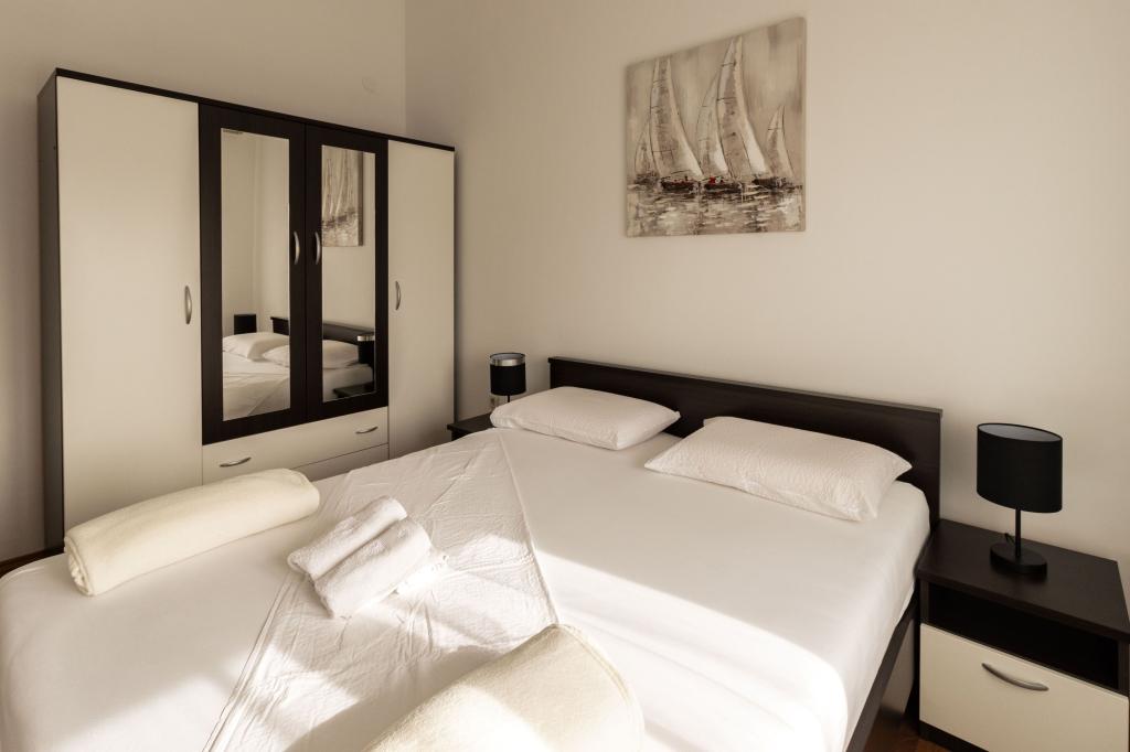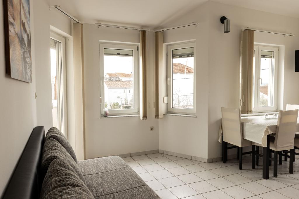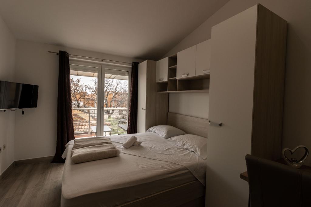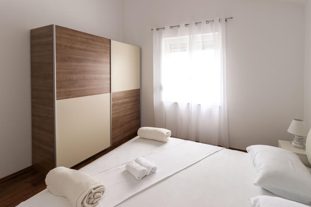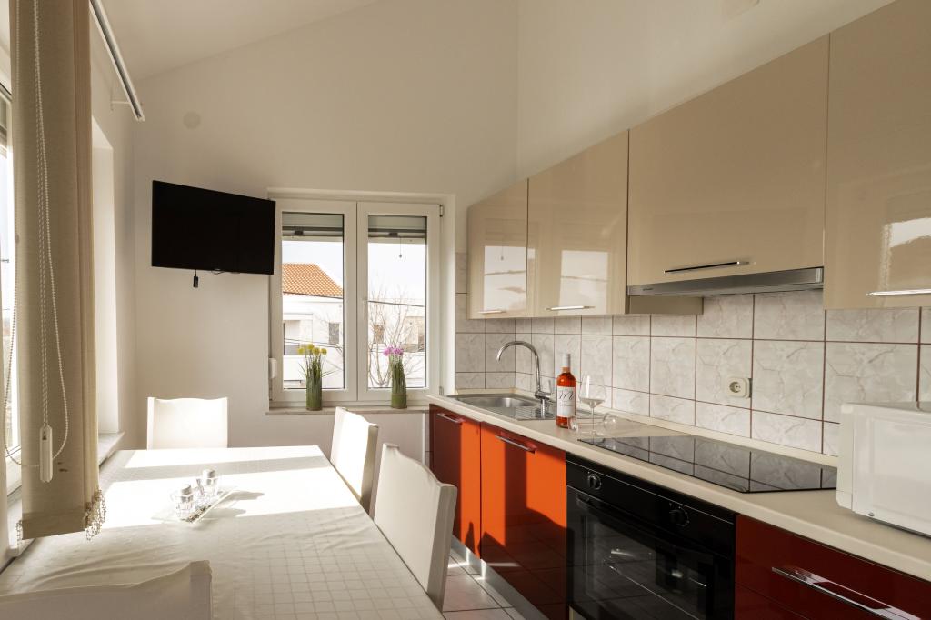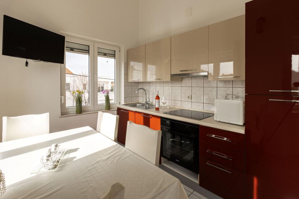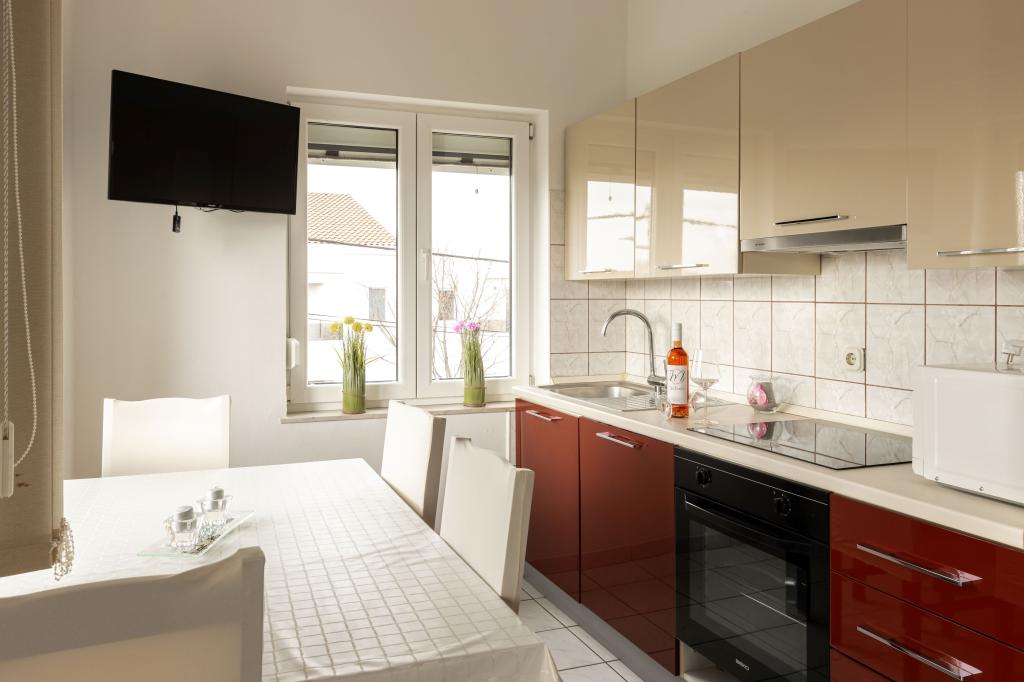 Unsere Apartments befinden sich in einem ruhigen Teil der Stadt Biograd na Moru, nur 750 m vom Hauptstrand der Stadt „Dražica“ entfernt. Das Haus ist neu gebaut. Die Wohnungen sind auf Familientourismus ausgerichtet und somit auf die Gäste abgestimmt. Sie sind mit drei Sternen kategorisiert und bieten Ihnen einen komfortablen und angenehmen Urlaub. Unsere Apartments sind ein beliebtes Ziel für Familien mit Kindern, sowohl wegen der ruhigen familiären Umgebung als auch wegen der zusätzlichen Einrichtungen für Kinder. Alle Einheiten sind klimatisiert, verfügen über ein eigenes Bad, TV, kostenloses WLAN und eine voll ausgestattete Küche. Jede Einheit verfügt über einen eigenen Balkon. Gäste können den privaten Parkplatz innerhalb des Gebäudes kostenlos nutzen.Biograd na Moru liegt im Zentrum der Adria und trägt stolz das Label „Herz der Adria“. Biograd ist eines der bekanntesten Touristenzentren Dalmatiens und eine der malerischsten Kleinstädte an der Adria. In unmittelbarer Nähe von Biograd befinden sich die Nationalparks Kornati, Krka, Paklenica sowie der Naturpark Vrana-See.