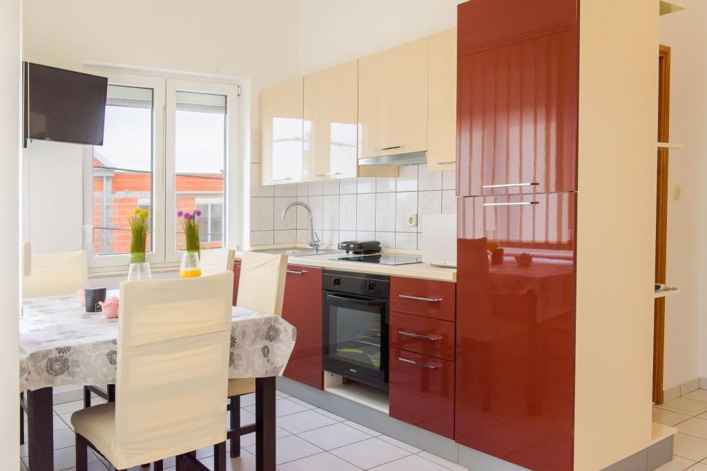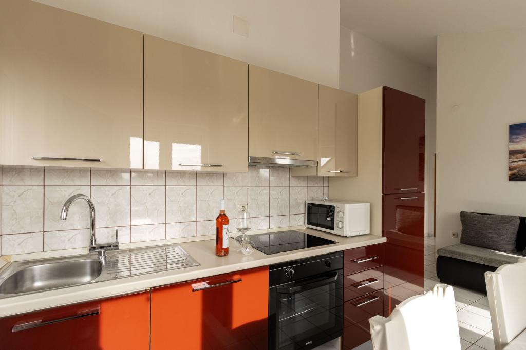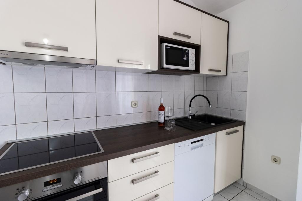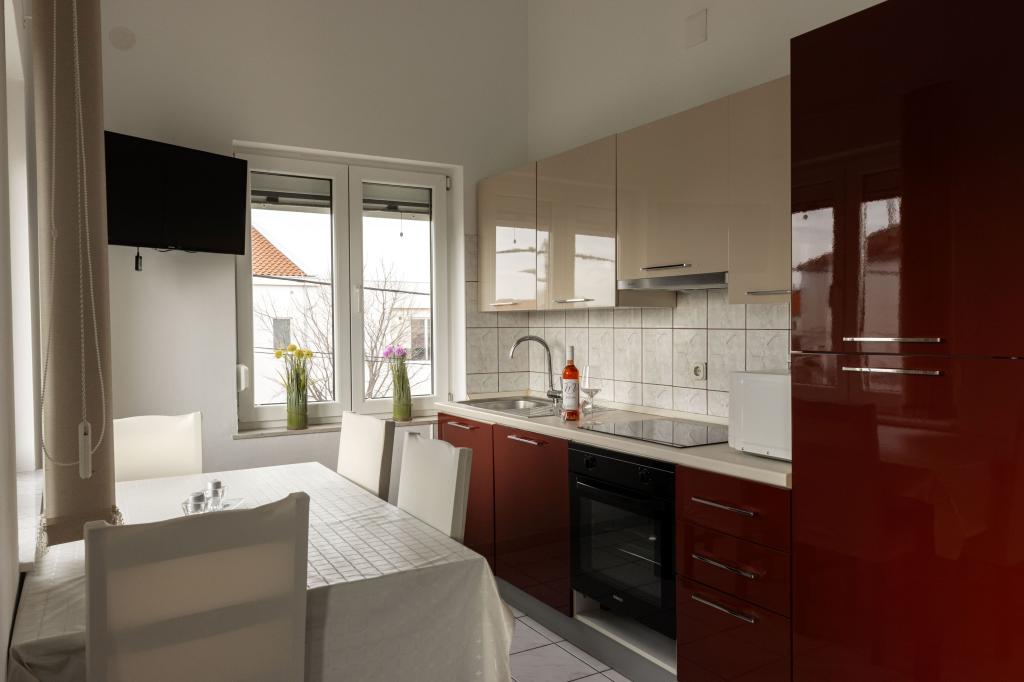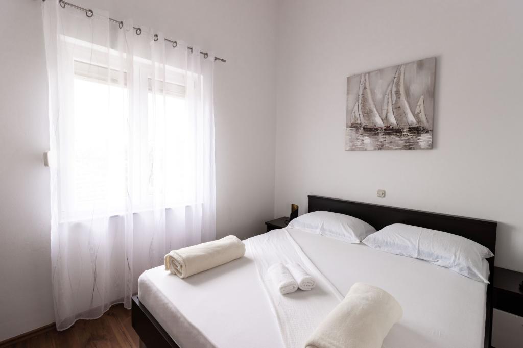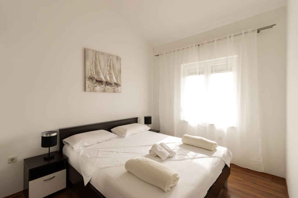 Unsere Apartments befinden sich in einem ruhigen Teil der Stadt Biograd na Moru, nur 750 m vom Hauptstrand der Stadt „Dražica“ entfernt. Das Haus ist neu gebaut. Die Wohnungen sind auf Familientourismus ausgerichtet und somit auf die Gäste abgestimmt. Sie sind mit drei Sternen kategorisiert und bieten Ihnen einen komfortablen und angenehmen Urlaub. Unsere Apartments sind ein beliebtes Ziel für Familien mit Kindern, sowohl wegen der ruhigen familiären Umgebung als auch wegen der zusätzlichen Einrichtungen für Kinder. Alle Einheiten sind klimatisiert, verfügen über ein eigenes Bad, TV, kostenloses WLAN und eine voll ausgestattete Küche. Jede Einheit verfügt über einen eigenen Balkon. Gäste können den privaten Parkplatz innerhalb des Gebäudes kostenlos nutzen.Biograd na Moru liegt im Zentrum der Adria und trägt stolz das Label „Herz der Adria“. Biograd ist eines der bekanntesten Touristenzentren Dalmatiens und eine der malerischsten Kleinstädte an der Adria. In unmittelbarer Nähe von Biograd befinden sich die Nationalparks Kornati, Krka, Paklenica sowie der Naturpark Vrana-See.