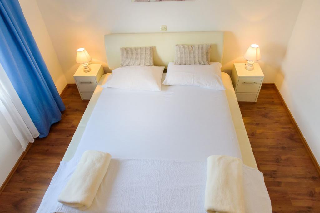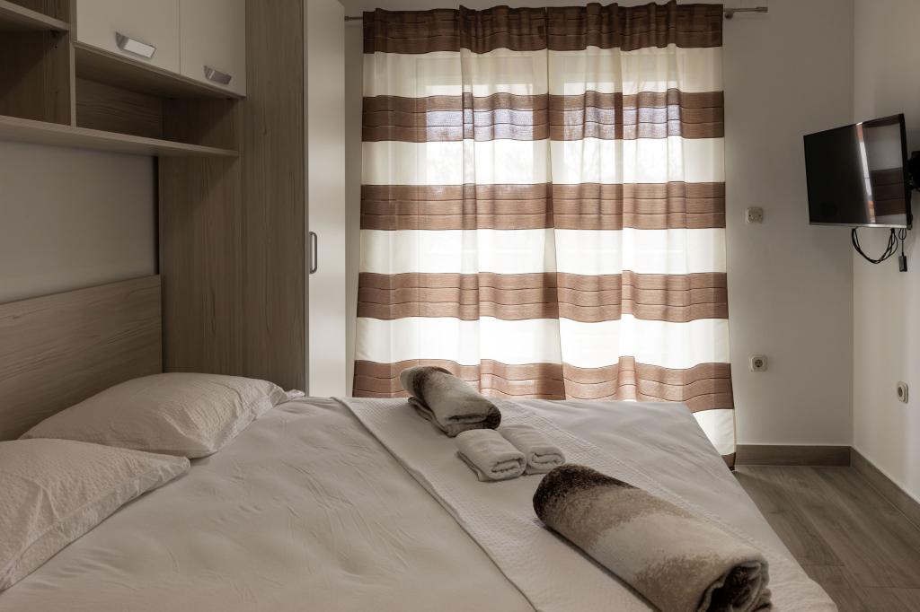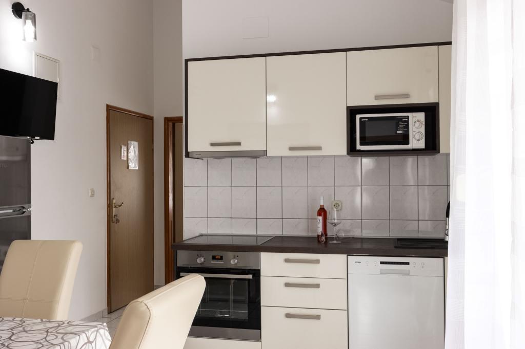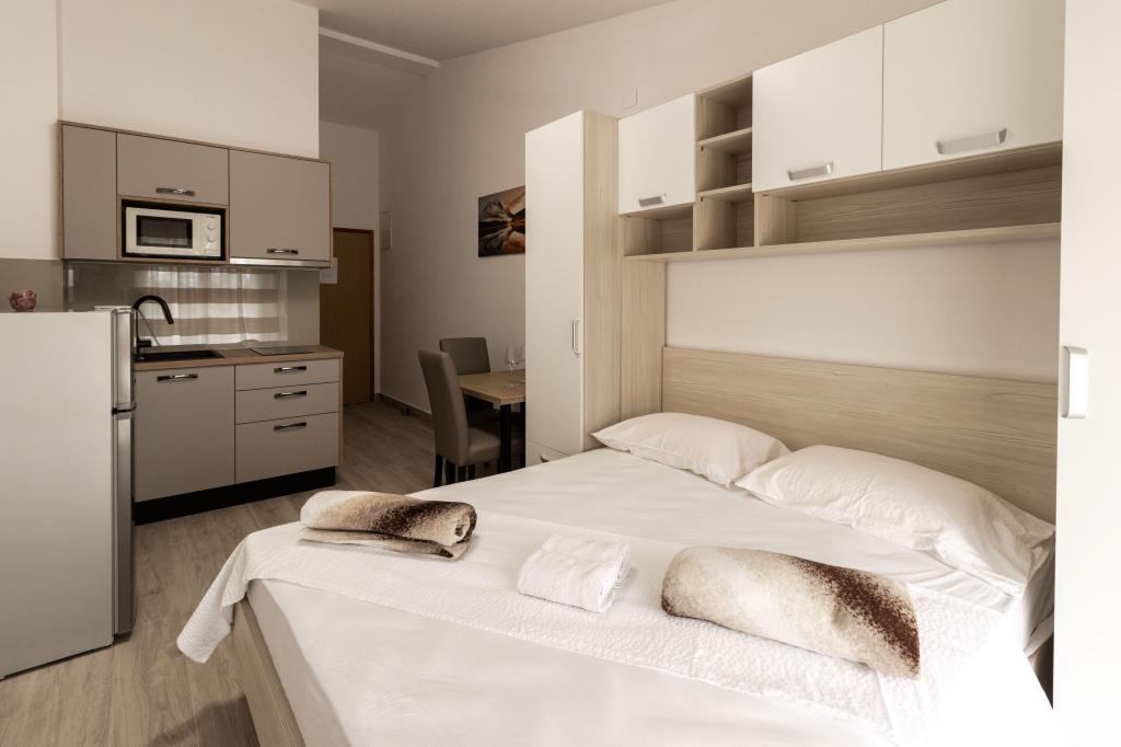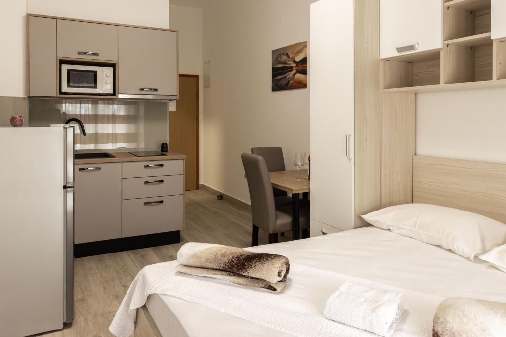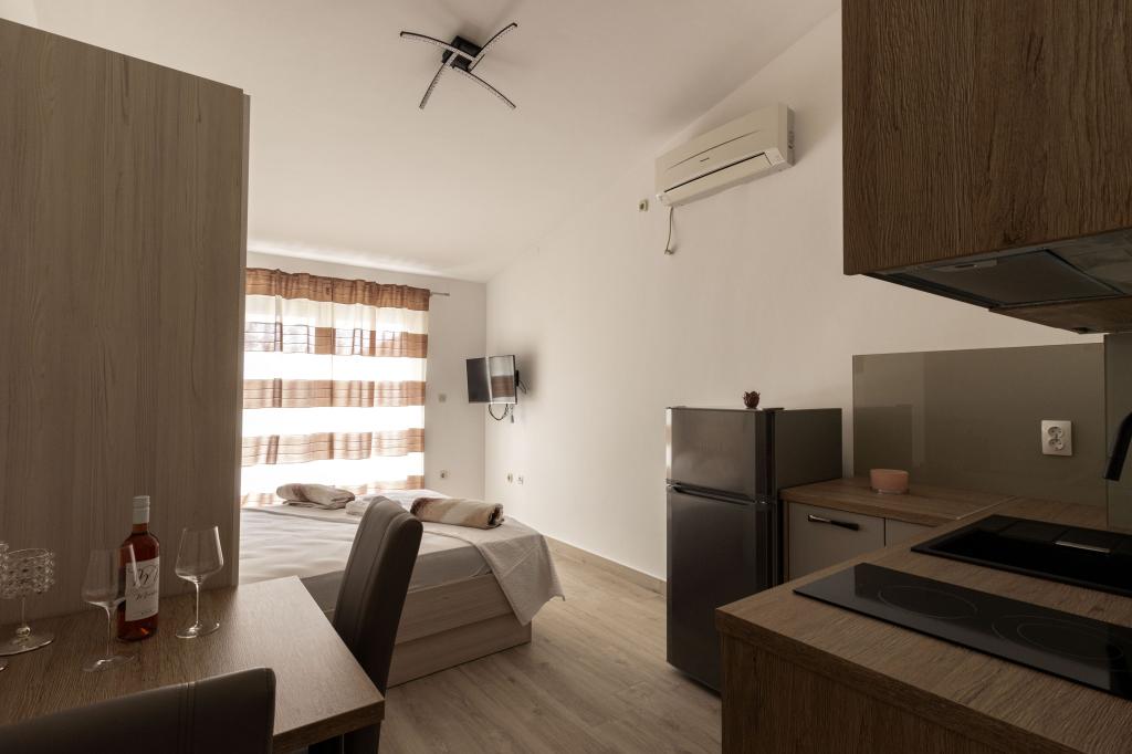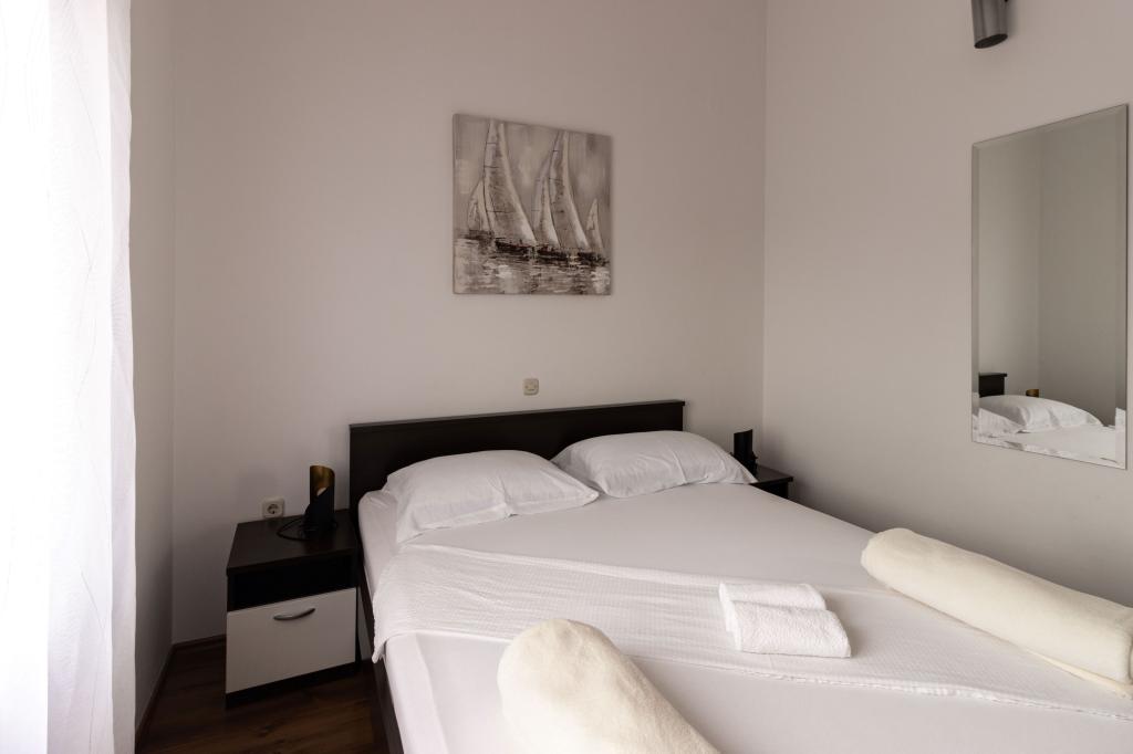 Unsere Apartments befinden sich in einem ruhigen Teil der Stadt Biograd na Moru, nur 750 m vom Hauptstrand der Stadt „Dražica“ entfernt. Das Haus ist neu gebaut. Die Wohnungen sind auf Familientourismus ausgerichtet und somit auf die Gäste abgestimmt. Sie sind mit drei Sternen kategorisiert und bieten Ihnen einen komfortablen und angenehmen Urlaub. Unsere Apartments sind ein beliebtes Ziel für Familien mit Kindern, sowohl wegen der ruhigen familiären Umgebung als auch wegen der zusätzlichen Einrichtungen für Kinder. Alle Einheiten sind klimatisiert, verfügen über ein eigenes Bad, TV, kostenloses WLAN und eine voll ausgestattete Küche. Jede Einheit verfügt über einen eigenen Balkon. Gäste können den privaten Parkplatz innerhalb des Gebäudes kostenlos nutzen.Biograd na Moru liegt im Zentrum der Adria und trägt stolz das Label „Herz der Adria“. Biograd ist eines der bekanntesten Touristenzentren Dalmatiens und eine der malerischsten Kleinstädte an der Adria. In unmittelbarer Nähe von Biograd befinden sich die Nationalparks Kornati, Krka, Paklenica sowie der Naturpark Vrana-See.
