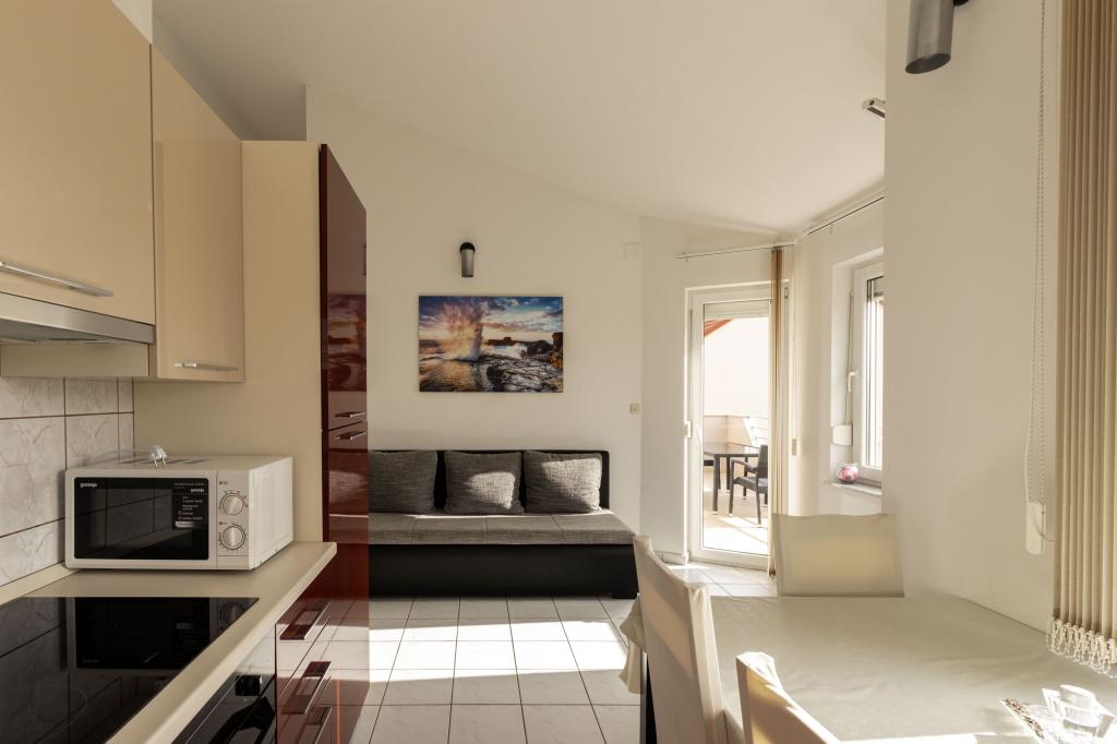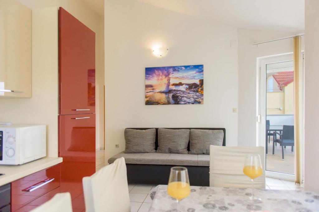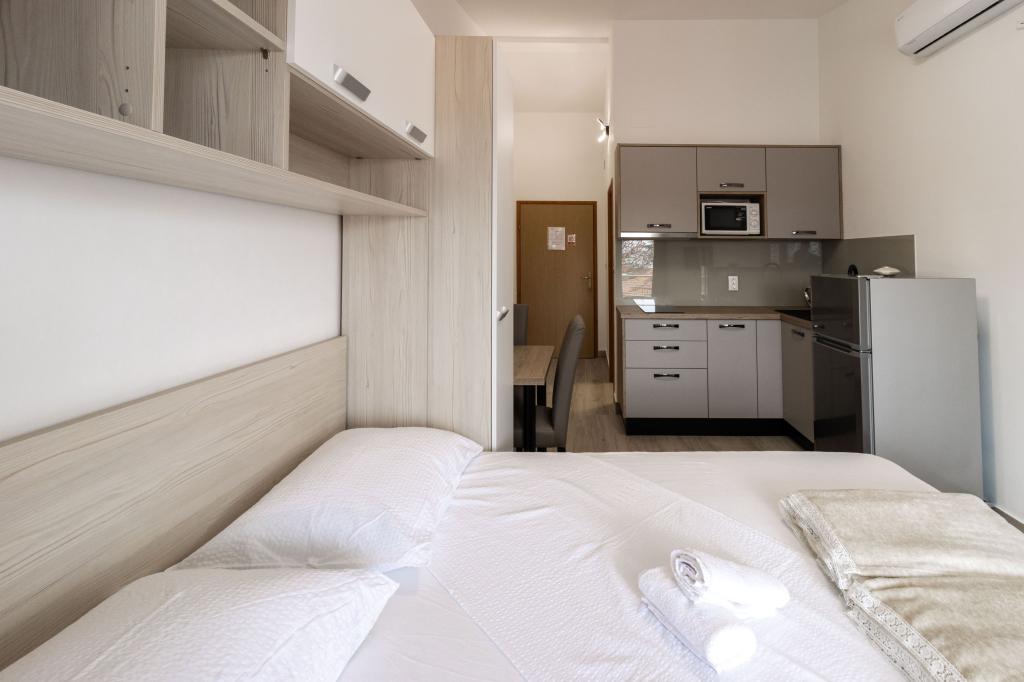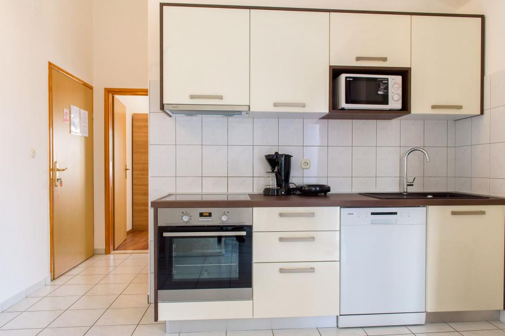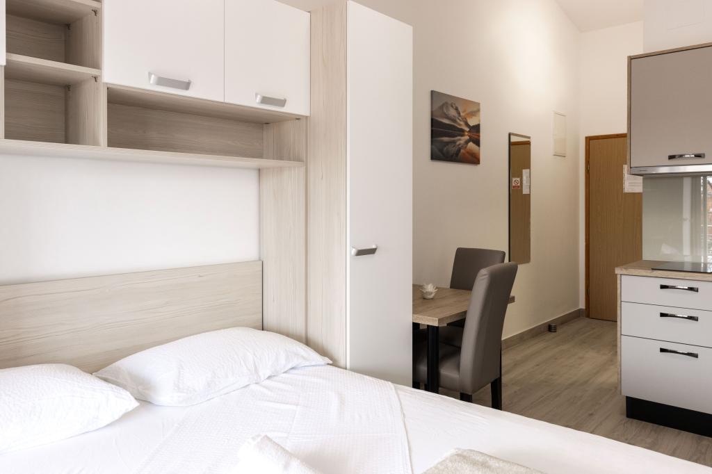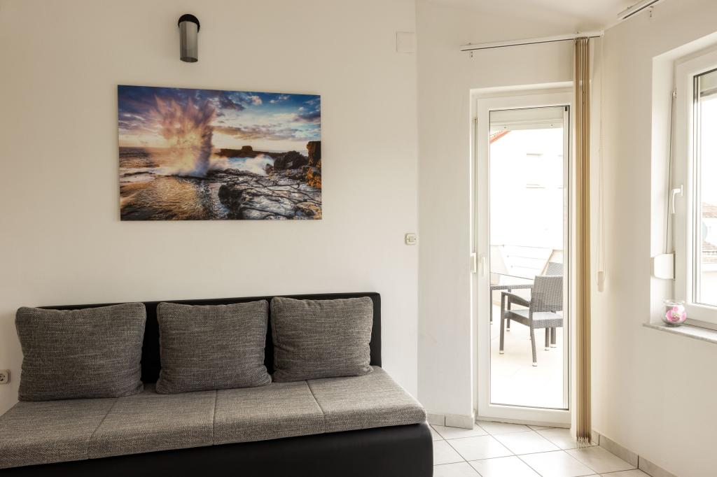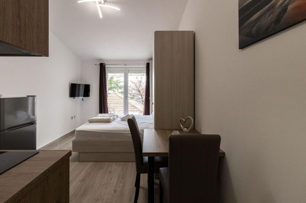 Unsere Apartments befinden sich in einem ruhigen Teil der Stadt Biograd na Moru, nur 750 m vom Hauptstrand der Stadt „Dražica“ entfernt. Das Haus ist neu gebaut. Die Wohnungen sind auf Familientourismus ausgerichtet und somit auf die Gäste abgestimmt. Sie sind mit drei Sternen kategorisiert und bieten Ihnen einen komfortablen und angenehmen Urlaub. Unsere Apartments sind ein beliebtes Ziel für Familien mit Kindern, sowohl wegen der ruhigen familiären Umgebung als auch wegen der zusätzlichen Einrichtungen für Kinder. Alle Einheiten sind klimatisiert, verfügen über ein eigenes Bad, TV, kostenloses WLAN und eine voll ausgestattete Küche. Jede Einheit verfügt über einen eigenen Balkon. Gäste können den privaten Parkplatz innerhalb des Gebäudes kostenlos nutzen.Biograd na Moru liegt im Zentrum der Adria und trägt stolz das Label „Herz der Adria“. Biograd ist eines der bekanntesten Touristenzentren Dalmatiens und eine der malerischsten Kleinstädte an der Adria. In unmittelbarer Nähe von Biograd befinden sich die Nationalparks Kornati, Krka, Paklenica sowie der Naturpark Vrana-See.