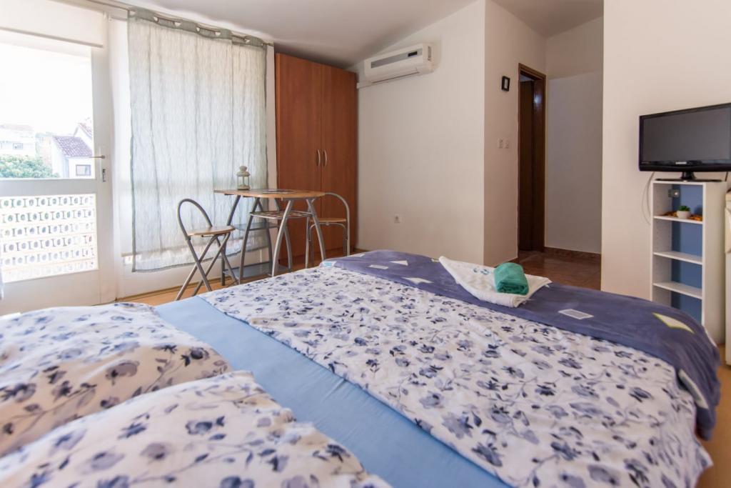 Willkommen in den RoLo Appartements und Zimmern. Der Strand Bošana liegt direkt vor dem Haus. Am Strand selbst können unsere Gäste sportliche Aktivitäten ausüben, es gibt auch Einrichtungen für Kinder – Kinderspielplatz, Wasserpark, Wassersport. Wenn Sie sich entspannen, etwas trinken oder essen möchten, können Sie dies in den nahegelegenen Cafés, Restaurants oder Fastfood-Restaurants tun. Der Parkplatz befindet sich direkt vor dem Haus und im Hof des Hauses, neben dem Garten, gibt es auch einen Grill, den unsere Gäste frei nutzen können. Wir empfehlen unsere Appartements und Zimmer Familien, Paaren und Singles. Im Übernachtungspreis sind Kurtaxe, Parkplatz, Nutzung der Klimaanlage, WLAN-Nutzung und Bettwäsche enthalten. Alle unsere Wohneinheiten verfügen über eigene Badezimmer mit Toiletten. Da wir uns in der Nähe des Stadtzentrums befinden, ist alles, was Sie brauchen, in der Nähe unserer Unterkunft und Sie müssen das Zentrum in weniger als 10 Minuten zu Fuß erreichen.
