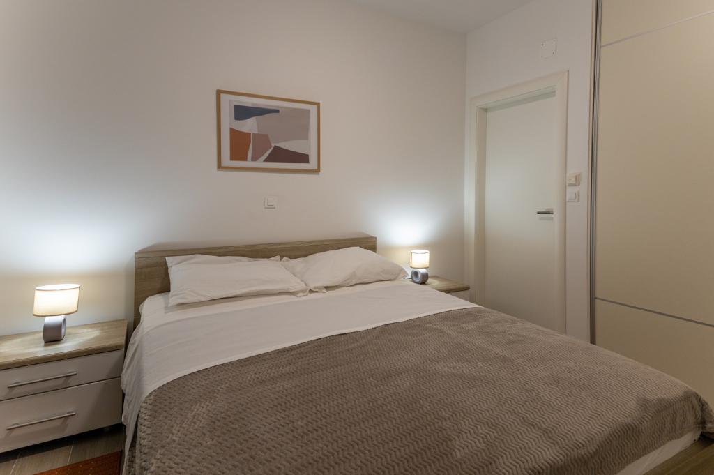 Modern ausgestattetes Apartment in einem ruhigen Teil der Stadt, nur 60 Meter vom Hauptstrand der Stadt, Dražica, und dem Wassersportzentrum Ilirija (Schwimmbad) entfernt. Die Wohnung wurde 2018 erbaut, jedes Zimmer verfügt über ein eigenes modernes Badezimmer mit Dusche. Außerdem gibt es in der Wohnung eine Waschmaschine und ein großer, gemütlicher Grill befindet sich im Gemeinschaftsbereich des Hofes. Parkmöglichkeiten gibt es im eingezäunten Gemeinschaftshof. Wir haben zwei weitere Apartments in Prominska 1 und bieten kostenlose Parkplätze in Tina Ujevića 37. https://www.apartmanija.hr/apartmani/biograd-na-moru/apartmani-lu-i-lu/32186
