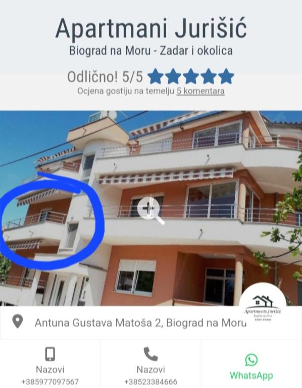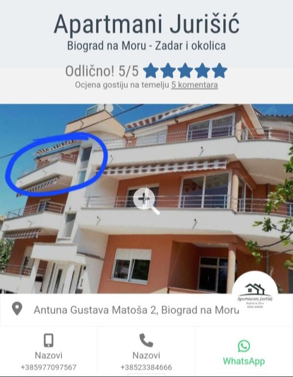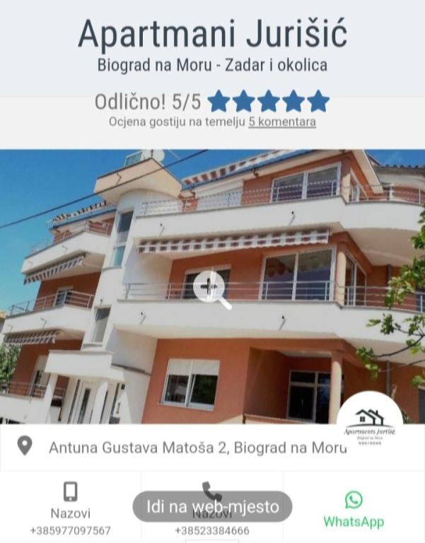 Wir sind die Familie Jurišić, die auf eine lange, mehr als 40-jährige Tradition im Tourismus zurückblickt. Unsere beiden Häuser befinden sich in einem ruhigen Teil des Stadtzentrums von Biograd na Moru (in der Nähe des Hotels „Ilirija“), nur 50 Meter vom Meer, der Promenade, der Uferpromenade und anderen Annehmlichkeiten entfernt … Restaurants, Geschäfte, Post … Alle Apartments verfügen über klimatisierte Unterkünfte (es gibt eine Klimaanlage in jedem Zimmer und im Wohnzimmer), es gibt Moskitonetze an den Fenstern und jedes Apartment verfügt über einen eigenen Balkon, einen bewachten Parkplatz, WLAN und einen Grill zur Nutzung. Die Preise (nach Datum) sind in der Preisliste jedes Apartments aufgeführt (für ein Zusatzbett bzw. Sofa für zwei weitere Personen/Kinder wird ein Aufpreis von +10 Euro/Nacht berechnet).