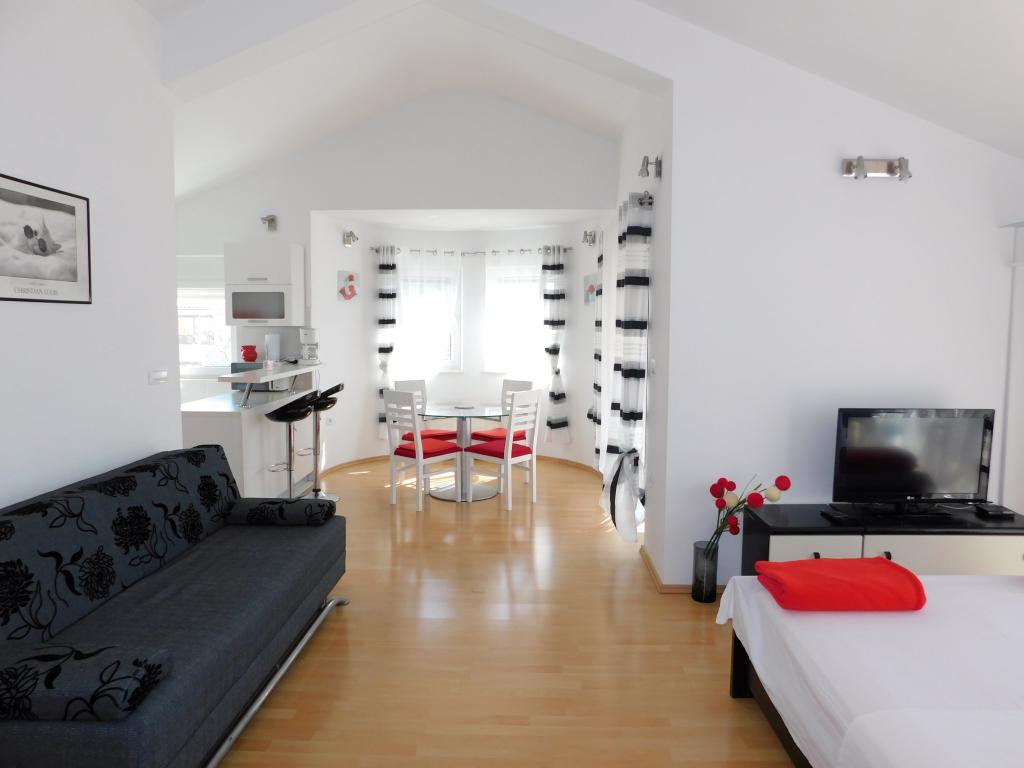 Ein großes Lob an die Familie Jurišić und insbesondere an Frau Vanesa, die uns herzlich willkommen geheißen hat und jederzeit für Fragen zur Verfügung stand. Die Wohnung, in der wir wohnten, ist sehr modern und komfortabel eingerichtet. Ein großes Plus der Wohnung sind zwei Badezimmer mit Duschen. Die Küche ist mit allem ausgestattet, was eine vierköpfige Familie braucht. Die Betten sind bequem und es gibt genügend Kleiderschränke, um Dinge aufzubewahren. In der Nähe des Strandes und des Zentrums. Wir haben das Auto fünf Tage lang nicht benutzt. Unsere Kinder im Alter von 11 und 7 Jahren genossen alle Einrichtungen, die der Ort bietet (Rutschen, Vergnügungspark für Kinder). Wir können diese Stadt und die Wohnung, in der wir übernachtet haben, auf jeden Fall empfehlen.