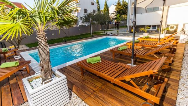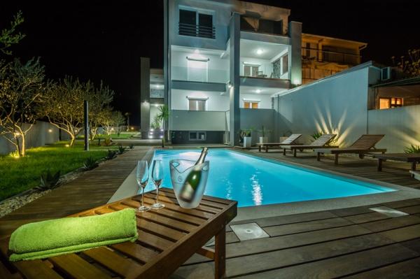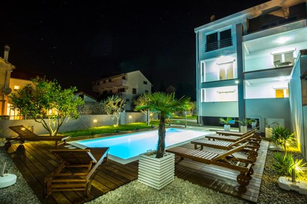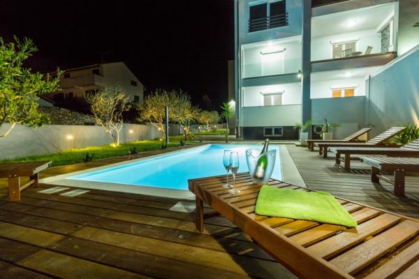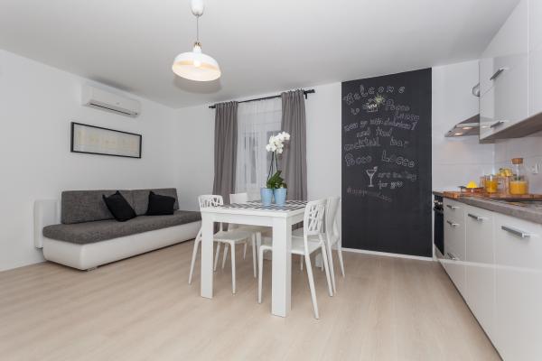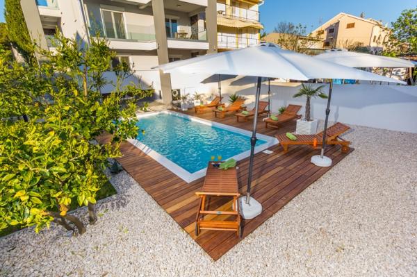 Wir bieten vier neue, voll ausgestattete und moderne Apartments in einem ruhigen Teil von Biograd. Jede Wohnung besteht aus einem Schlafzimmer, Küche und Esszimmer, Wohnzimmer und Bad. Ideal für zwei bis vier Personen. Jeder von ihnen ist ausgestattet mit allen notwendigen Einrichtungen: Klimaanlage, Sat-TV, WLAN, Radio, Backofen. . Jedes Apartment verfügt über Bettwäsche und Handtücher. Das Haus ist von einem großen Garten mit einem Swimmingpool und einem Ruhebereich umgeben ist, die für Familien mit Kindern und für junge Paare, die diesen Ort ideal macht. Im Hinterhof Grill ist vorhanden, und jede Wohnung hat einen eigenen Parkplatz.
