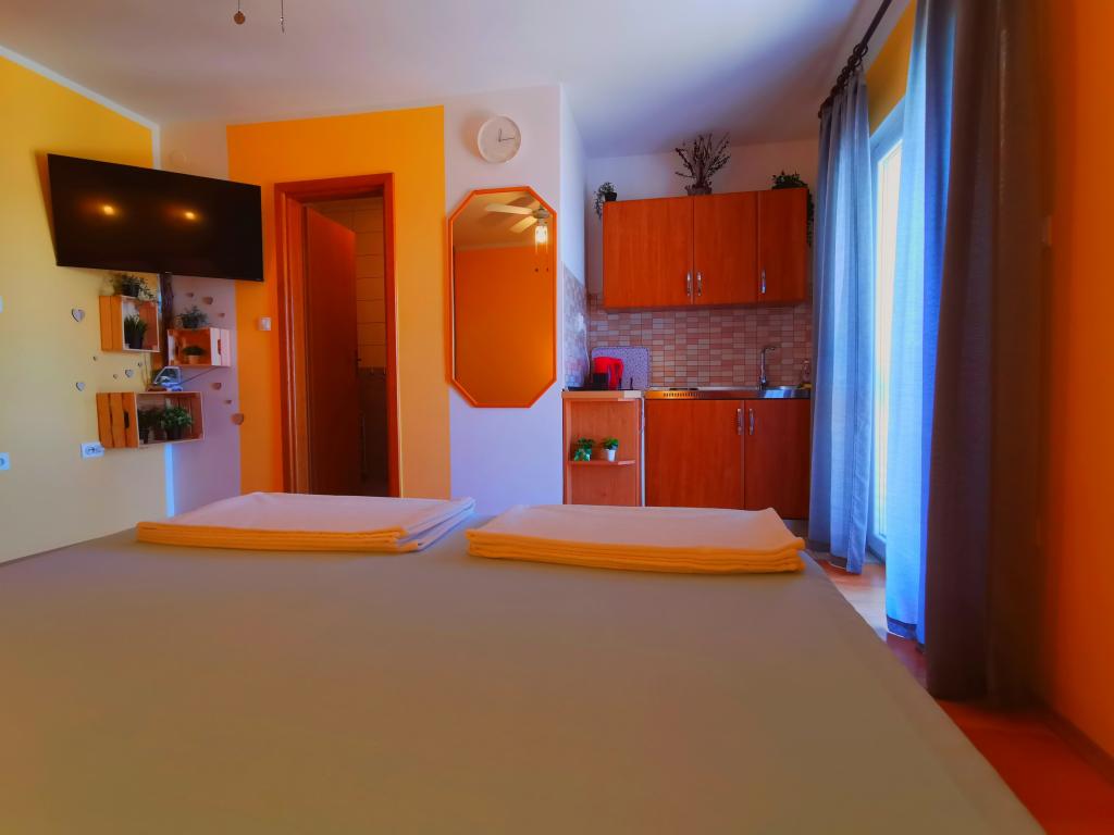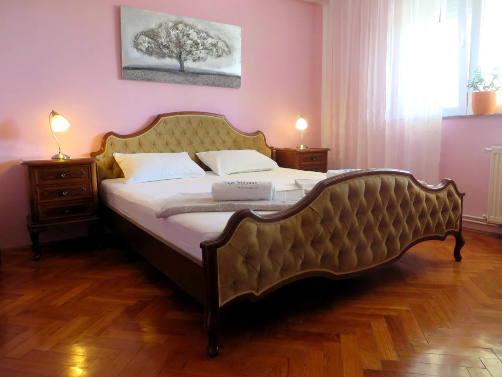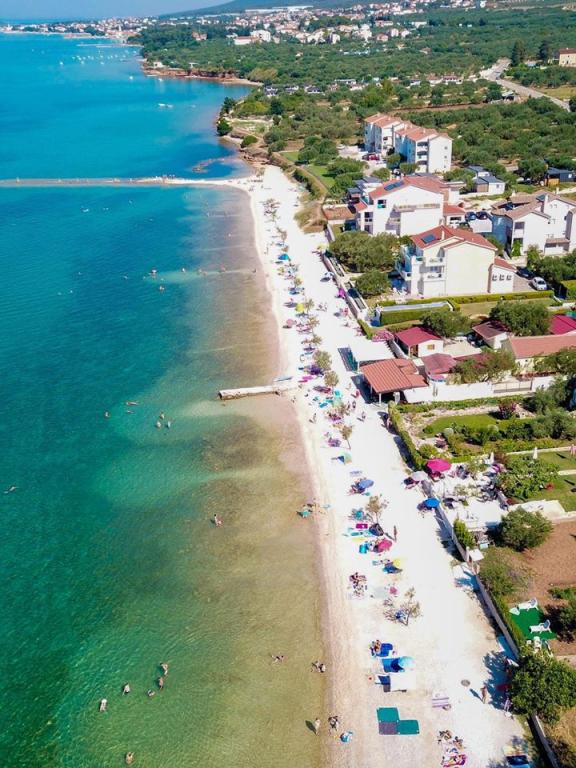 Die Strandapartments Roza liegen in der ersten Reihe zum Strand von Bošana in einem grünen Garten, in der Nähe aller Annehmlichkeiten. Geschäfte, Restaurants und Bars befinden sich in unmittelbarer Nähe, das Stadtzentrum ist weniger als 10 Gehminuten entfernt. Gesicherter Parkplatz im Hof für Fahrzeuge in Standardgröße.