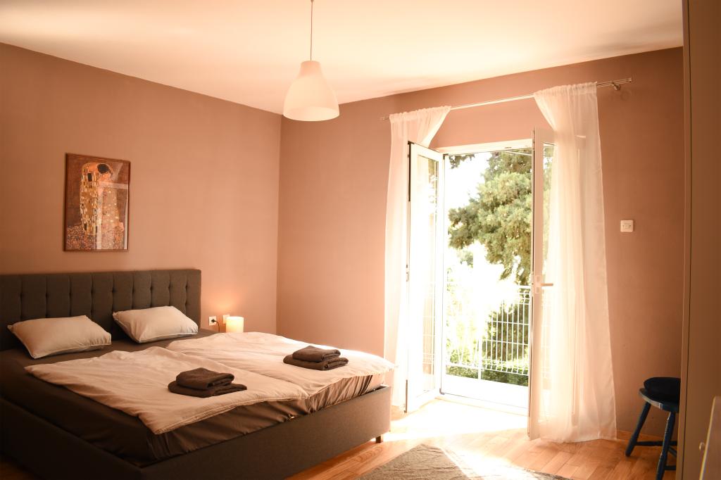 Möblierte Wohnung im ersten Stock mit separatem Eingang in Biograd, im Stadtteil Bošana, nur 150 m vom Strand mit Einkaufsmöglichkeiten, 300 m vom Geschäft und zehn Gehminuten vom Zentrum entfernt. Die Wohnung verfügt über zwei Schlafzimmer mit Doppelbetten (180x200 cm und 160x200 cm), eine Wohnküche, ein kleines Wohnzimmer und einen Balkon. Ein kostenloser Parkplatz im Hof steht ebenfalls zur Verfügung. Das Haus liegt in einem Hof, der nicht direkt an der Straße liegt, sodass Ruhe und Erholung garantiert sind. Zwei Hunde und eine Katze leben separat von der Wohnung. Daher ist die Unterkunft nicht für Gäste mit Tierunverträglichkeiten oder -allergien geeignet. Haustiere können auf Anfrage gegen eine Gebühr mitgebracht werden. Alle anderen Kosten sind im Preis inbegriffen. Für weitere Informationen stehe ich Ihnen gerne zur Verfügung.