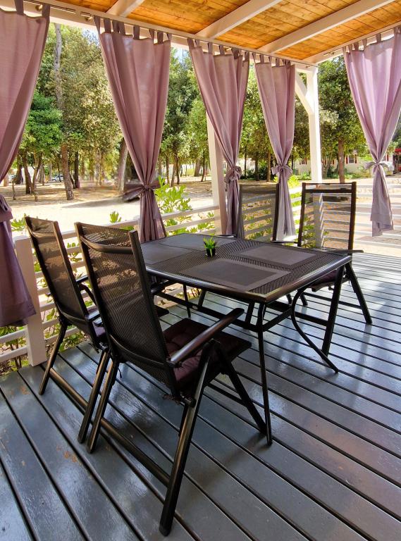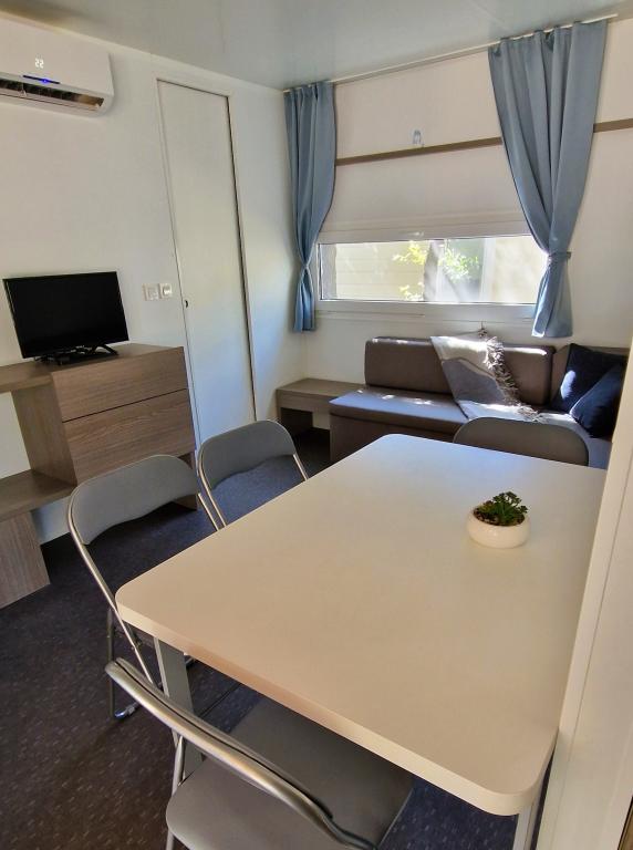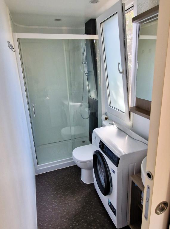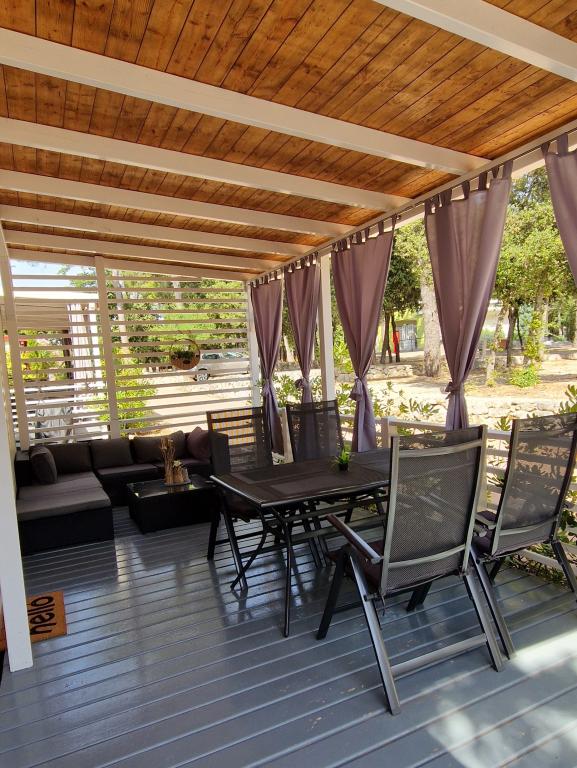 Willkommen im Wohnwagen ARIA auf dem wunderschönen Campingplatz Soline Park, im Schatten eines dichten Kiefernwaldes, direkt an einer der schönsten Küsten der Adria. Die Lage bietet die ideale Kombination aus natürlicher Ruhe und der Nähe zu allen Annehmlichkeiten – das Zentrum von Biograd erreichen Sie in nur 15 Minuten zu Fuß entlang der gepflegten Küstenpromenade. Entlang der gesamten Küste des Campingplatzes finden Sie Kies- und Sandstrände sowie zahlreiche Cafés, Restaurants, Geschäfte und andere Sehenswürdigkeiten. Der Wohnwagen ARIA befindet sich unter der Hausnummer 693 und ist komplett ausgestattet für einen unbeschwerten und angenehmen Familienurlaub. Er verfügt über zwei separate Schlafzimmer, ein Wohnzimmer mit Ausziehbett, eine Küche mit Essbereich und eine geräumige, kindersichere Terrasse. Klimaanlage, TV, privater Parkplatz und Waschmaschine sind ebenfalls vorhanden. Die Unterkunft eignet sich besonders für Familien mit Kindern – die Terrasse ist eingezäunt und die Umgebung ist ruhig und natürlich. Der Campingplatz bietet außerdem einen Vergnügungspark, einen Kinderspielplatz, einen Kinderclub und verschiedene Tages- und Abendanimationen.