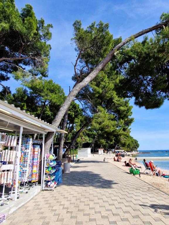 Im Aufenthaltspreis sind Handtücher und Bettwäsche enthalten. Strom, Wasser, Gas und Waschmaschine sind vorhanden. Begrüßungsgetränk. Kostenloser WLAN-Internetzugang. Haustiere sind auf Anfrage erlaubt. Zusätzliche Inhalte: Hochstuhl für die Kleinsten, ergonomisch verstellbare Babybadewanne und Sicherheitszaun für das Bett. DALMALAND – Themen-, Unterhaltungs- und Wasserpark in unmittelbarer Nähe. ADVENTURE PARK BIOGRAD – liegt in einem Kiefernwald am Stadtrand. Ein idealer Adrenalinpark in der Natur, ideal für Familien, Kinder und alle, die einen aktiven Tag an der frischen Luft verbringen möchten. Wechselstube. Restaurant Park Soline/Kameni Dvori. Soline Beach Bar am Sandstrand. Soline Beach: Sand- und Kiesstrände, geeignet für Familien mit Tretboot-, Kajak-, Trampolin- und Wibit-Wasserpark. Entlang der Küste: Fels- und Kiesstrände mit abgegrenzten Badezonen sowie Zonen für Jetski, Wakeboard und Wasserski. Land- und Sportinhalte im Camp. Wassersport und Abenteuer. Ausflüge, Natur und Bildungsinhalte. Animation für Familien.
