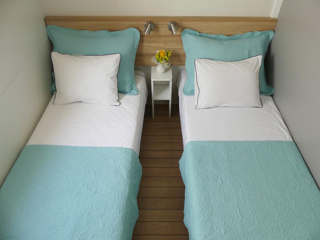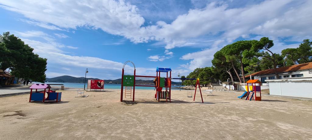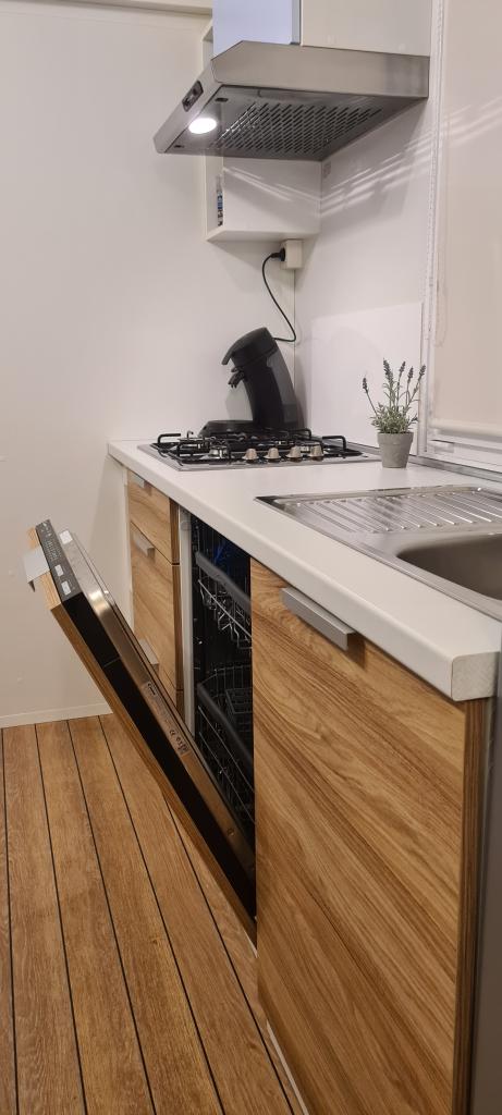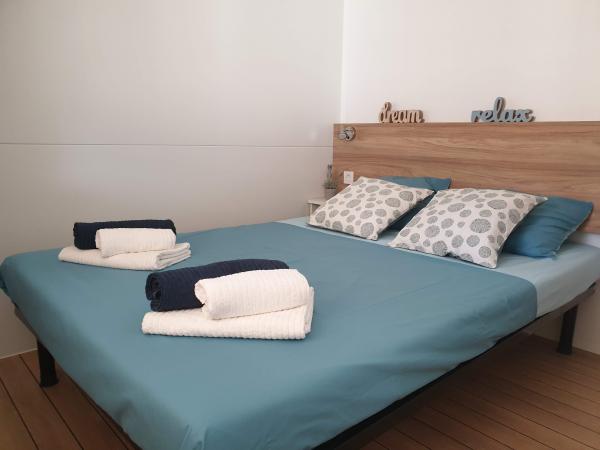 Blue Wave ist ein neues, modernes und voll ausgestattetes Mobilheim mit zwei Schlafzimmern (eines mit Doppelbett und das andere mit zwei Einzelbetten), Kleiderschränken, zwei Badezimmern mit Dusche, einem Wohnzimmer mit einem zusätzlichen Ausziehbett (135 x 180 cm), einer voll ausgestatteten Küche mit Klimaanlage und einer großen Terrasse. Die Terrasse ist mit einem Esstisch, einem Elektrogrill und zwei gemütlichen Liegestühlen ausgestattet. WLAN steht Ihnen im gesamten Gebäude kostenfrei zur Verfügung. Blue Wave liegt im ruhigen Kiefernwald des Campingplatzes Soline in Biograd na moru. Die Anlage ist 2–3 Gehminuten vom Strand, der Café-Bar und dem Restaurant entfernt. Das Camp verfügt über Waschmaschinen und Trockner, einen Geldautomaten, ein Geschäft, eine Bäckerei, einen Kinderspielplatz und alles, was Sie für einen angenehmen Aufenthalt brauchen! In unmittelbarer Nähe des Camps, etwa 10 Gehminuten entlang der neu renovierten Promenade am Meer entlang, liegt das Zentrum von Biograd mit verschiedenen Einrichtungen sowie der Yachthafen von Kornati. Auch der Dalmaland Fun & Water Park ist nicht weit entfernt und bietet jede Menge Spaß.