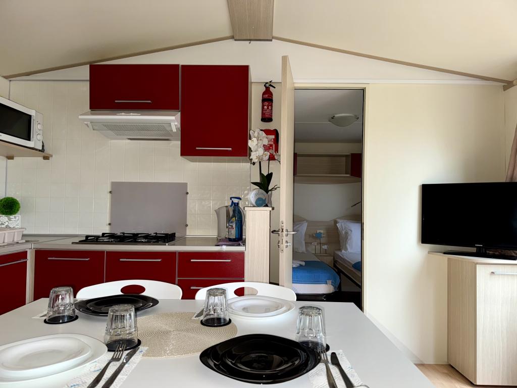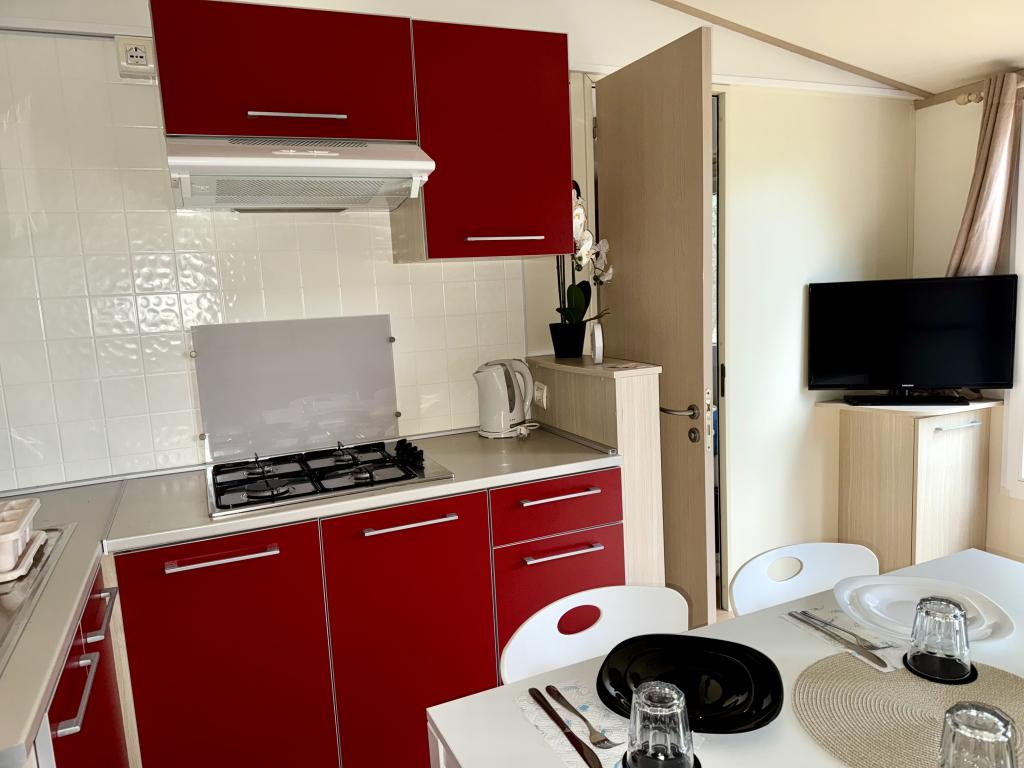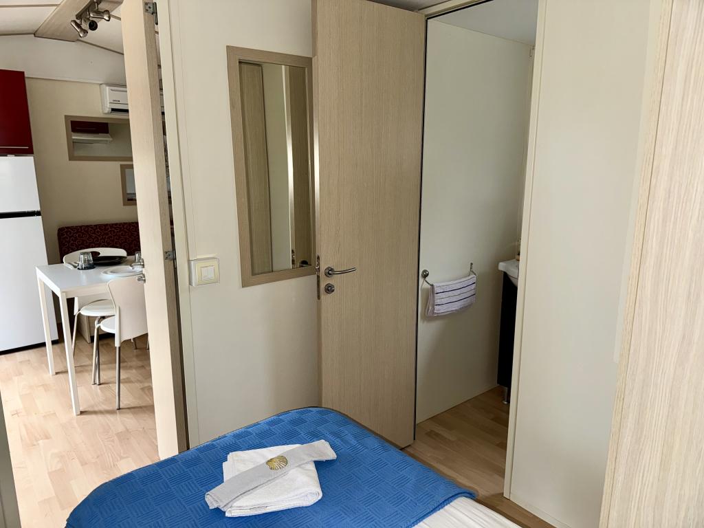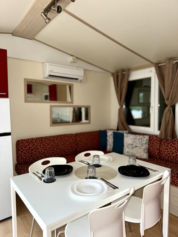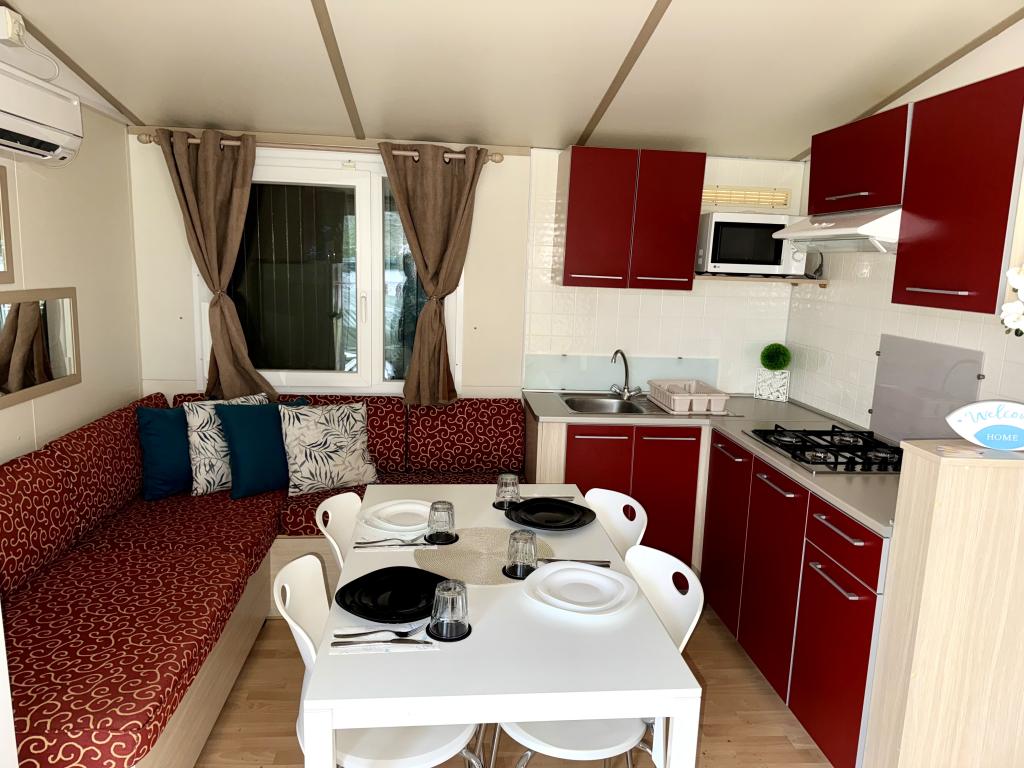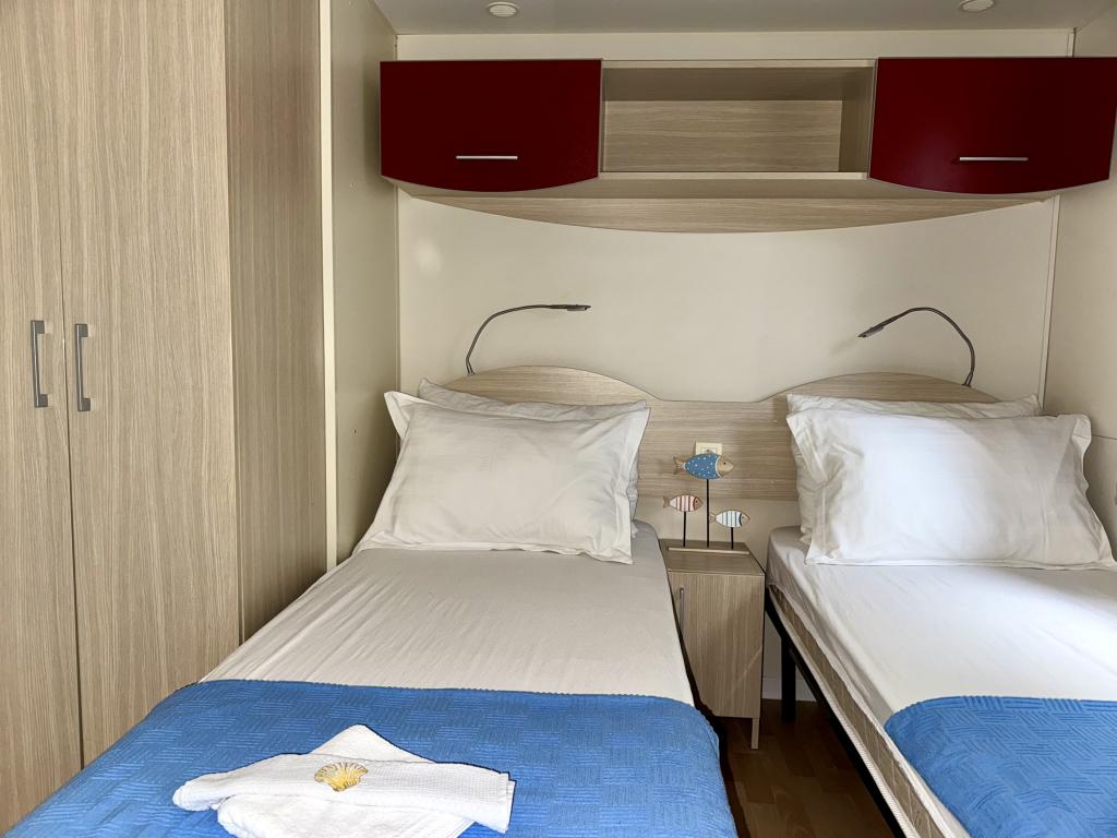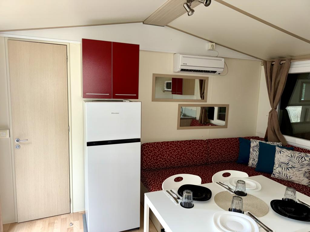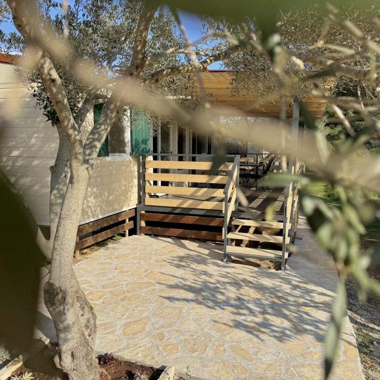 Das Mobilheim Bonaca befindet sich auf dem Campingplatz Bakija, nur 40 m vom Meer entfernt und bietet direkten Strandzugang. Der Strand von Soline ist in 2-3 Minuten zu Fuß erreichbar, der Markt von Studenac in 1 Minute und das Zentrum in 7-8 Minuten. Das Mobilheim ist komplett ausgestattet mit Garten, Küche und einem komfortablen Wohnzimmer. Parkplatz, eigener Grill und Außendusche stehen ebenfalls zur Verfügung. Es bietet Platz für 4 Personen und verfügt über 2 Schlafzimmer und 2 Badezimmer. Die geräumige Terrasse lädt mit Meerblick und wunderschönen Sonnenuntergängen zum Verweilen ein.