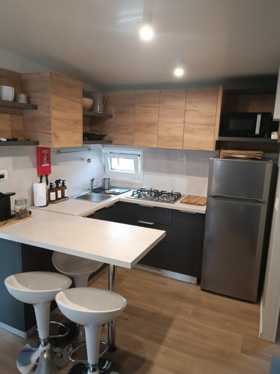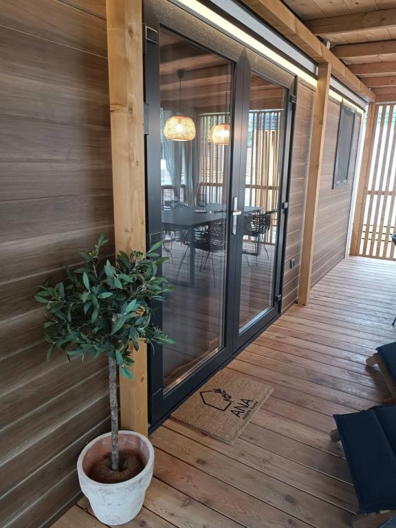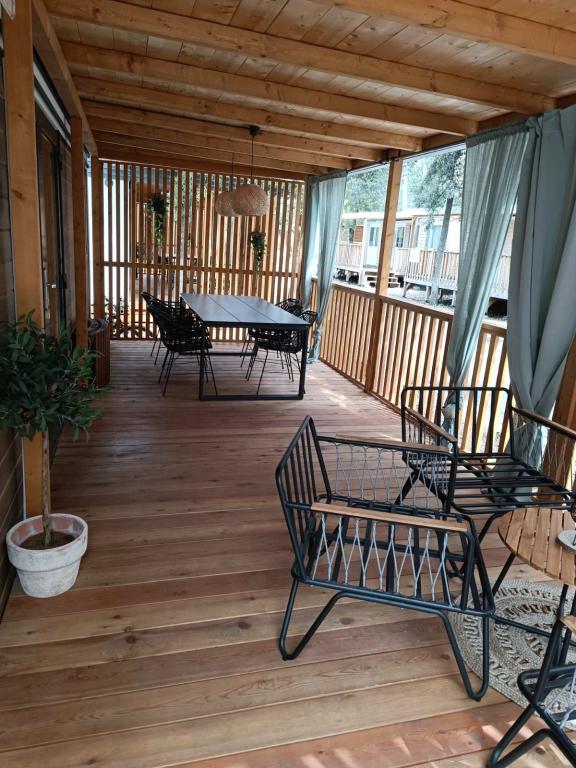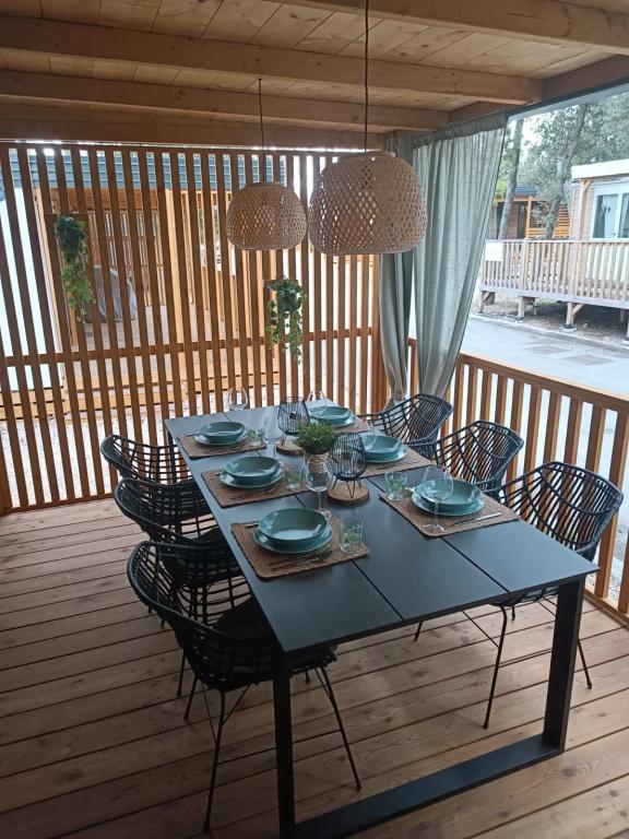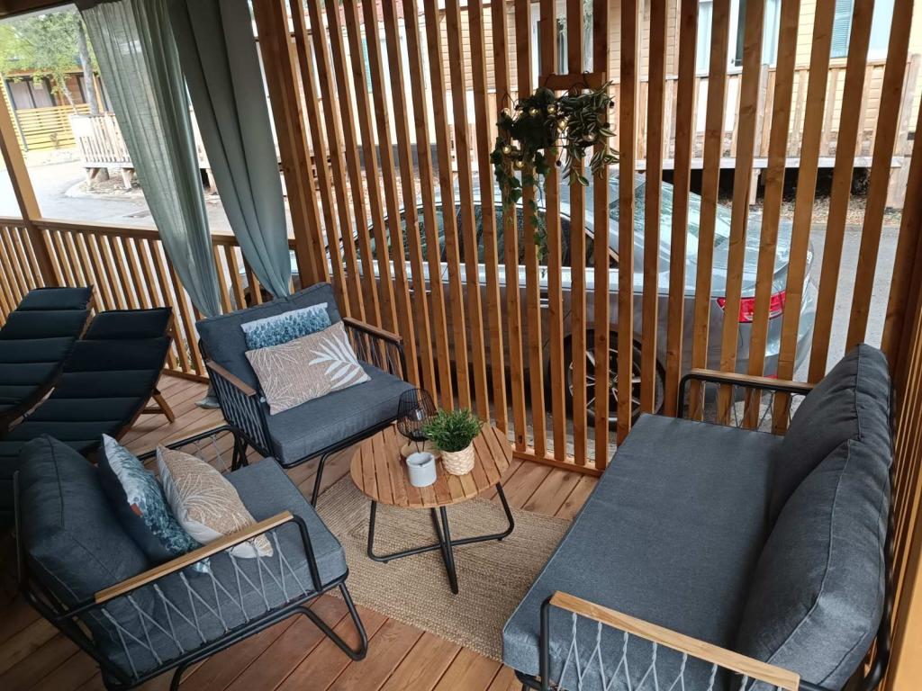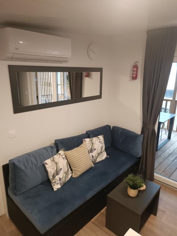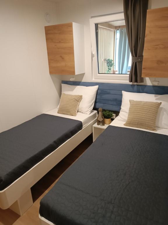 Das moderne Mobilheim InnMare 646 liegt in ruhiger Lage auf dem Campingplatz Soline, inmitten eines Kiefernwaldes, und ist der ideale Ort für einen Familienurlaub. Auf 32 m² bietet es ein Schlafzimmer mit Doppelbett, ein Schlafzimmer mit zwei Einzelbetten, ein Wohnzimmer mit Schlafcouch (für 1-2 Personen), zwei separate Badezimmer mit WC, eine 32 m² große Terrasse, einen kleinen Hof und einen Parkplatz. Das Haus ist komplett möbliert. Die Küche ist neben der Standardausstattung mit Mikrowelle, Wasserkocher und Espressomaschine ausgestattet. Auf der Terrasse laden ein Esstisch und Liegestühle zum Entspannen im Kiefernduft ein. Direkt neben dem Haus befindet sich ein Grill, der ebenfalls zur Ausstattung gehört. Ein Parkplatz für ein Fahrzeug steht den Gästen zur Verfügung. Willkommen im InnMare 646, einem modernen Anwesen, das für einen ruhigen und idyllischen Familienurlaub in einem stillen Kiefernwald, in der Nähe des Meeres, der Strände und von Biograd na moru, gedacht ist!