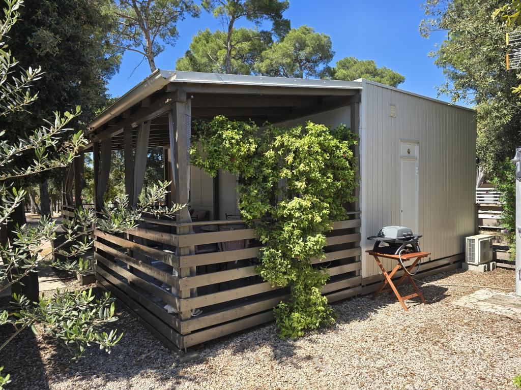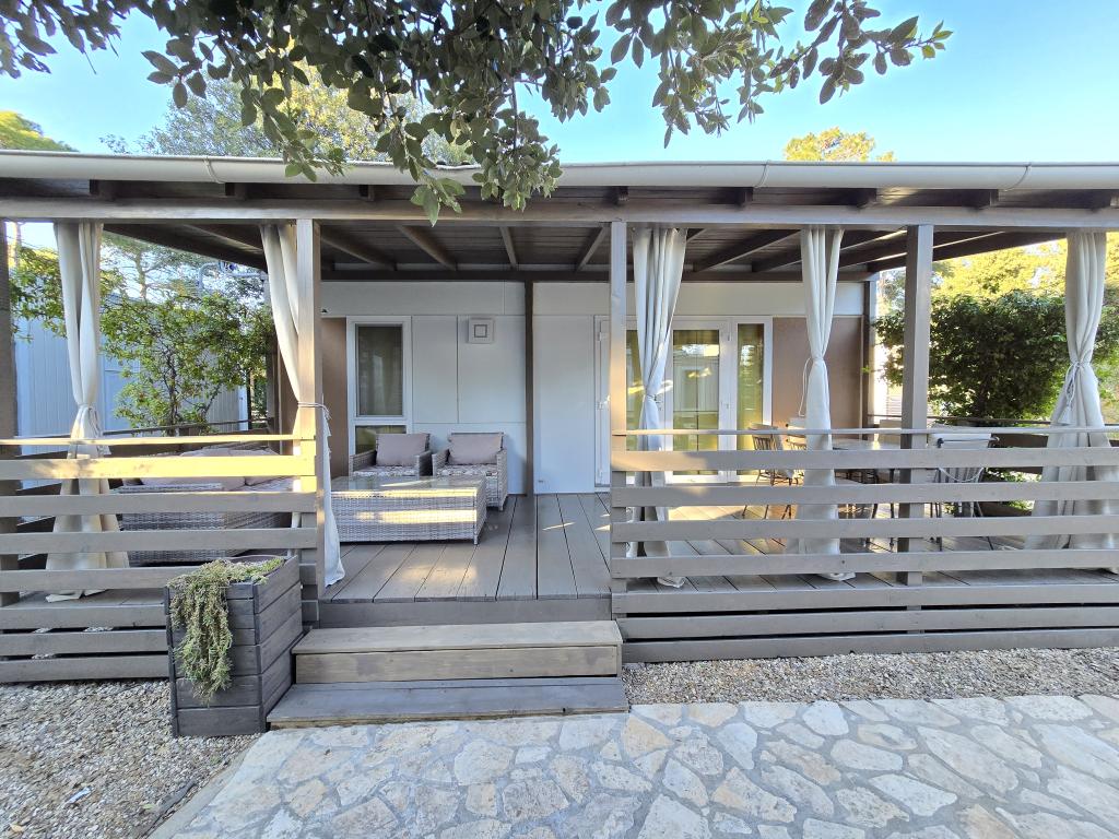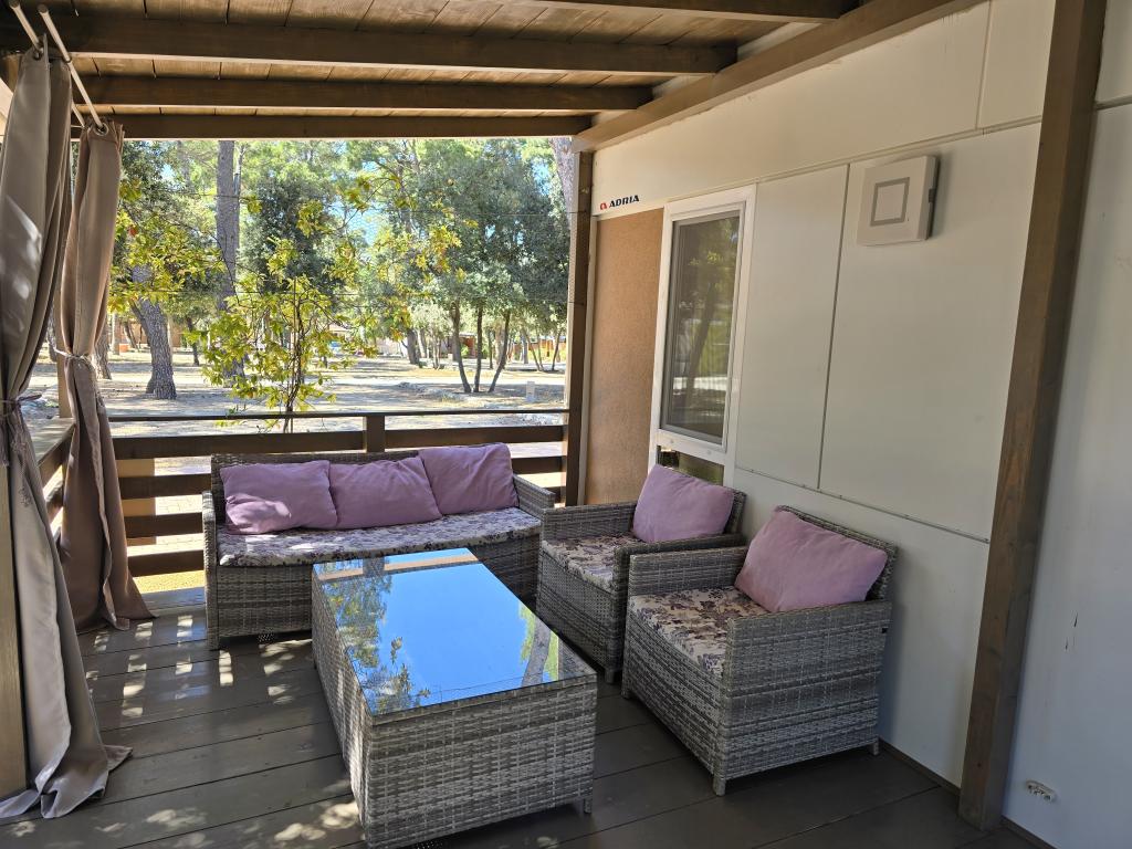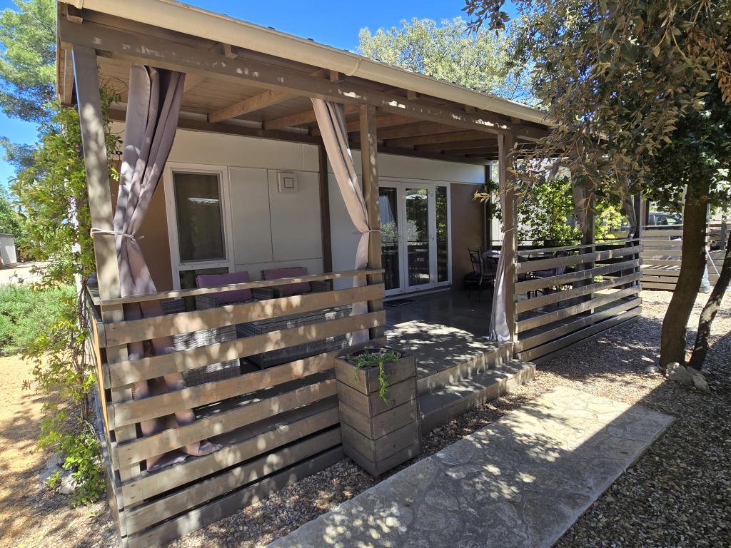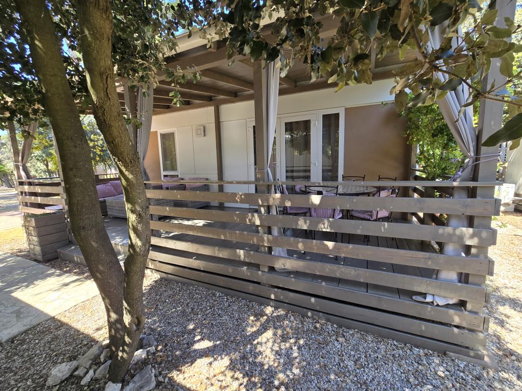 Voll ausgestattetes Mobilheim mit einer Fläche von 30 m2 mit großer Terrasse und einem Parkplatz. Liegt in einem ruhigeren Teil des Campingplatzes Soline, nicht zu weit vom Lärm der Restaurants, Cafés und des Strandes entfernt, aber dennoch nah genug.