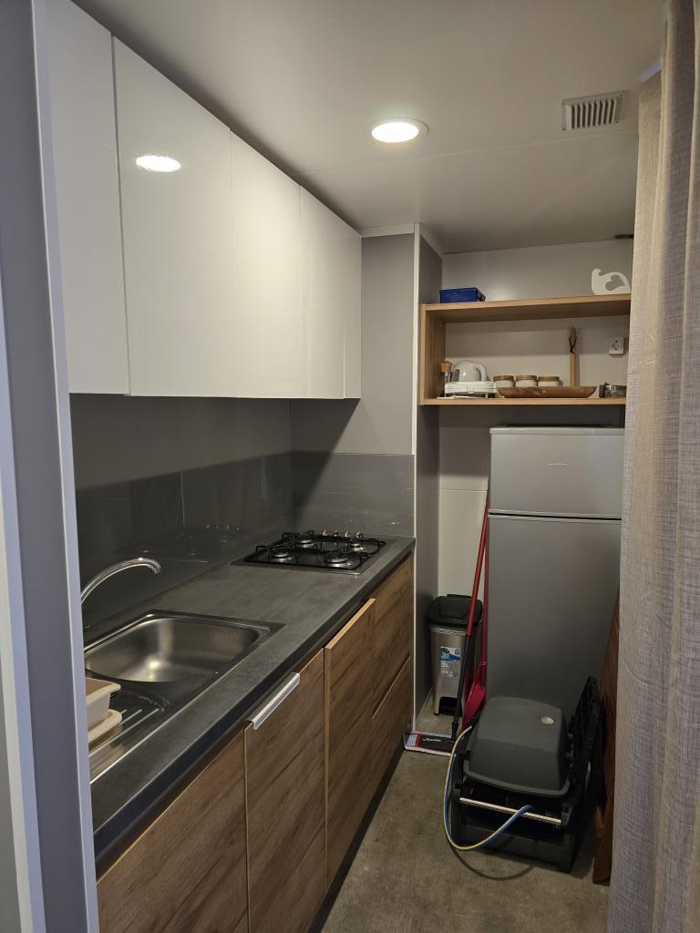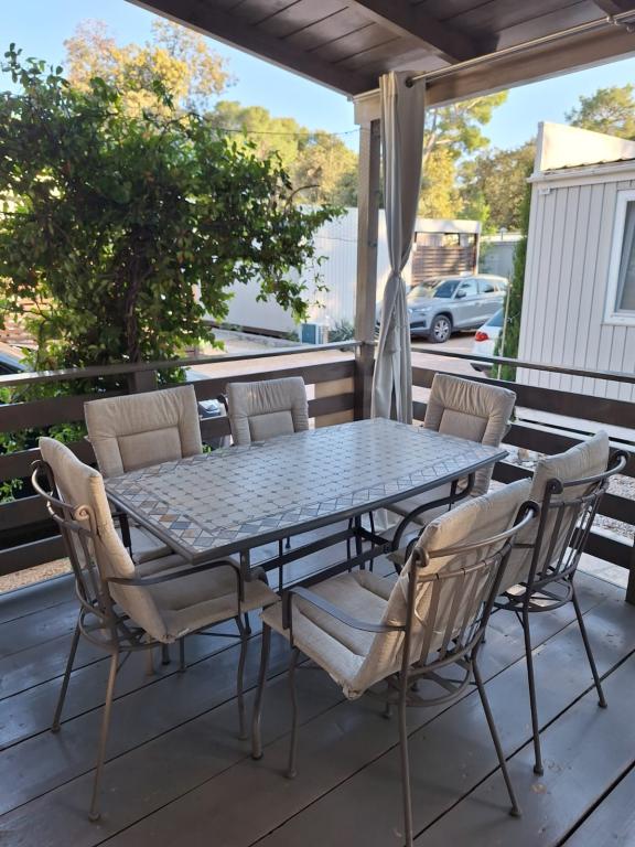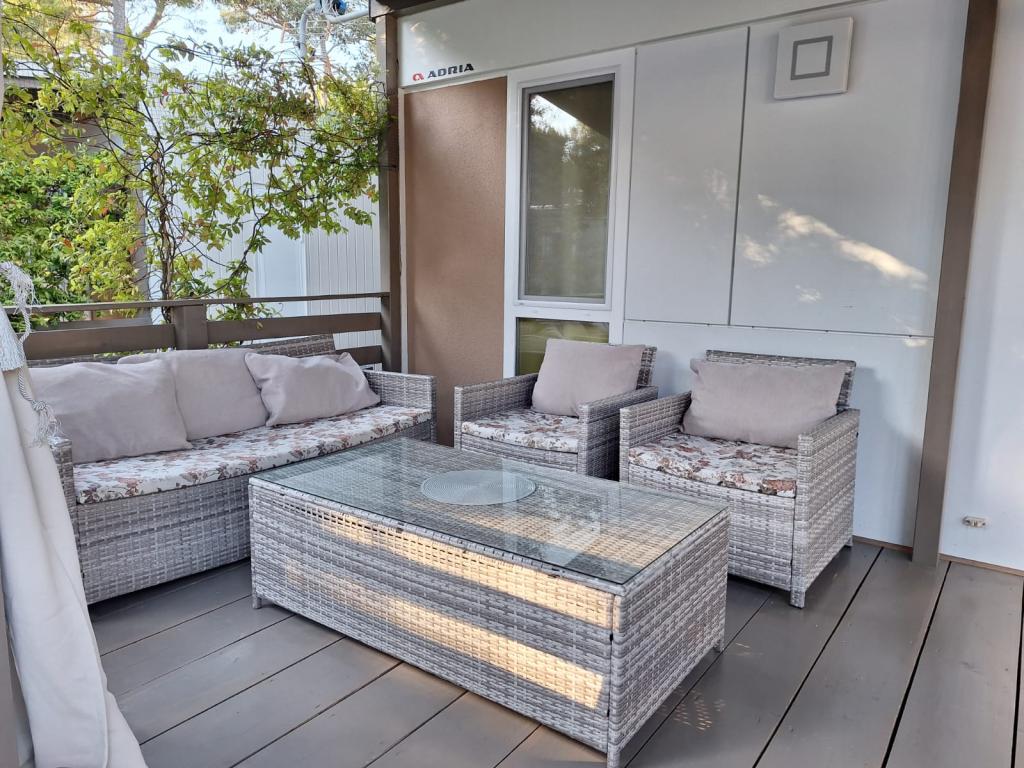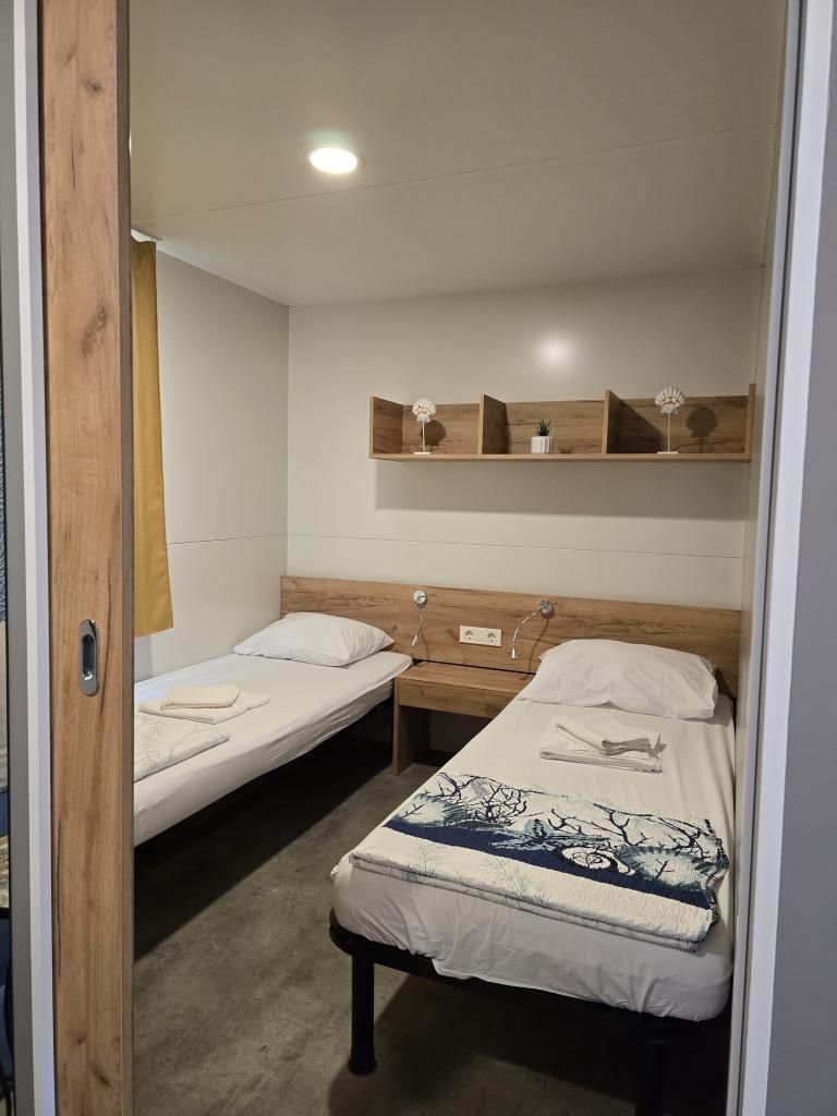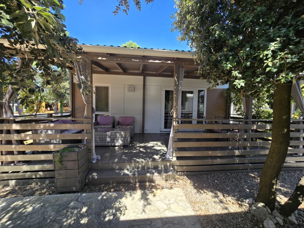 Voll ausgestattetes Mobilheim mit einer Fläche von 30 m2 mit großer Terrasse und einem Parkplatz. Liegt in einem ruhigeren Teil des Campingplatzes Soline, nicht zu weit vom Lärm der Restaurants, Cafés und des Strandes entfernt, aber dennoch nah genug.