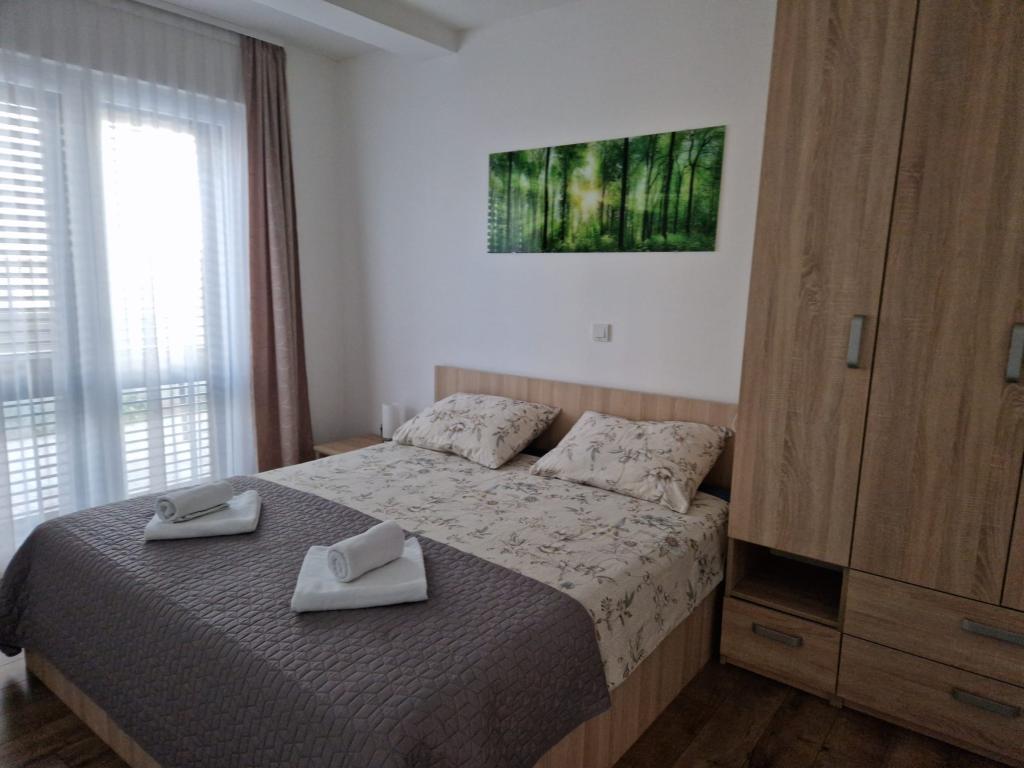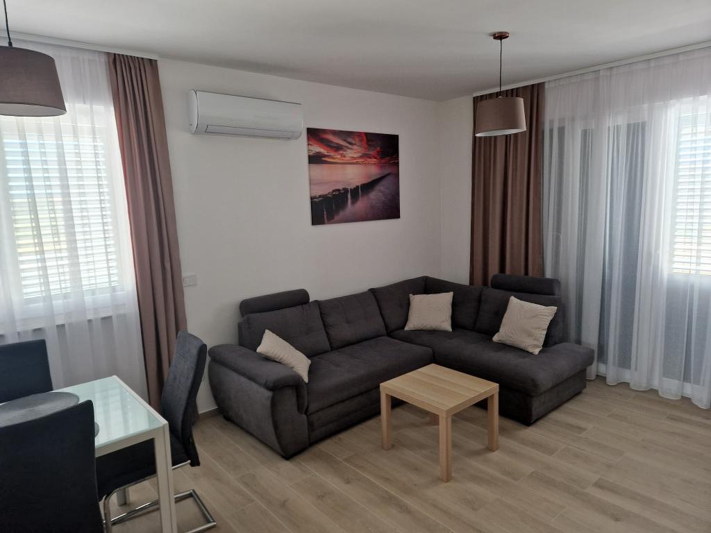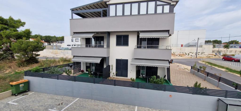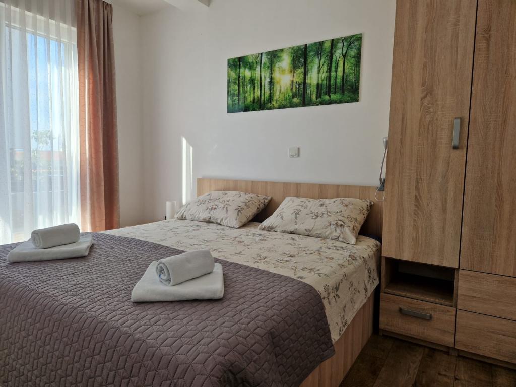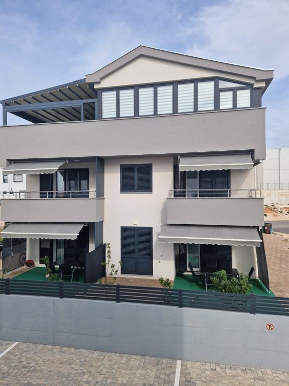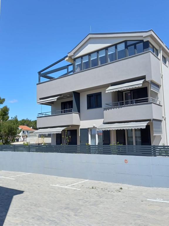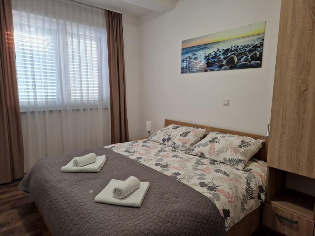Villa Toni ist ein neu erbautes Gebäude. Die Apartments sind sehr schön eingerichtet, modern und luftig. Jede Wohnung verfügt über eine voll ausgestattete Küche. In jedem Wohnzimmer gibt es ein Schlafsofa. Die Zimmer sind mit großen Doppelbetten und hochwertigen und bequemen Matratzen ausgestattet. Alle Wohnungen sind klimatisiert und verfügen über Waschmaschinen. Auf den Terrassen und Balkonen gibt es Markisen (vorne und seitlich). Die Villa liegt in einem ruhigen Teil der Stadt. Ein Parkplatz ist im Hof vorhanden. In der Nähe gibt es mehrere Supermärkte, Strände, Restaurants und Cafés. Zum Zentrum sind es 10 Gehminuten, zum Strand 5 Minuten.