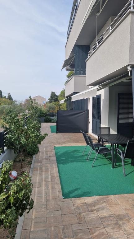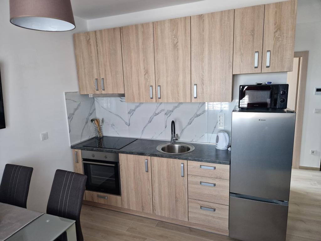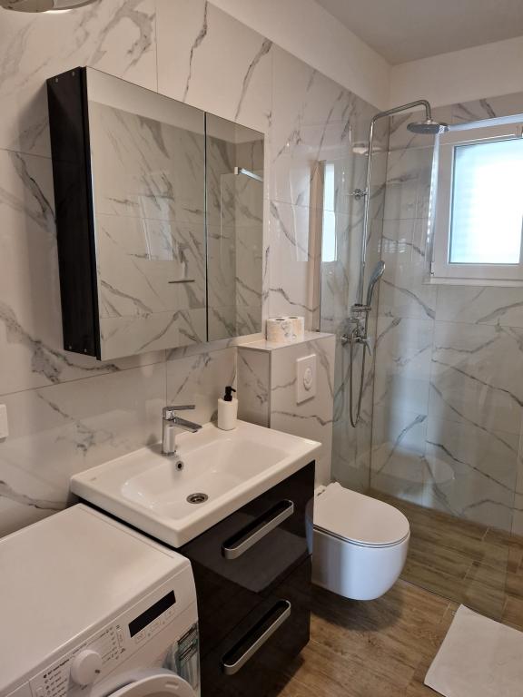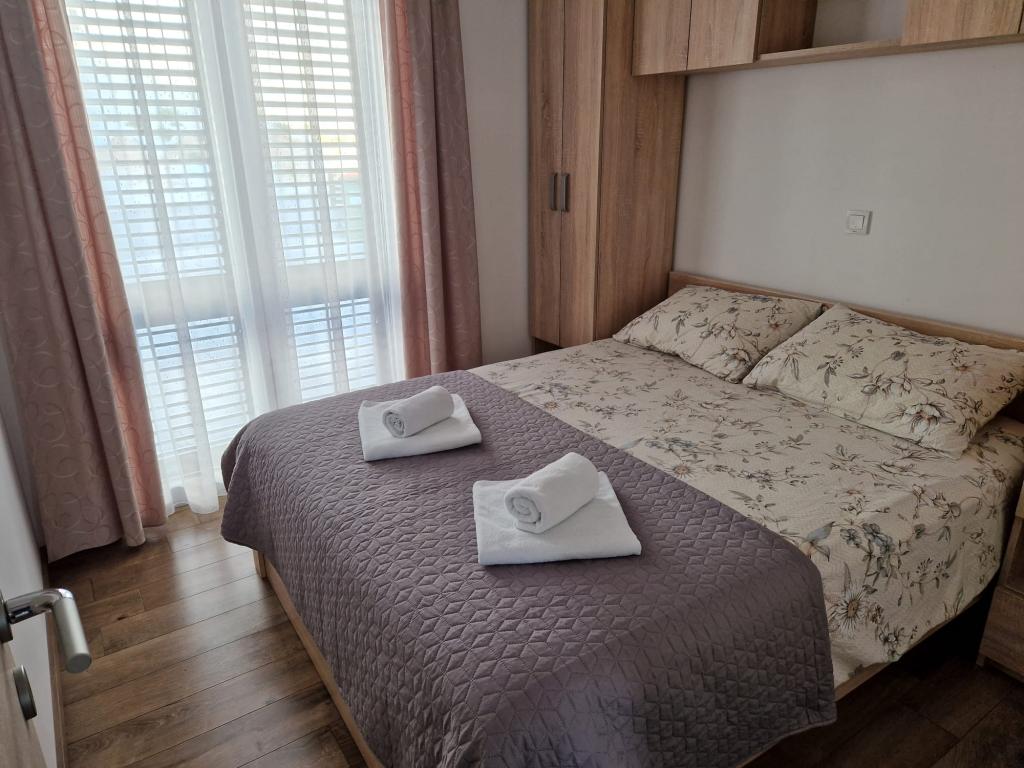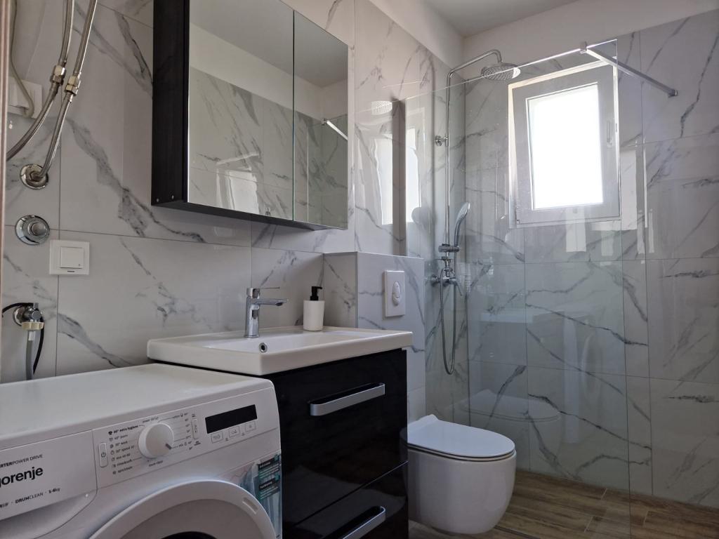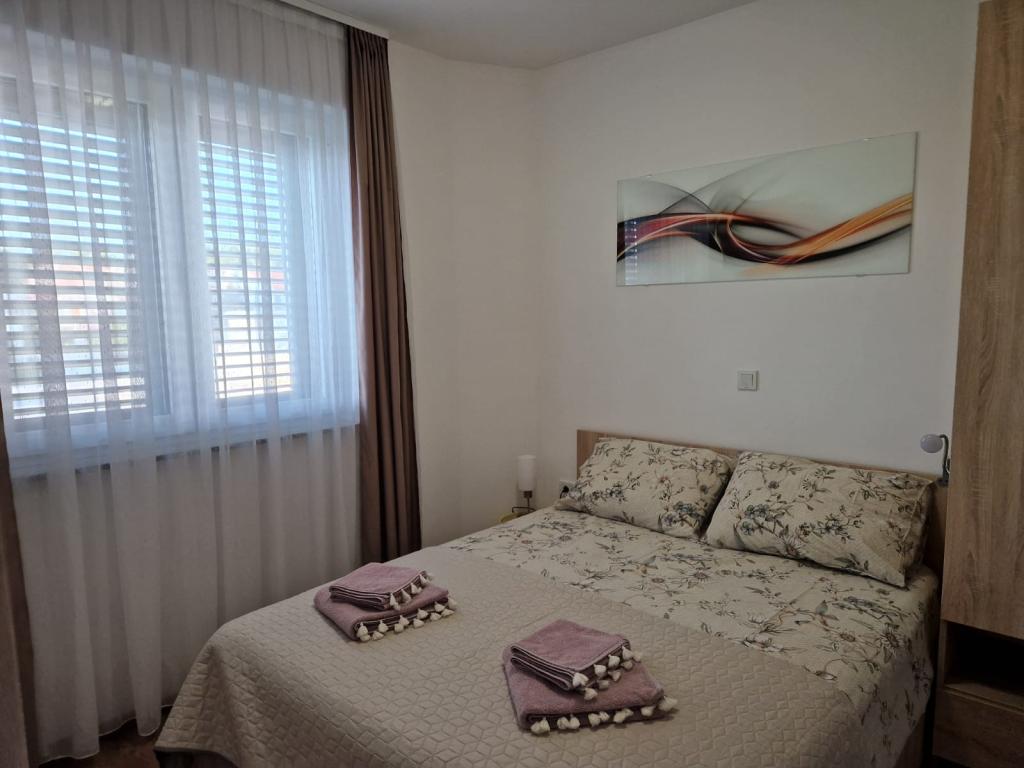 Villa Toni ist ein neu erbautes Gebäude. Die Apartments sind sehr schön eingerichtet, modern und luftig. Jede Wohnung verfügt über eine voll ausgestattete Küche. In jedem Wohnzimmer gibt es ein Schlafsofa. Die Zimmer sind mit großen Doppelbetten und hochwertigen und bequemen Matratzen ausgestattet. Alle Wohnungen sind klimatisiert und verfügen über Waschmaschinen. Auf den Terrassen und Balkonen gibt es Markisen (vorne und seitlich). Die Villa liegt in einem ruhigen Teil der Stadt. Ein Parkplatz ist im Hof vorhanden. In der Nähe gibt es mehrere Supermärkte, Strände, Restaurants und Cafés. Zum Zentrum sind es 10 Gehminuten, zum Strand 5 Minuten.