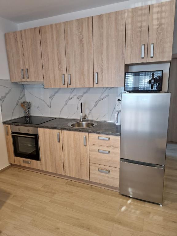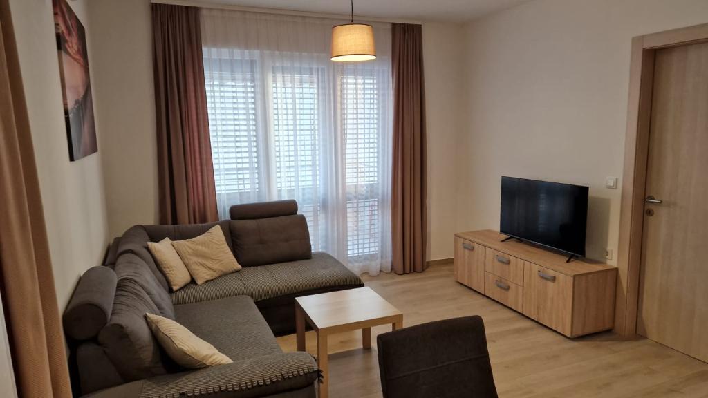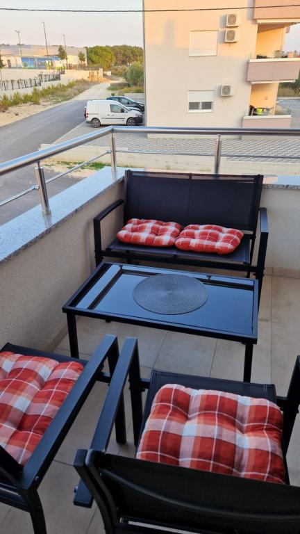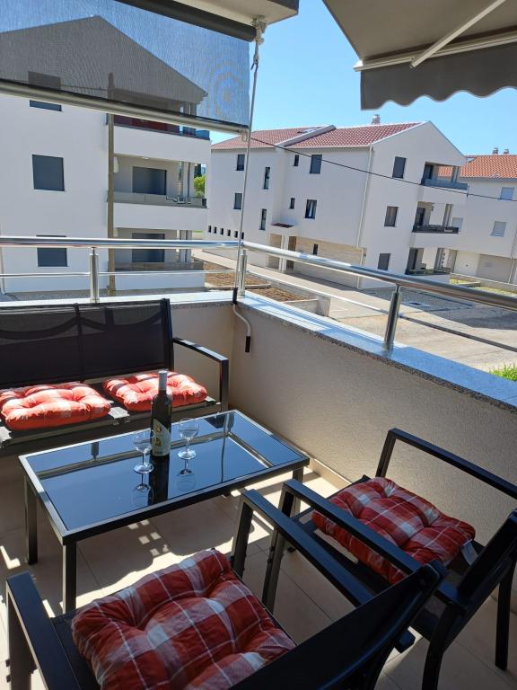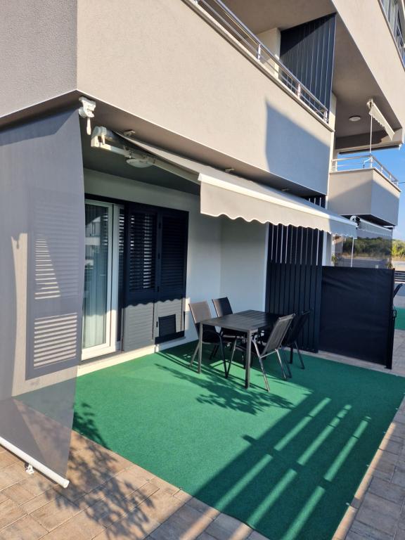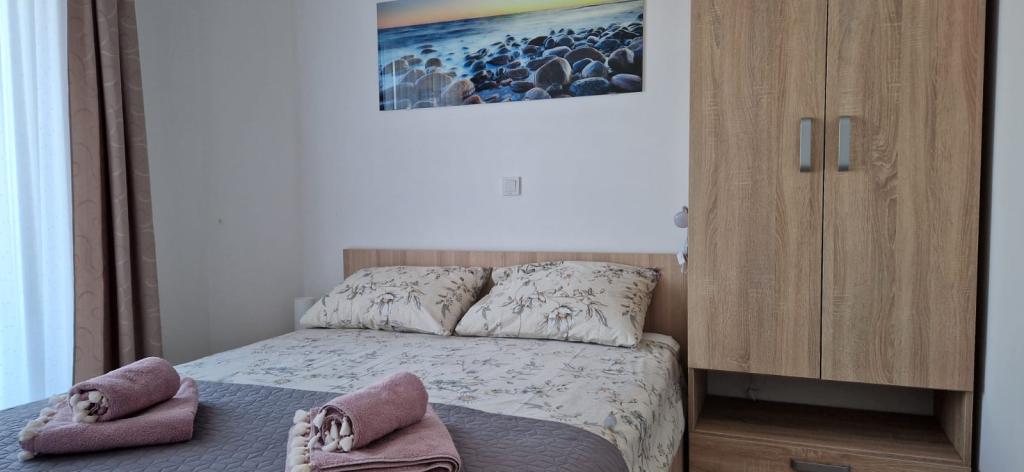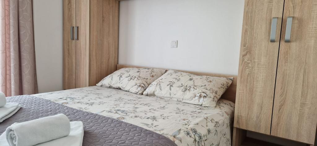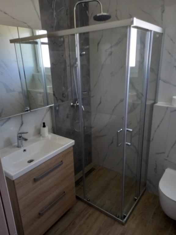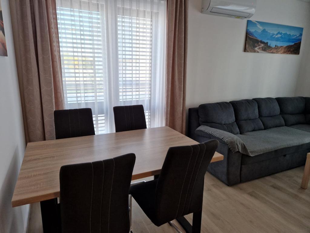 Villa Toni ist ein neu erbautes Gebäude. Die Apartments sind sehr schön eingerichtet, modern und luftig. Jede Wohnung verfügt über eine voll ausgestattete Küche. In jedem Wohnzimmer gibt es ein Schlafsofa. Die Zimmer sind mit großen Doppelbetten und hochwertigen und bequemen Matratzen ausgestattet. Alle Wohnungen sind klimatisiert und verfügen über Waschmaschinen. Auf den Terrassen und Balkonen gibt es Markisen (vorne und seitlich). Die Villa liegt in einem ruhigen Teil der Stadt. Ein Parkplatz ist im Hof vorhanden. In der Nähe gibt es mehrere Supermärkte, Strände, Restaurants und Cafés. Zum Zentrum sind es 10 Gehminuten, zum Strand 5 Minuten.