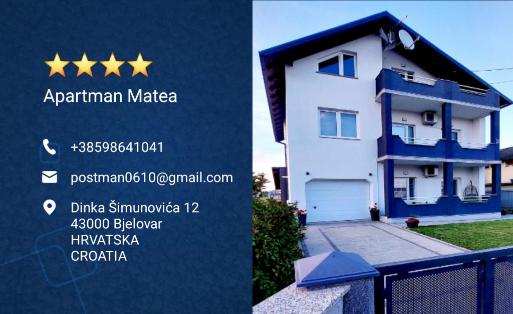 Sie können Ihren Aufenthalt im Apartment Matea per Mobiltelefon (SMS, WhatsApp, Viber) oder E-Mail buchen. Die Bezahlung erfolgt per Banküberweisung oder, nach Vereinbarung, bar bei Ankunft. Abreise ist bis 12:00 Uhr oder nach Vereinbarung möglich, Anreise ab 14:00 Uhr oder nach Vereinbarung. Die An- und Abreisezeiten sind flexibel. Wenn Sie mit öffentlichen Verkehrsmitteln (Bus oder Bahn) nach Bjelovar anreisen, holen wir Sie gerne kostenlos ab und bringen Sie am Abreisetag wieder zurück.