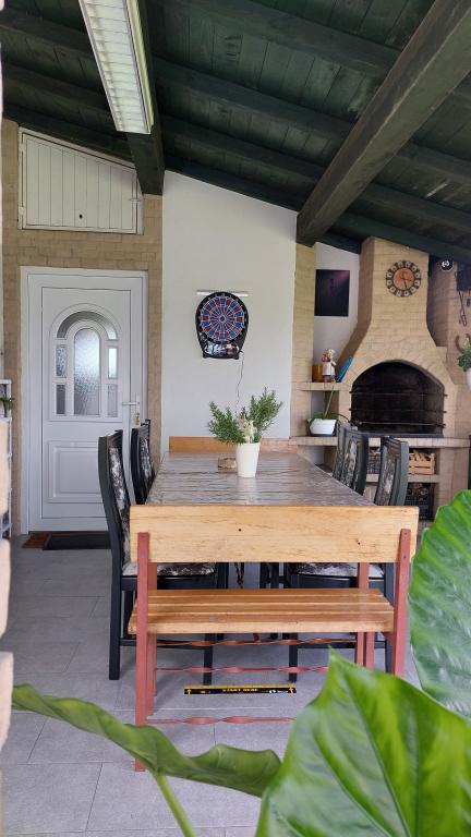 Das Apartment Matea bietet zahlreiche Annehmlichkeiten für einen unvergesslichen Aufenthalt. Entspannen Sie sich auf dem Balkon mit Blick auf die Umgebung oder genießen Sie gesellige Stunden im Garten beim Grillen. Für Ihre Autos stehen 3-4 Parkplätze zur Verfügung, und Sie können die Garage nutzen. Die geräumige Terrasse lädt zum Verweilen ein, und der Kamin sorgt für behagliche Wärme im Inneren des Apartments. WLAN, Smart-TV, IPTV-Netflix, Klimaanlage, Zentralheizung, Waschmaschine, Bügeleisen, Föhn, Geschirr, Babybett und die Möglichkeit zur Langzeitmiete garantieren höchsten Komfort. Das Apartment ist allergikerfreundlich. Fahrräder stehen Ihnen ebenfalls zur Verfügung, um die schöne Umgebung zu erkunden. Ein Waschraum mit Waschmaschine sorgt für zusätzlichen Komfort während Ihres Aufenthalts. Das Schlafzimmer mit einem komfortablen Bett, Smart-TV und eleganten Möbeln bietet den perfekten Rückzugsort nach einem ereignisreichen Tag. Verpassen Sie nicht die Gelegenheit für einen unvergesslichen Urlaub im Apartment Matea. Buchen Sie jetzt und genießen Sie diesen wunderschönen Ort! Herzlich willkommen!