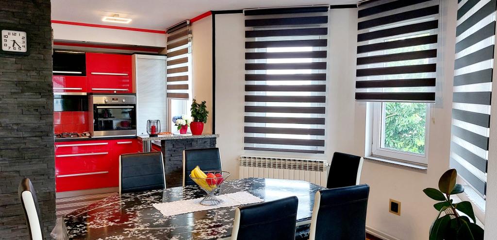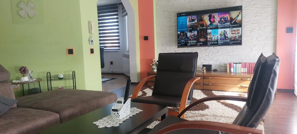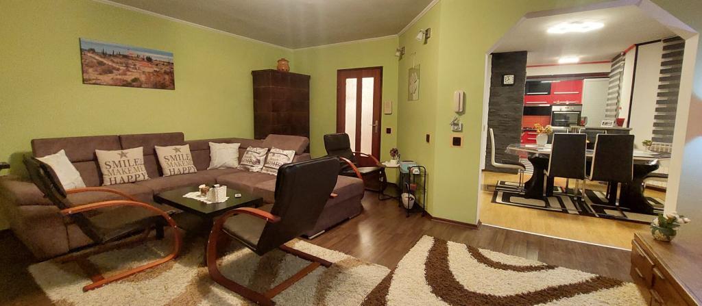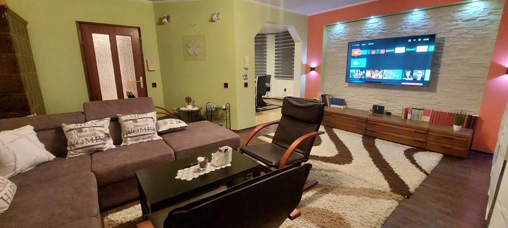 Verbringen Sie einen unvergesslichen Urlaub in unserem modern eingerichteten Apartment Matea im ruhigen und charmanten Bjelovar! Das geräumige 70 m² große Apartment bietet Platz für bis zu 4 Gäste und liegt in einer ruhigen Straße, nur 2 km vom Stadtzentrum entfernt, fernab von Verkehrslärm. Es verfügt über ein Schlafzimmer, ein Badezimmer, eine Küche, ein Wohnzimmer, ein Esszimmer, einen Balkon und eine überdachte Terrasse. Zur Unterkunft gehören Parkplätze für 3-4 Autos sowie die Möglichkeit zur Nutzung einer Garage, eine überdachte Terrasse mit Grill für 10 Personen, ein Kinderspielplatz und ein 700 m² großer, umzäunter Garten voller Grün.