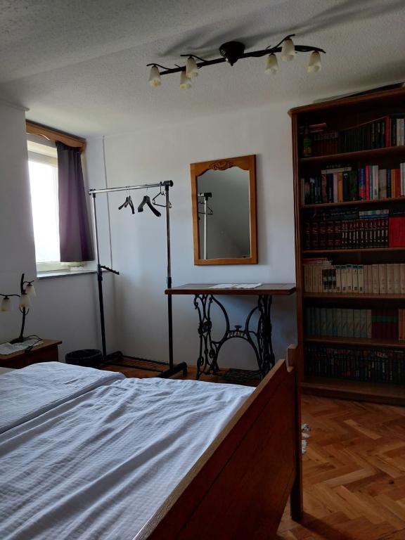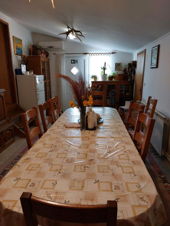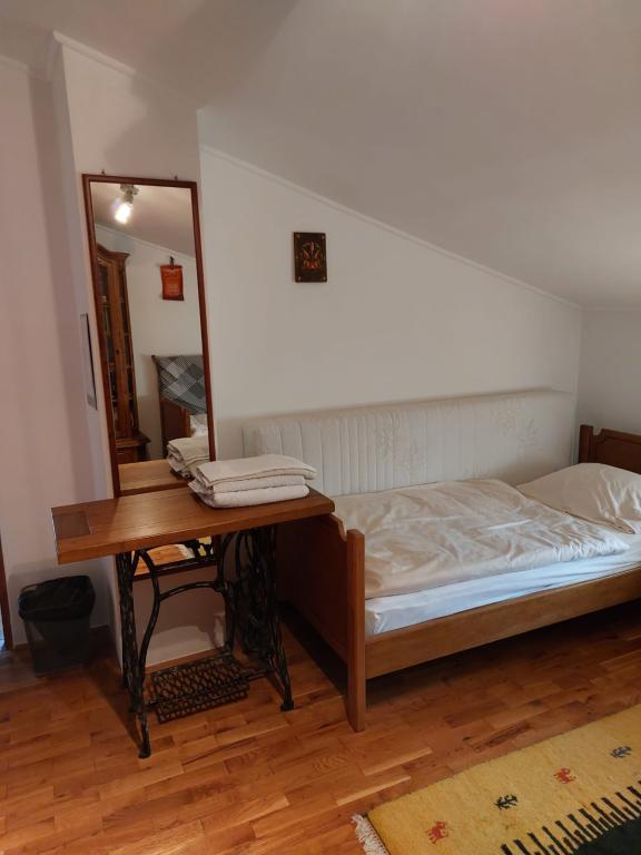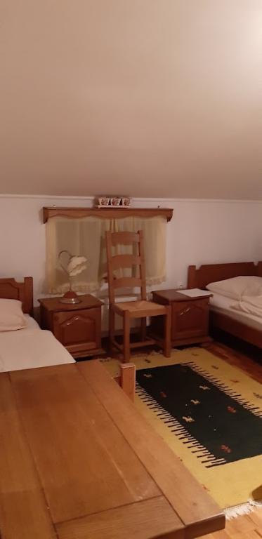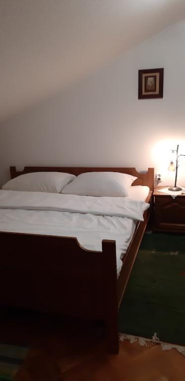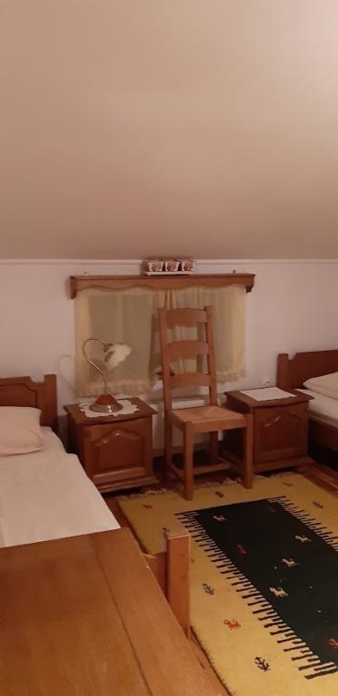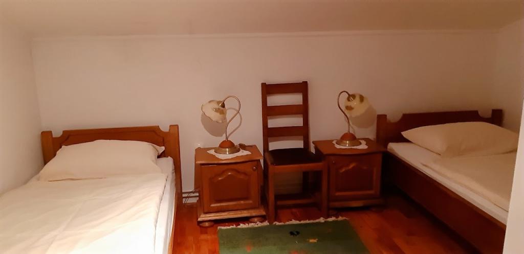 Familienhaus mit Zimmervermietung an den Hängen von Bilogora. Im Dachgeschoss befinden sich drei Zimmer mit Bädern, ein großes gemeinsames Wohnzimmer und eine Außenterrasse. Um das Haus herum gibt es einen großen Hof mit einer überdachten Terrasse, neben der sich ein Grill befindet, der benutzt werden kann. Im Obstgarten haben wir auch einen Pavillon, von dem aus Sie Damwild beobachten können.
