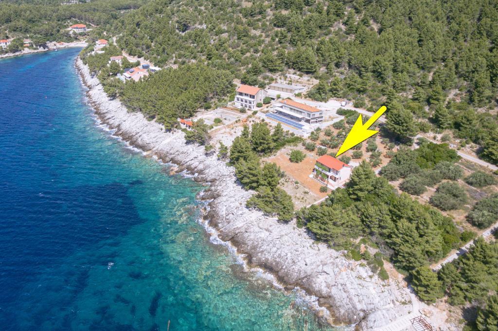 Apartment Maja Karbuni Apartments Korcula Haus am Meer mit 1 Apartment. In der Nähe des Strandes Typ Žal. Malerische Landschaft, schöne Aussicht, Privatsphäre – keine Nachbarn. Grill, Parkplatz. Schöne und ruhige Lage. Haus in einer abgeschiedenen Gegend, mit schöner Aussicht auf das offene Meer und die kleinen Inseln.