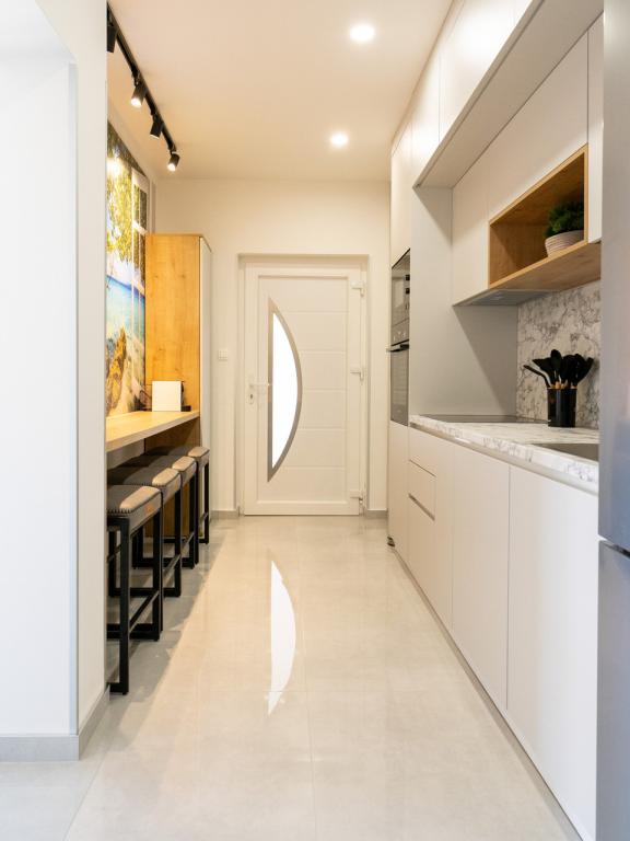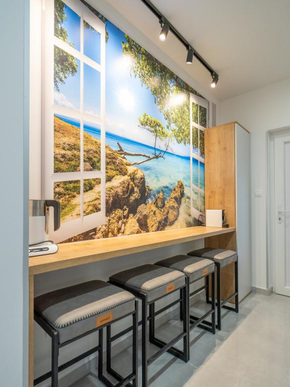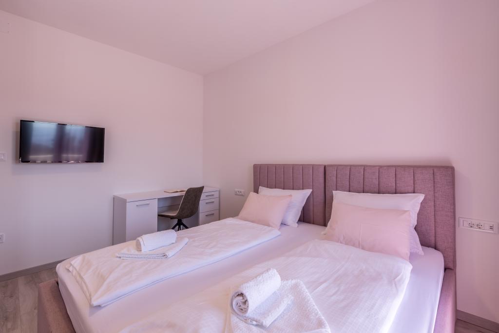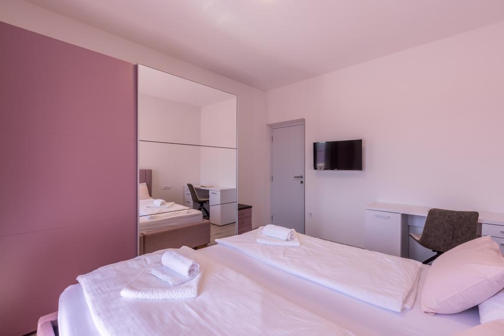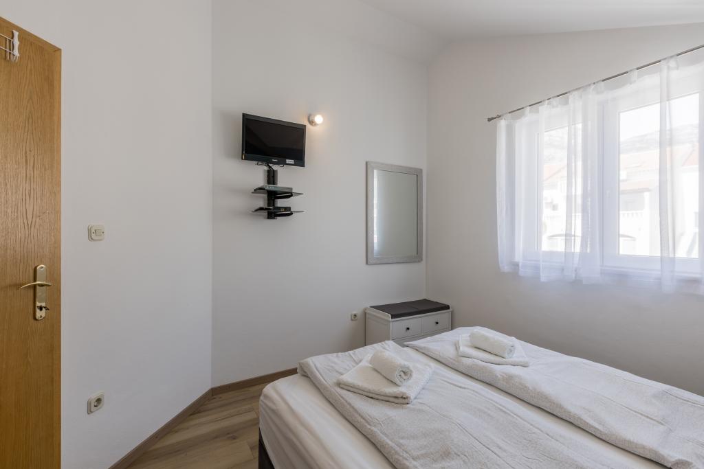 Die Apartments Jelavic befinden sich im westlichen Teil von Bol, direkt über der Promenade zum Strand "Zlatni rat" (Promenade). Das Haus ist ca. 150m vom Meer und den ersten Stränden entfernt. Es ist nur wenige Gehminuten vom Zentrum von Bol entfernt, sodass unsere Gäste einfach und schnell Lebensmittel und Dienstleistungen von Post, Bank, Reisebüros, Polizei, Krankenwagen usw. erhalten können. Nicht weit vom Haus entfernt befinden sich die meisten Bol-Restaurants und Cafés und Nachtclubs. Obwohl von unserem Haus zum Strand "Zlatni rat" (ca. 2000 m) eine schöne Promenade am Meer führt, gibt es vom Zentrum aus für diesen einzigartig schönen und weltberühmten Strand eine regelmäßige Bootslinie. Unser Haus ist im klassischen dalmatinischen Stil gebaut, mit Fassaden aus weißem Brac-Stein, gepflasterten Terrassen für das Leben außerhalb der Wohnung mit Metallzäunen und Steinsäulen. Mit 20 Jahren Erfahrung im Tourismus und ständiger Verbesserung des Service stehen unsere Apartments ganz oben auf dem Angebot privater Unterkünfte in Bol auf der Insel Brac.