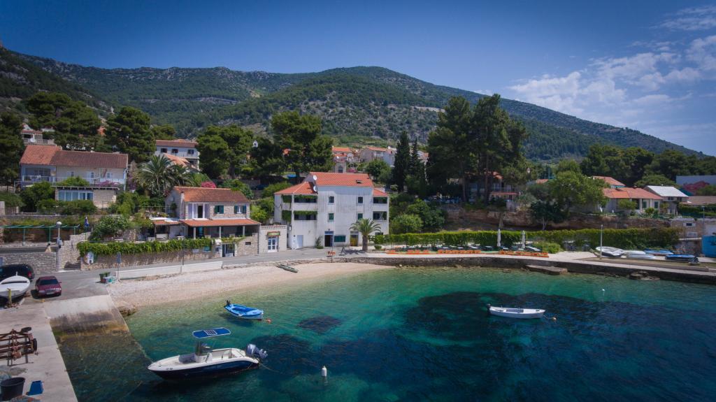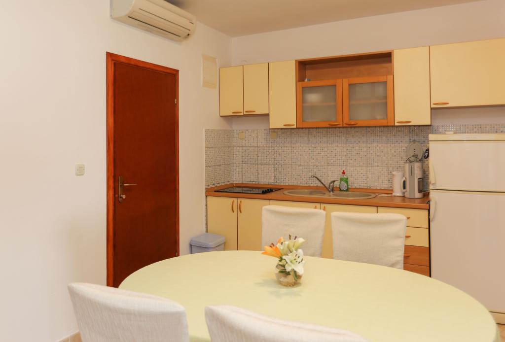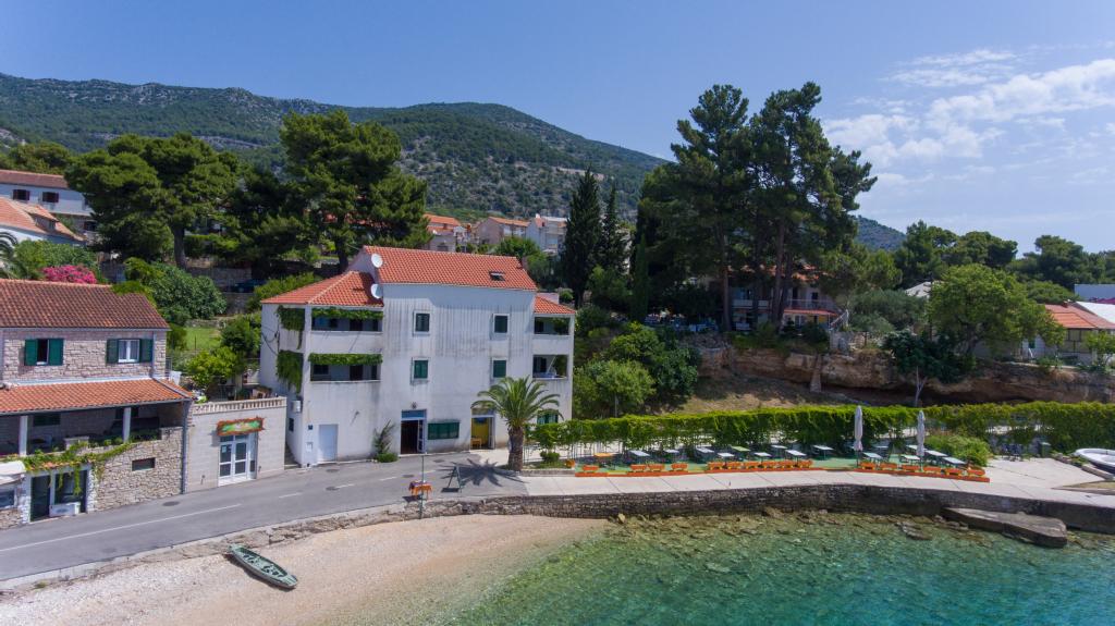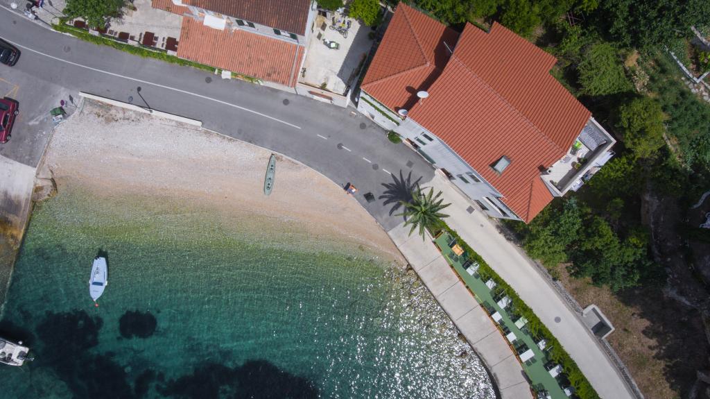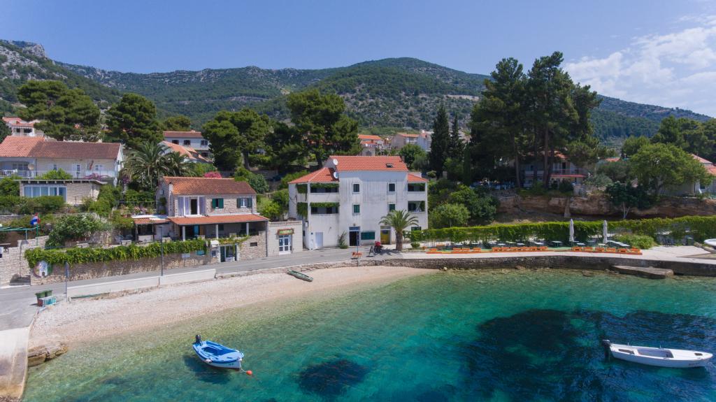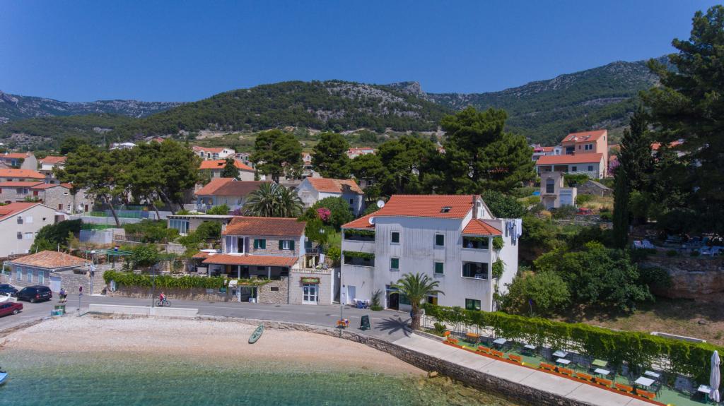 Die Apartments Laguna liegen auf halbem Weg zwischen dem Stadtzentrum und dem Dominikanerkloster. Jedes Apartment verfügt über ein Doppelzimmer, ein Zimmer mit zwei Einzelbetten, ein Badezimmer, eine Küche und eine große Terrasse mit Meerblick. Das Stadtzentrum ist 150 Meter entfernt. Im Umkreis von 100 Metern befinden sich drei À-la-carte-Restaurants mit dalmatinischer Küche und zwei Pizzerien. Das Restaurant im Erdgeschoss ist aufgrund von Lärmbelästigung geschlossen; das nächste À-la-carte-Restaurant ist 50 Meter entfernt.