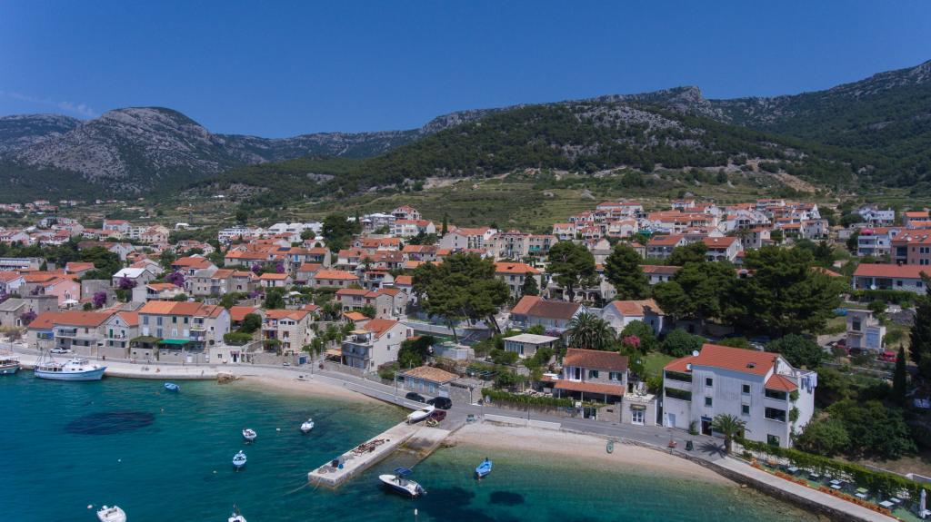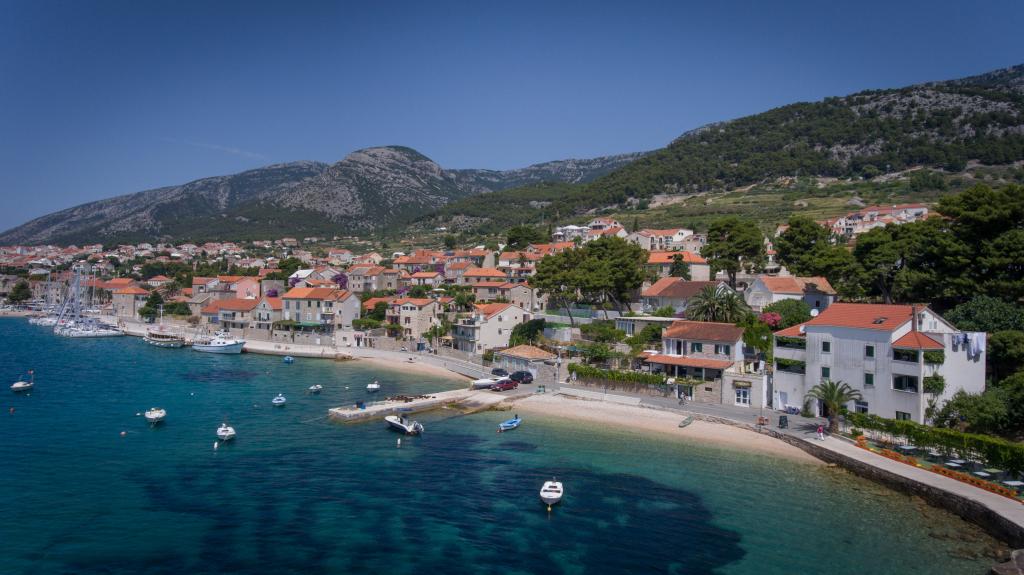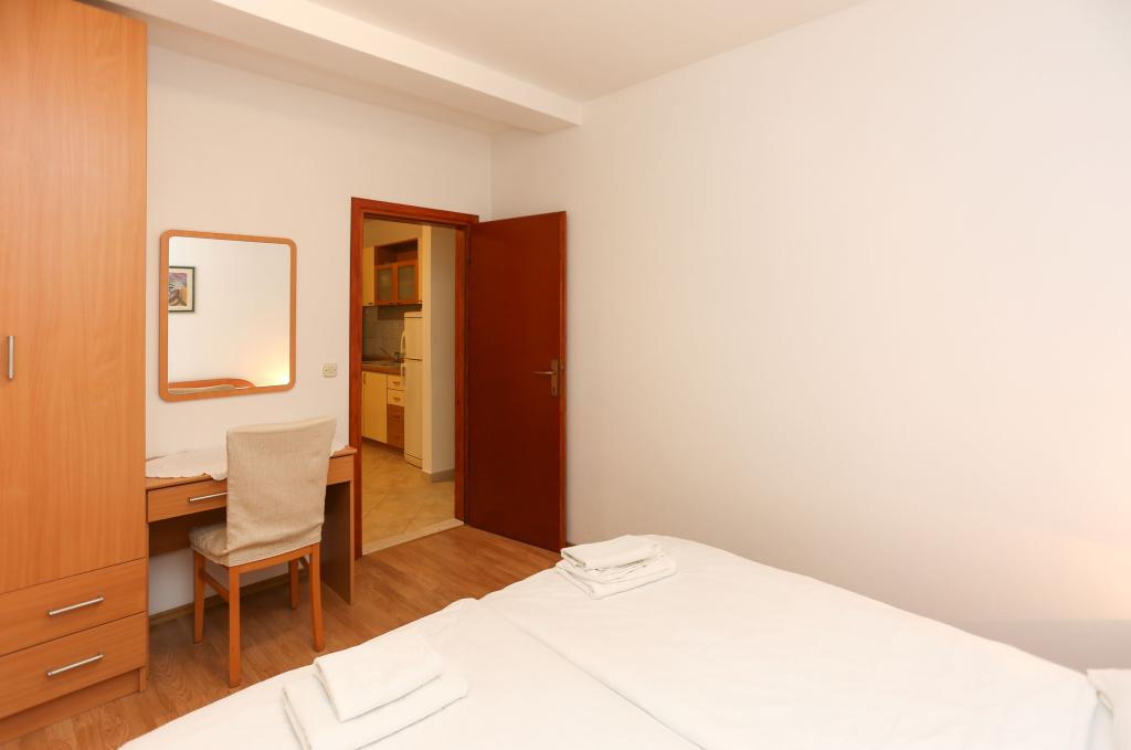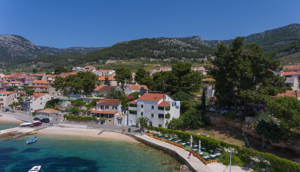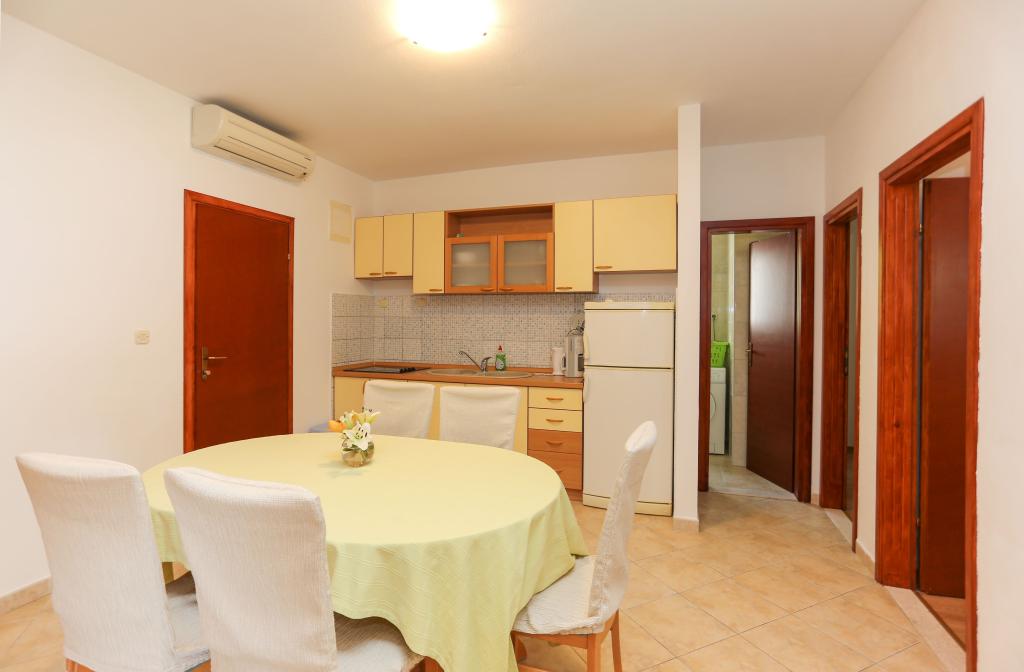 Die Apartments Laguna liegen auf halbem Weg zwischen dem Stadtzentrum und dem Dominikanerkloster. Jedes Apartment verfügt über ein Doppelzimmer, ein Zimmer mit zwei Einzelbetten, ein Badezimmer, eine Küche und eine große Terrasse mit Meerblick. Das Stadtzentrum ist 150 Meter entfernt. Im Umkreis von 100 Metern befinden sich drei À-la-carte-Restaurants mit dalmatinischer Küche und zwei Pizzerien. Das Restaurant im Erdgeschoss ist aufgrund von Lärmbelästigung geschlossen; das nächste À-la-carte-Restaurant ist 50 Meter entfernt.