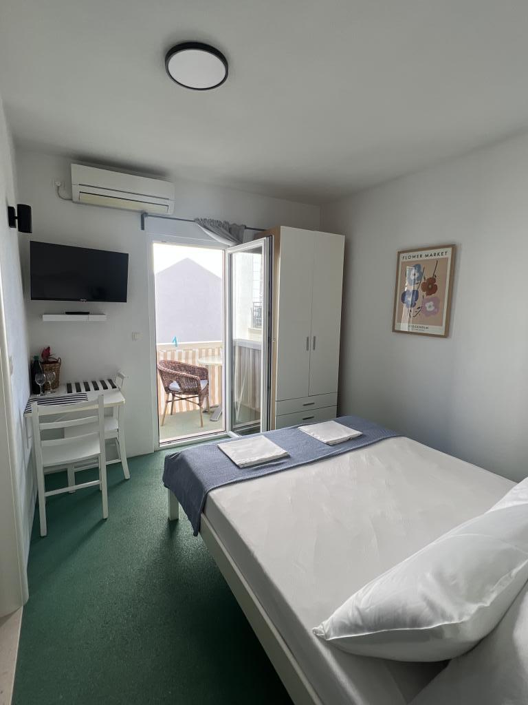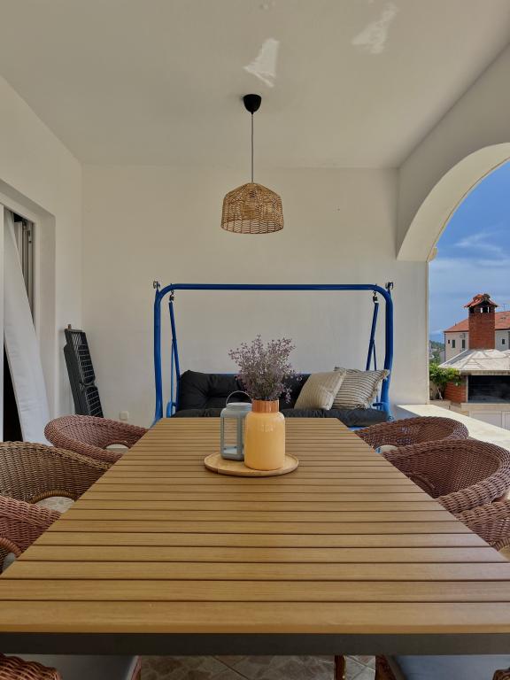Das Haus liegt mitten in Bol, aber an einer leicht erhöhten Lage, so dass es abseits des städtischen Trubels und des unvermeidlichen Parkplatzchaos liegt, aber dennoch nur 6 Minuten zu Fuß von der Altstadt von Bol entfernt, 15 Minuten Spaziergang zum wunderbaren „Goldenen Krieg“. Das Haus verfügt über einen großen Garten mit Blick auf das Meer. Im Hof gibt es eine Feuerstelle zum Grillen, die allen Gästen des Hauses zur Verfügung steht.
