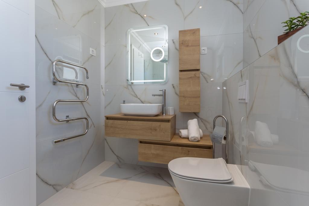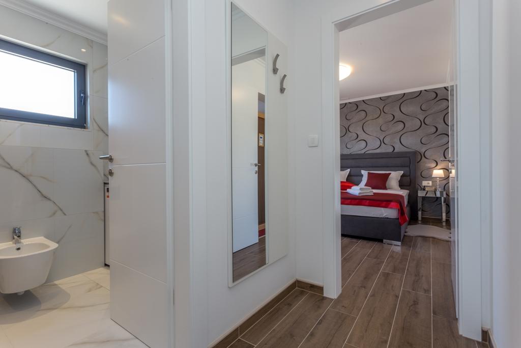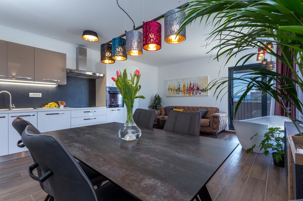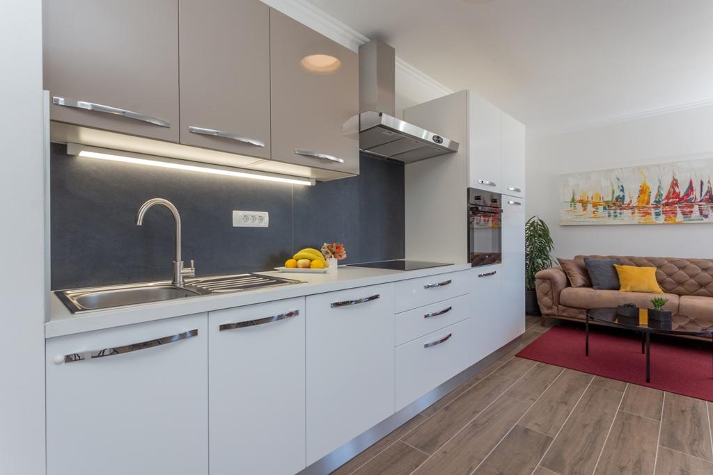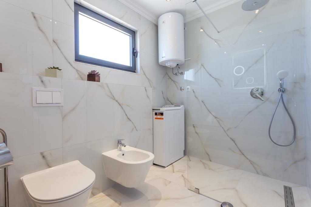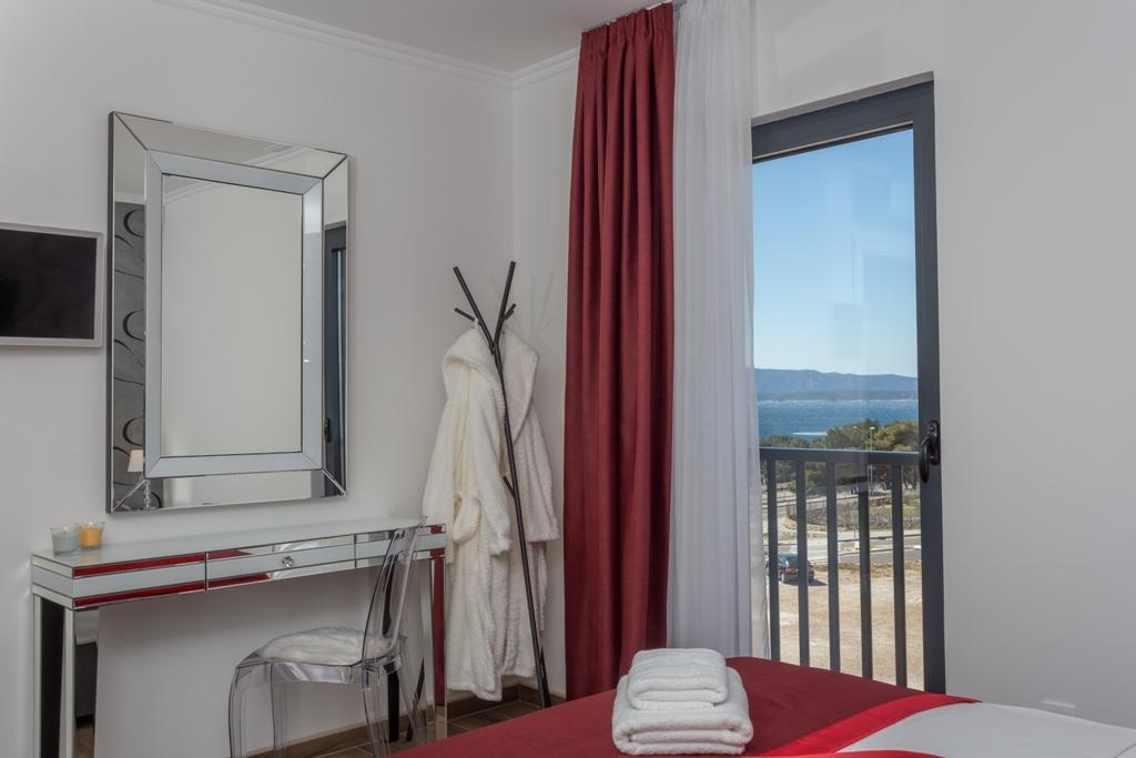 Das Apartment Pleasure Bol ist eine hervorragende Kombination aus Lage, Komfort und Konnektivität. Sie haben das Beste gewählt, denn beim Betreten der Stadt Bol gelangen Sie in Ihren Garagenplatz im Erdgeschoss der Wohnung und damit enden alle Sorgen um die Sicherheit Ihres Autos, das Sie für Ihren Aufenthalt in Bol nicht mehr benötigen. Das Betreten der Wohnung wird Ihnen ein breites Lächeln ins Gesicht zaubern, denn neben den Designerdetails wird der Blick auf die großen Glaswände gelenkt, die den Blick auf den Strand Zlatni Rat, das offene Meer und einen wunderschönen Sonnenuntergang direkt vor Ihnen freigeben. Wenn Sie auf die Terrasse hinausgehen, wird all dies durch einen ungehinderten Blick auf den höchsten Gipfel der Insel Brač ergänzt – Vidova Gora (778 m).
