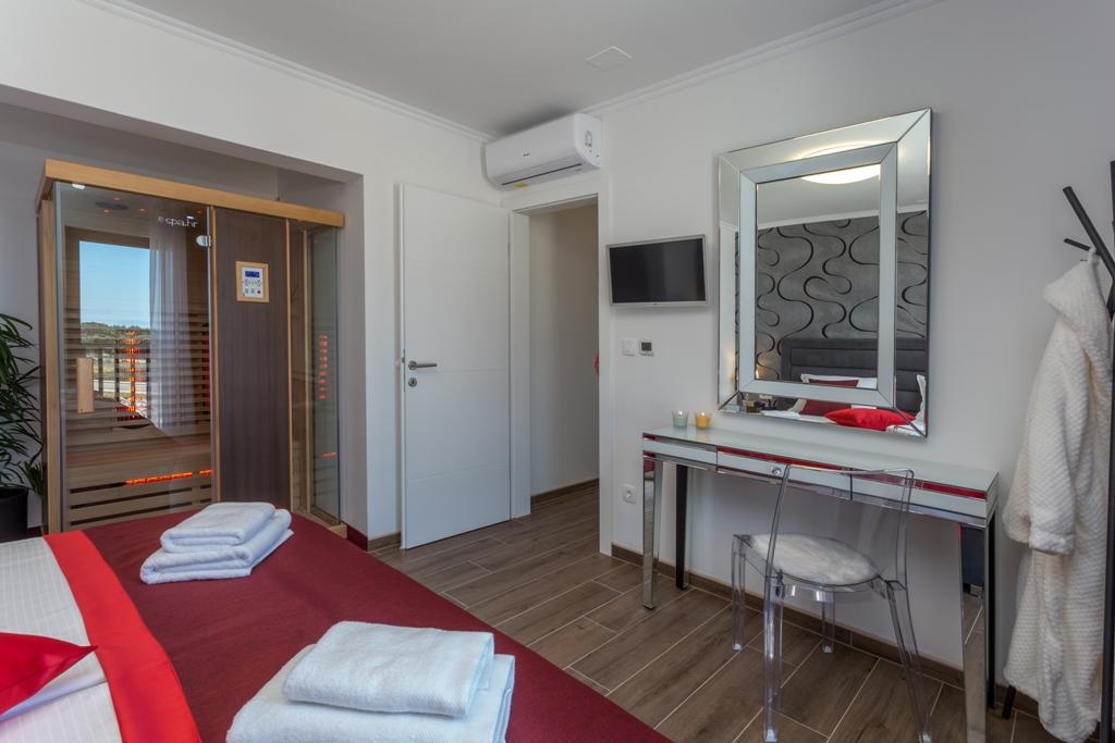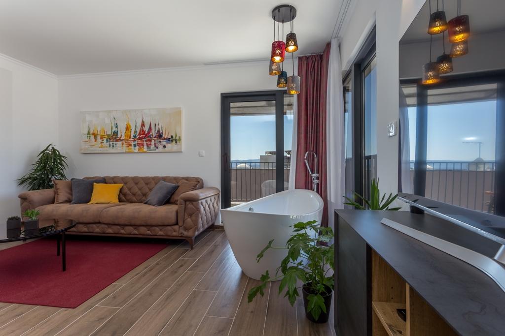 Kurtaxe ist im Preis inbegriffen. Buchungsbestätigungsdokument bei ReservierungDas Pleasure Apartment ist für den Genuss zu zweit konzipiert, nicht nur im Sommer, sondern das ganze Jahr über, denn wir haben Sie in einem Whirlpool mitten im Wohnzimmer vorgestellt, der eine schöne und beruhigende Aussicht bietet. Und Fußbodenheizung, Sauna, hochwertiges Kingsize-Bett 200x200cm, begehbare Dusche mit Bademänteln, zwei Smart-TVs, Netflix, Safe, Strandtücher, voll ausgestattete Küche mit Dolce Gusto-Kaffeemaschine und die Möglichkeit, ein hochwertiges Frühstück auszuwählen.... Alles ist Ihnen untergeordnet und Sie können es GENIESSEN!